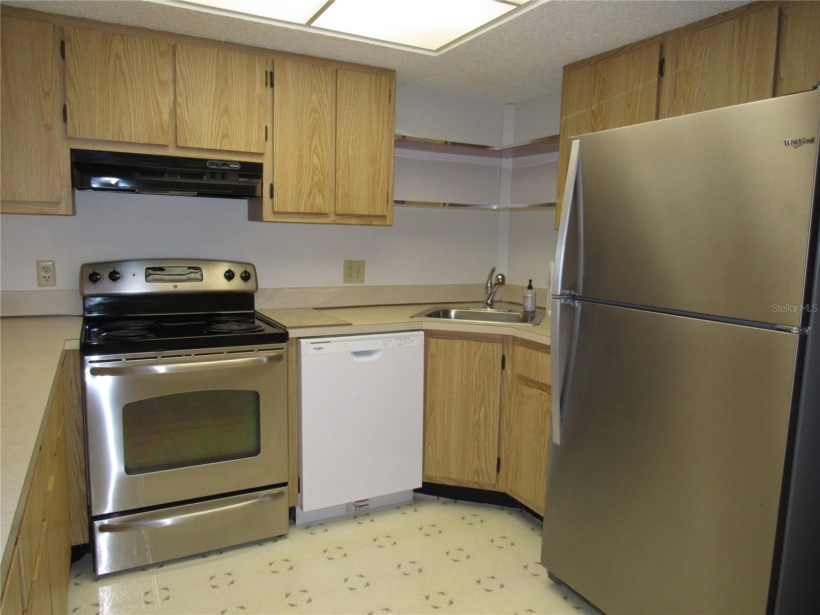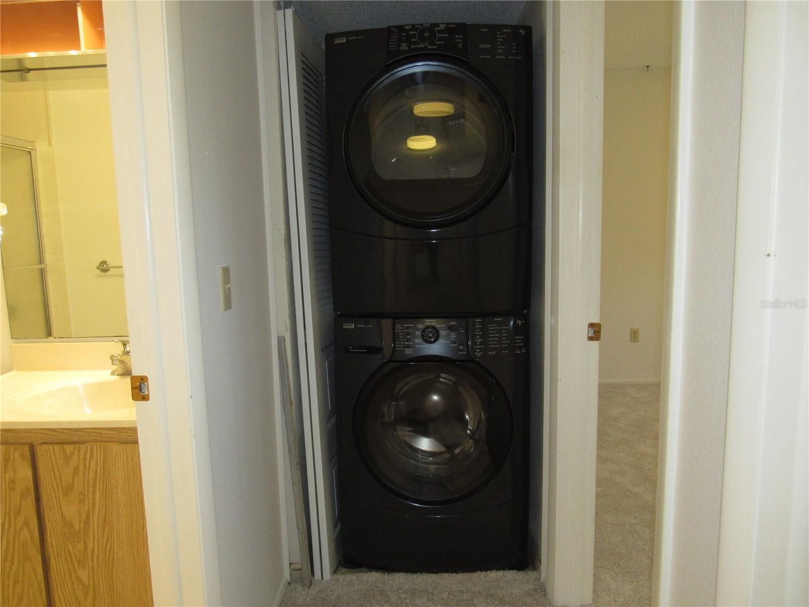 Immaculate, second floor 2 bedroom, 2 bath unit in the popular 55+ gated Oak Forrest community! This open floor plan, with brand new neutral carpet and freshly painted inside, is located very close to one of the 3 heated pools in the community. The combination living / dining room features a breakfast bar looking into the kitchen with newer stainless appliances, an abundance of cabinet and counter space. The ensuite primary bedroom features an updated bath and lots of closet space. Included are newer stacked washer and dryer. This community offers shuffleboard, bocce ball, outdoor grills, clubhouse and walking paths throughout the entire complex and the grounds are beautifully maintained. All this and centrally located close to shopping, entertainment, restaurants, fishing, golf and more.
