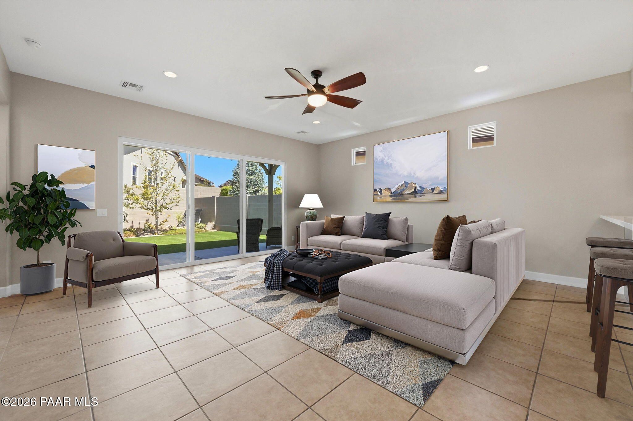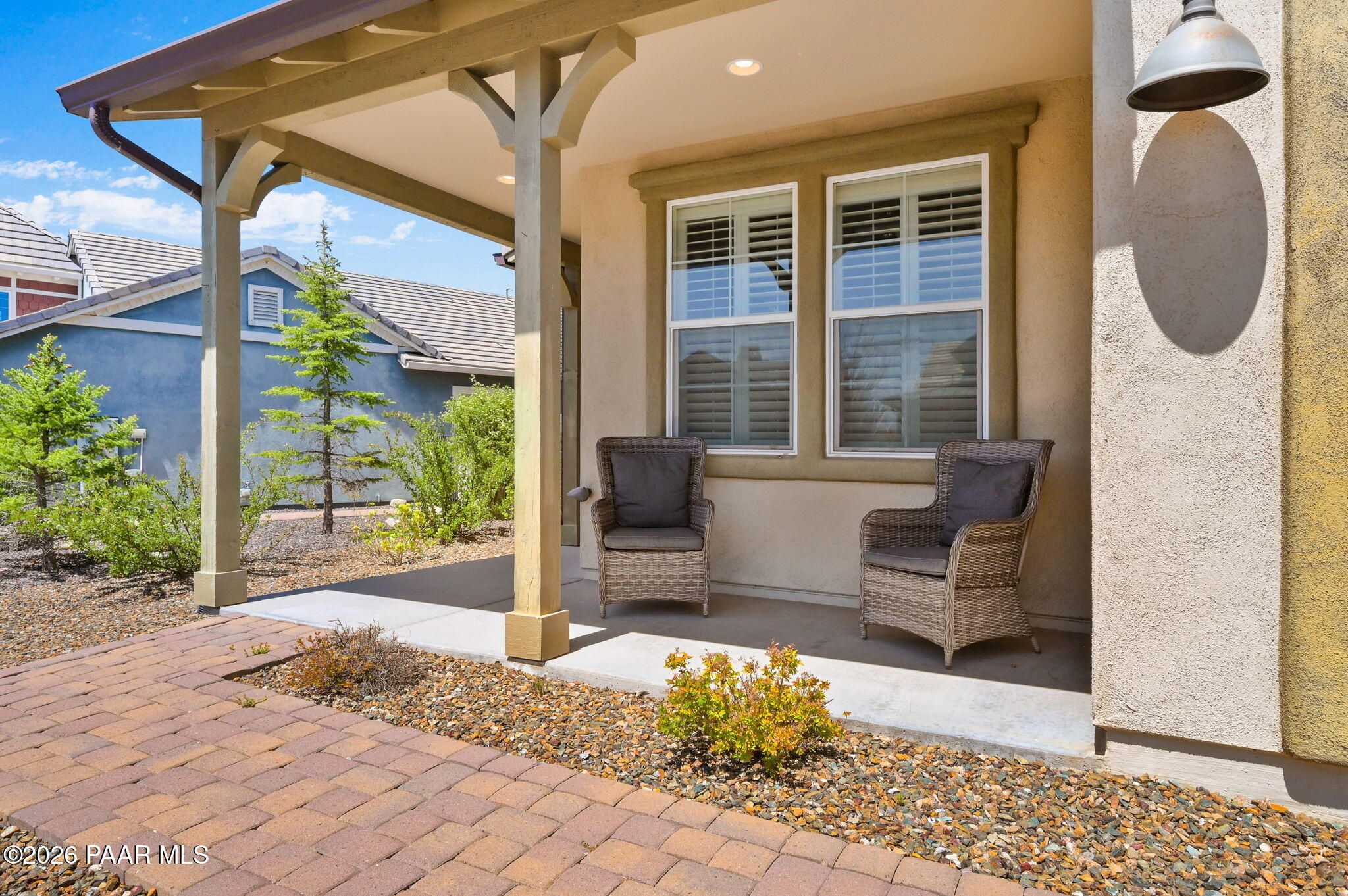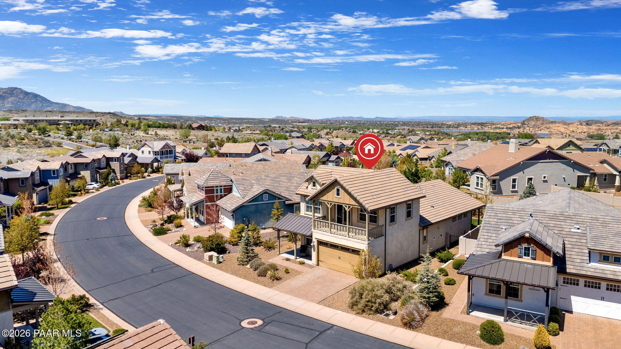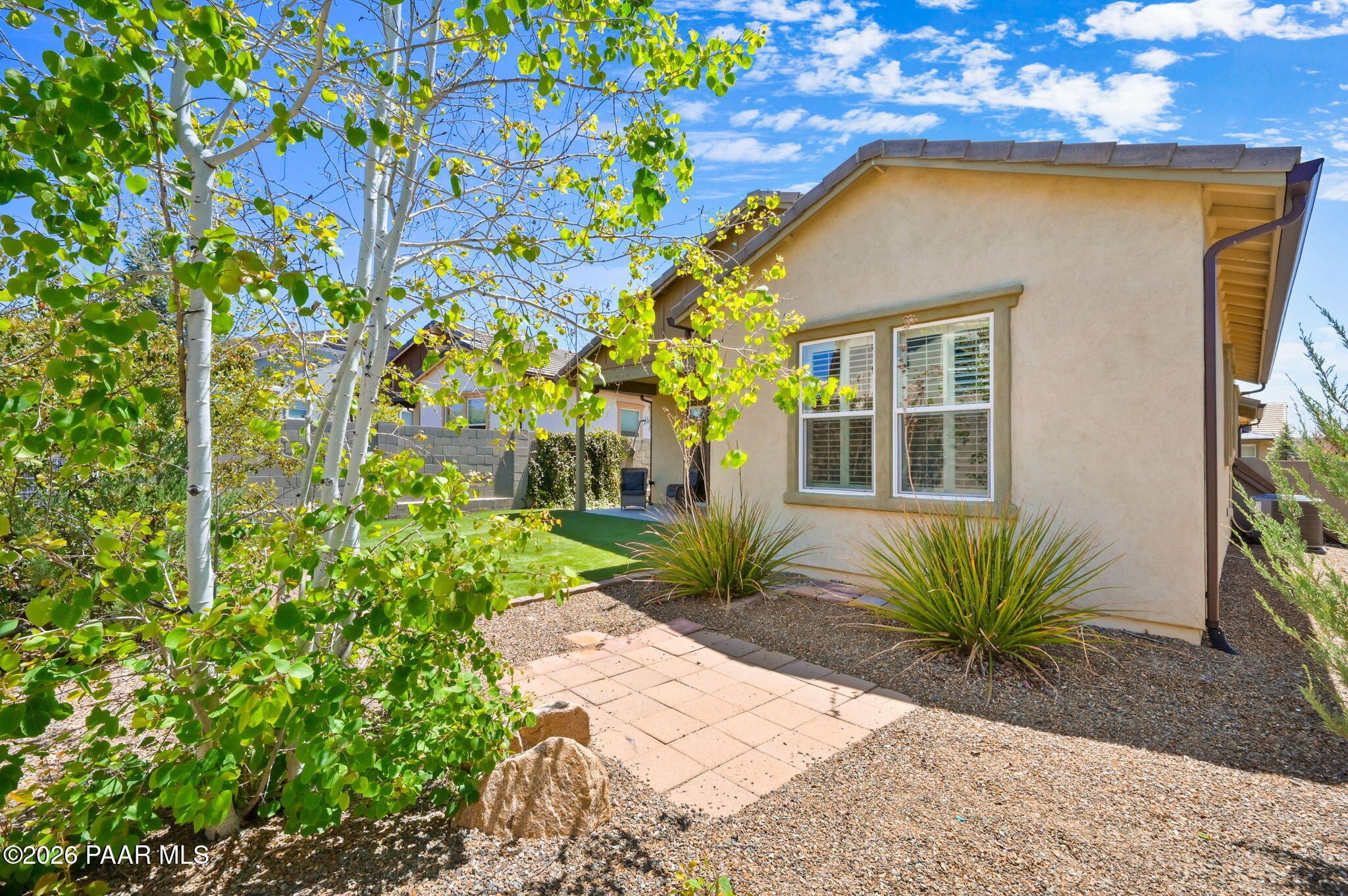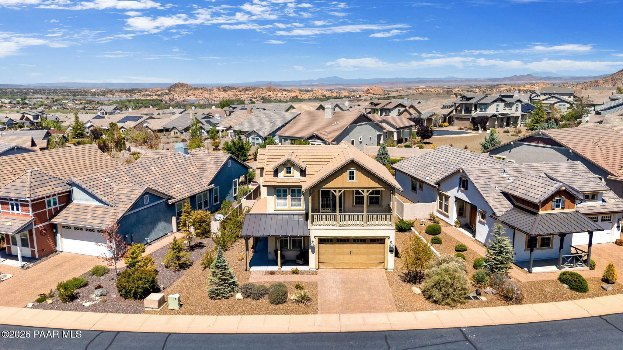 Discover this thoughtfully designed 2,465 sq. ft. residence situated on a premium lot in the desirable Astoria neighborhood. This home is a rare find, perfectly configured for multigenerational living with a layout that effortlessly adapts to your family's evolving needs.Enjoy the ease of single-level living on the main floor, which features a bright, open-concept living area, a dining nook, and a chef's kitchen equipped with quartz countertops, a gas range, and a convenient eat-at peninsula. The main level also hosts the spacious primary suite--complete with a garden soaking tub and walk-in shower--a second bedroom, and a versatile office/den perfect for work or hobbies. The upper level expands your options with a large bonus/media room and two additional guest bedrooms, providing a distinct zone for family or visitors.Outside, the covered patio and tidy, level backyard with artificial turf, and mature landscaping are ideal for entertaining. Residents enjoy access to premier Prescott Lakes amenities, including golf, fitness, and trails. Minutes from shopping, dining, and medical facilities with easy Highway 89 access. WELCOME HOME!