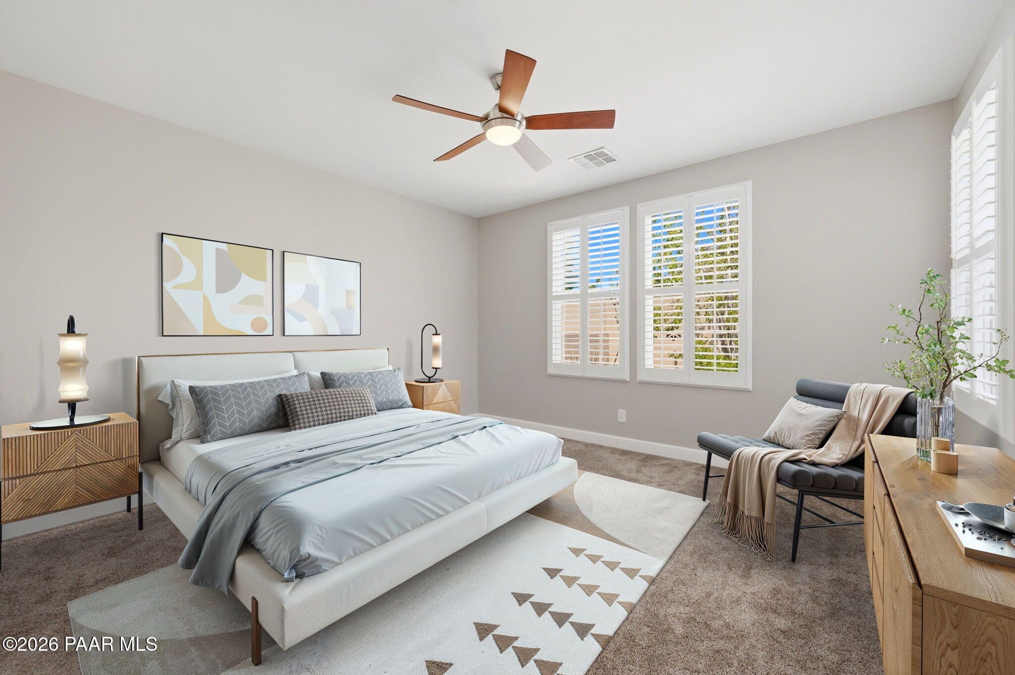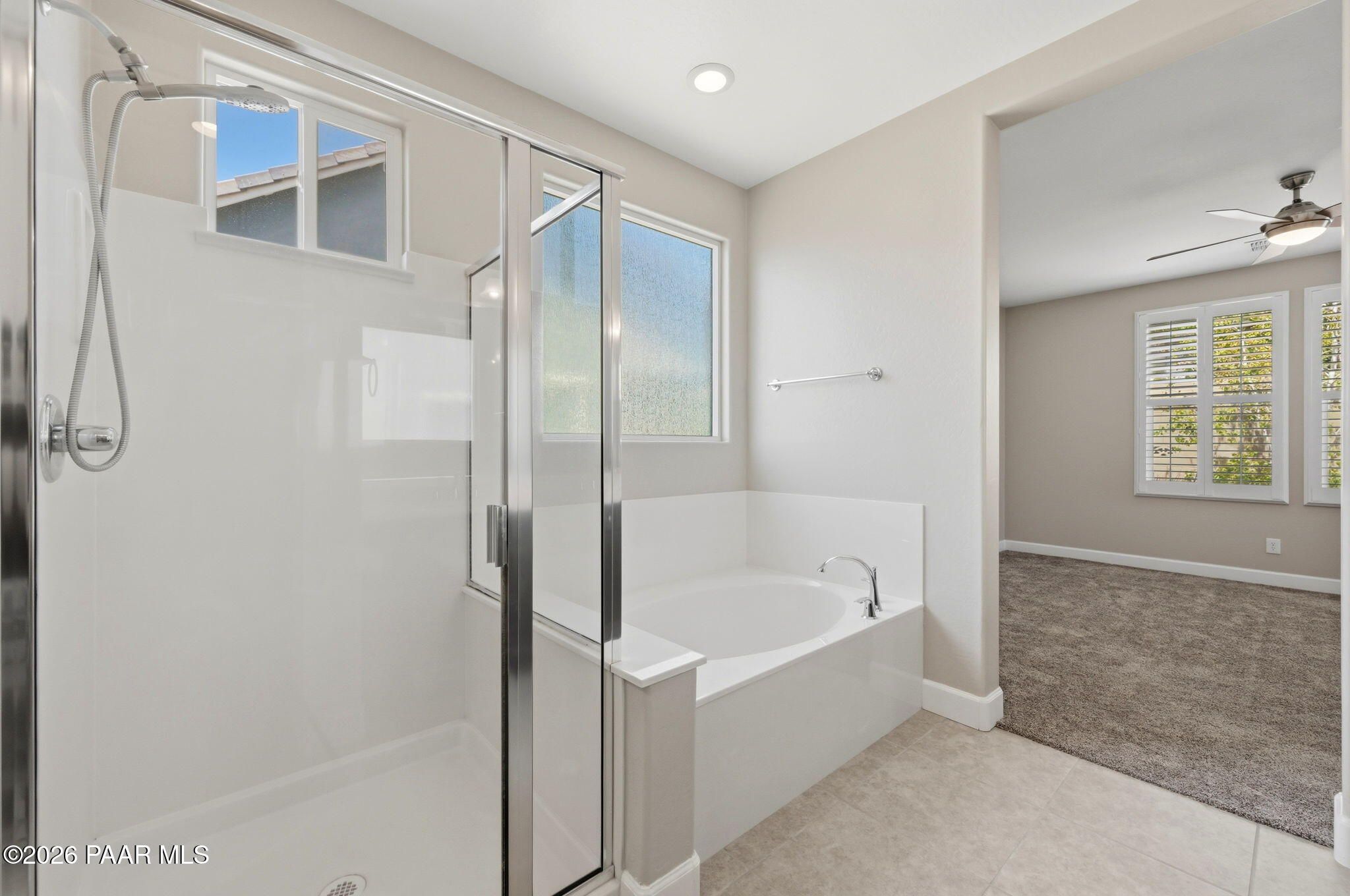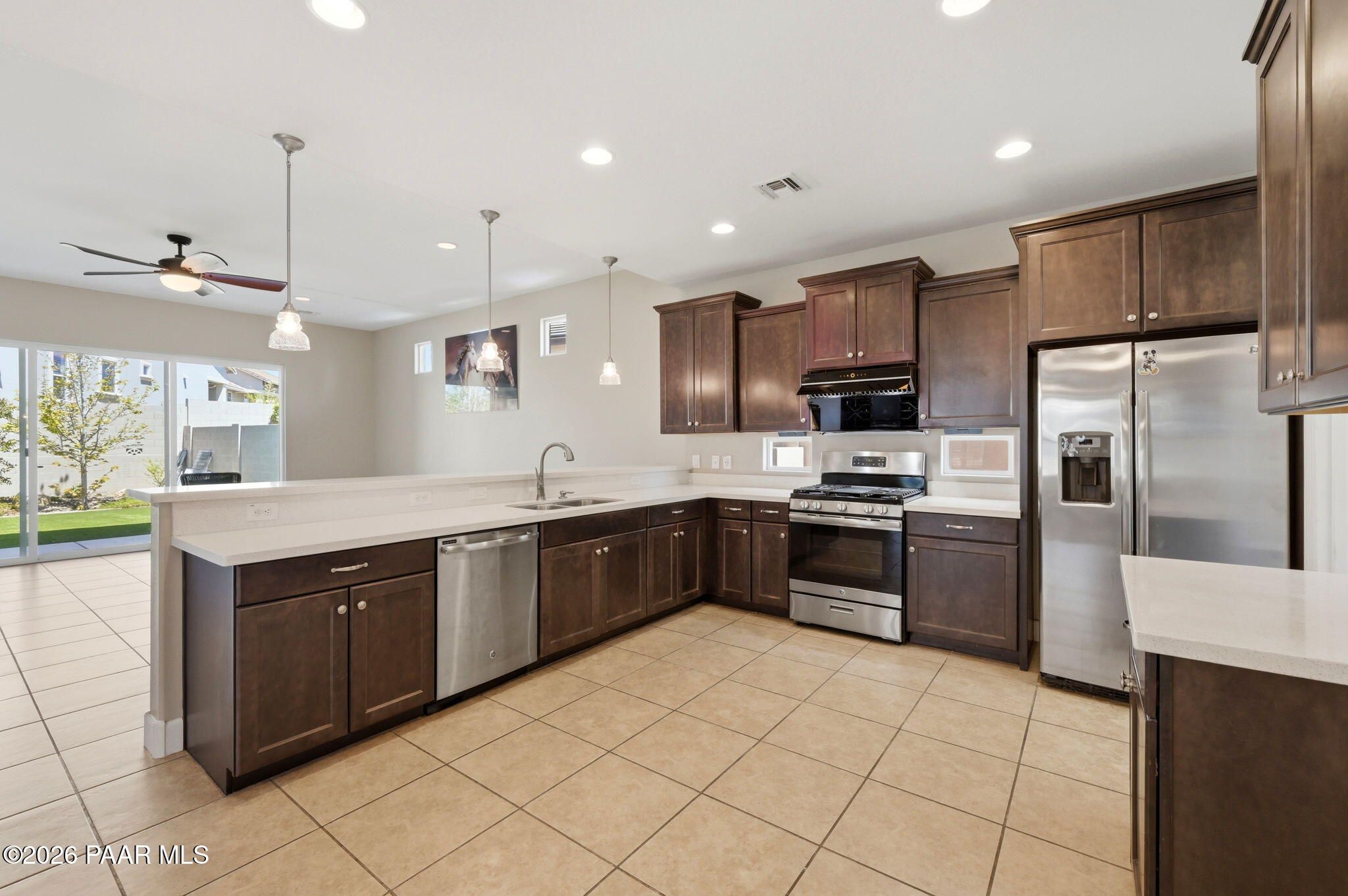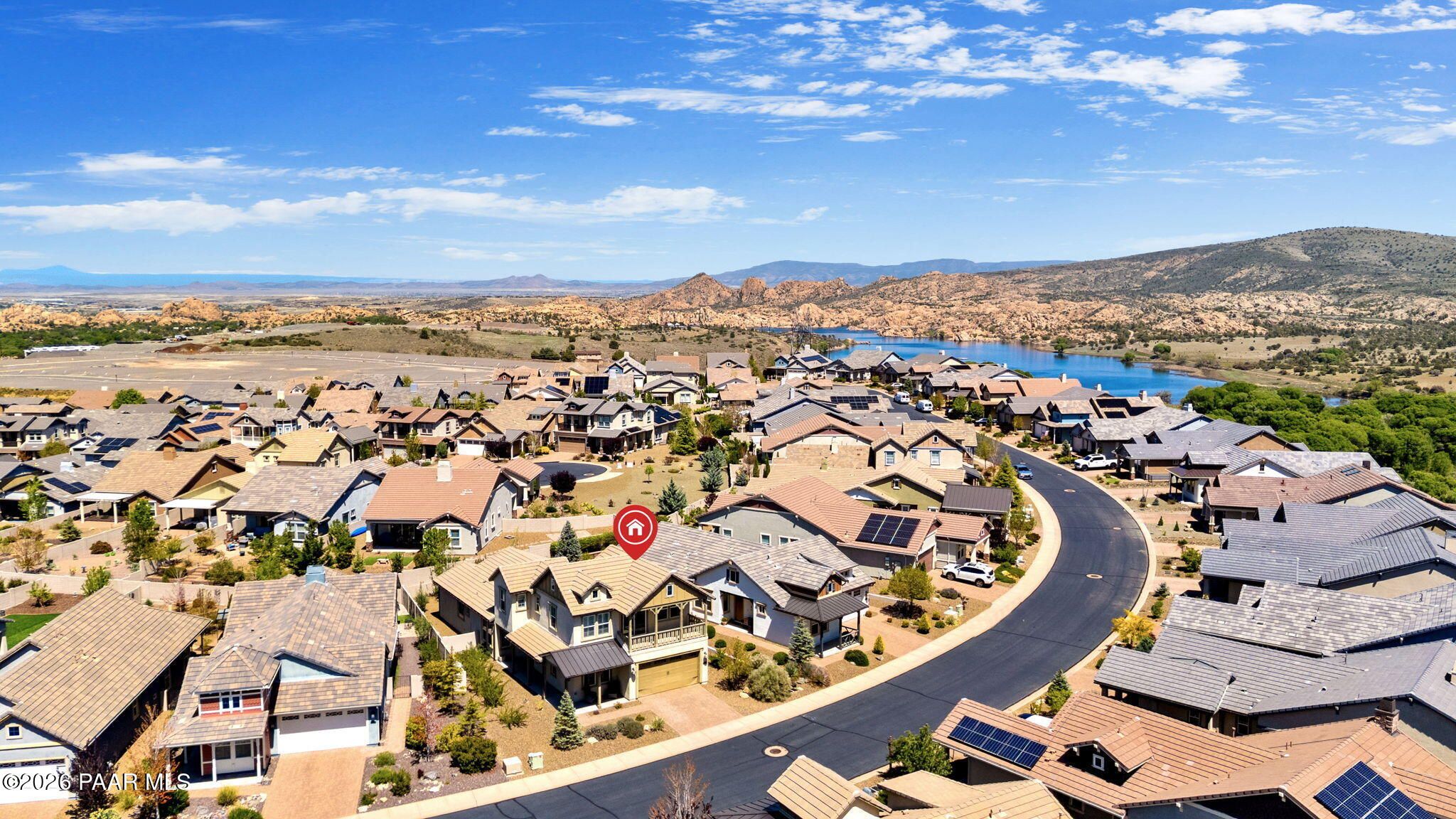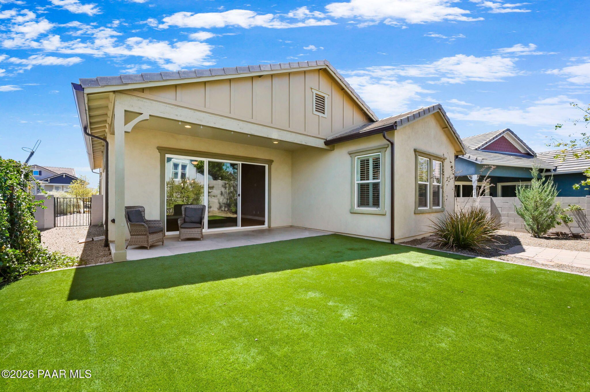 Discover this thoughtfully designed 2,465 sq. ft. residence situated on a premium lot in the desirable Astoria neighborhood. This home is a rare find, perfectly configured for multigenerational living with a layout that effortlessly adapts to your family's evolving needs.Enjoy the ease of single-level living on the main floor, which features a bright, open-concept living area, a dining nook, and a chef's kitchen equipped with quartz countertops, a gas range, and a convenient eat-at peninsula. The main level also hosts the spacious primary suite--complete with a garden soaking tub and walk-in shower--a second bedroom, and a versatile office/den perfect for work or hobbies. The upper level expands your options with a large bonus/media room and two additional guest bedrooms, providing a distinct zone for family or visitors.Outside, the covered patio and tidy, level backyard with artificial turf, and mature landscaping are ideal for entertaining. Residents enjoy access to premier Prescott Lakes amenities, including golf, fitness, and trails. Minutes from shopping, dining, and medical facilities with easy Highway 89 access. WELCOME HOME!