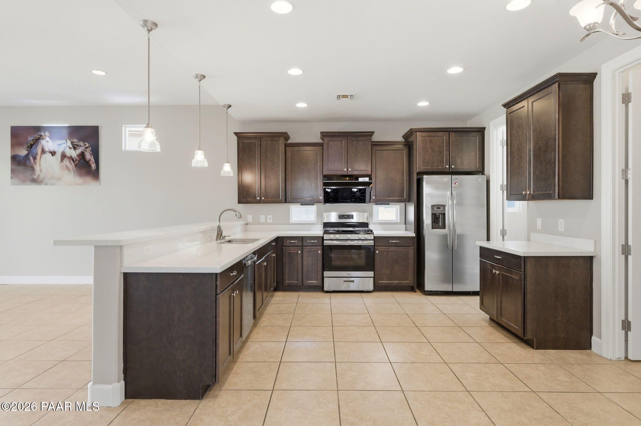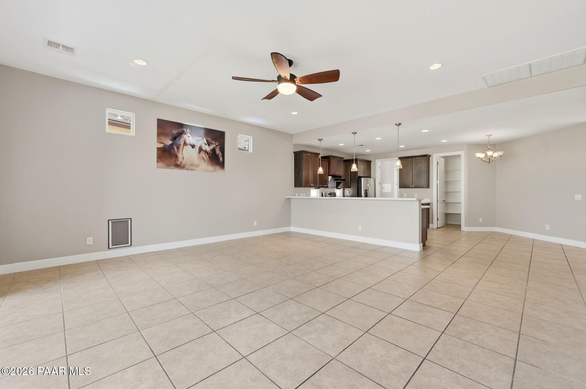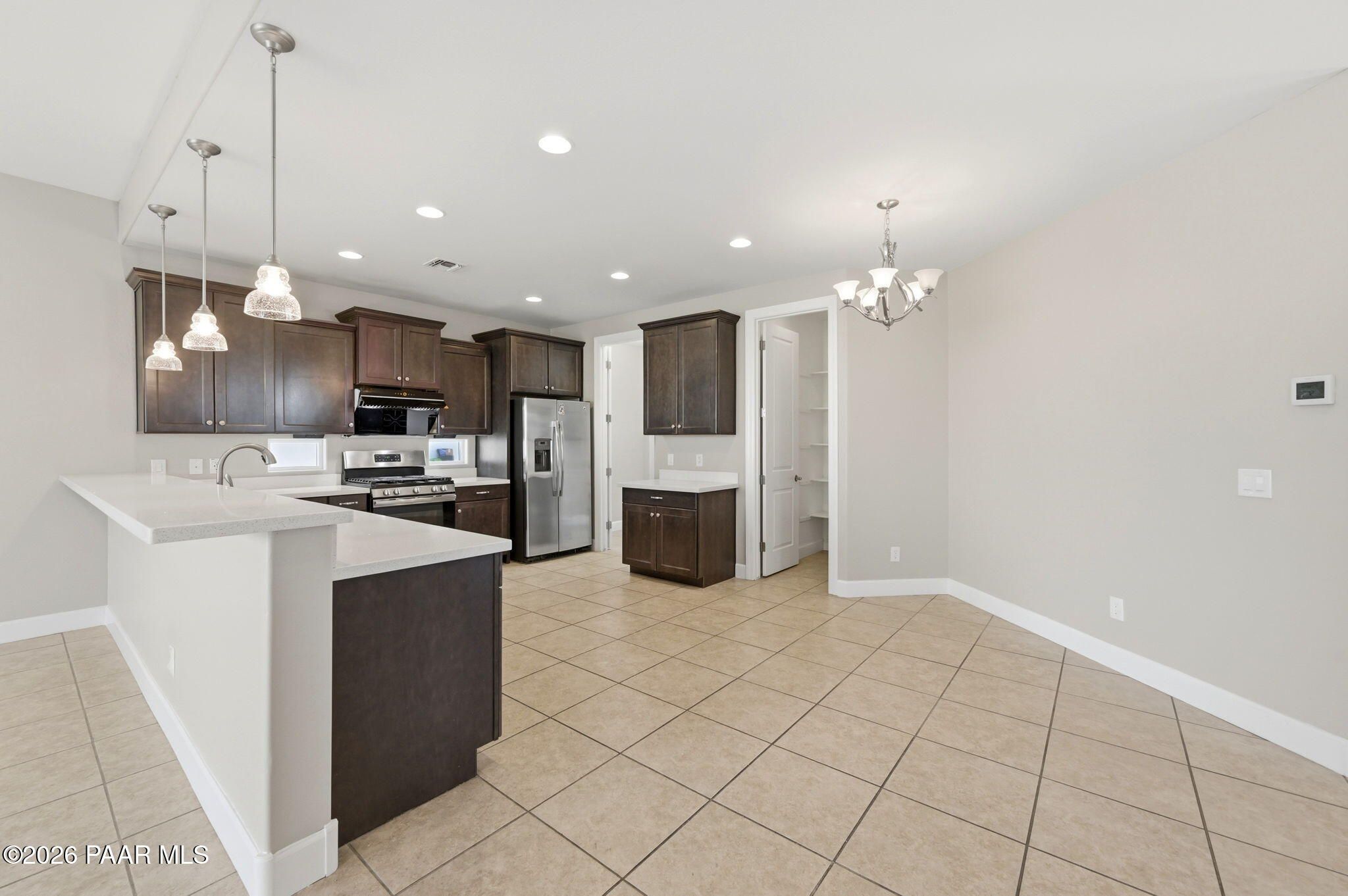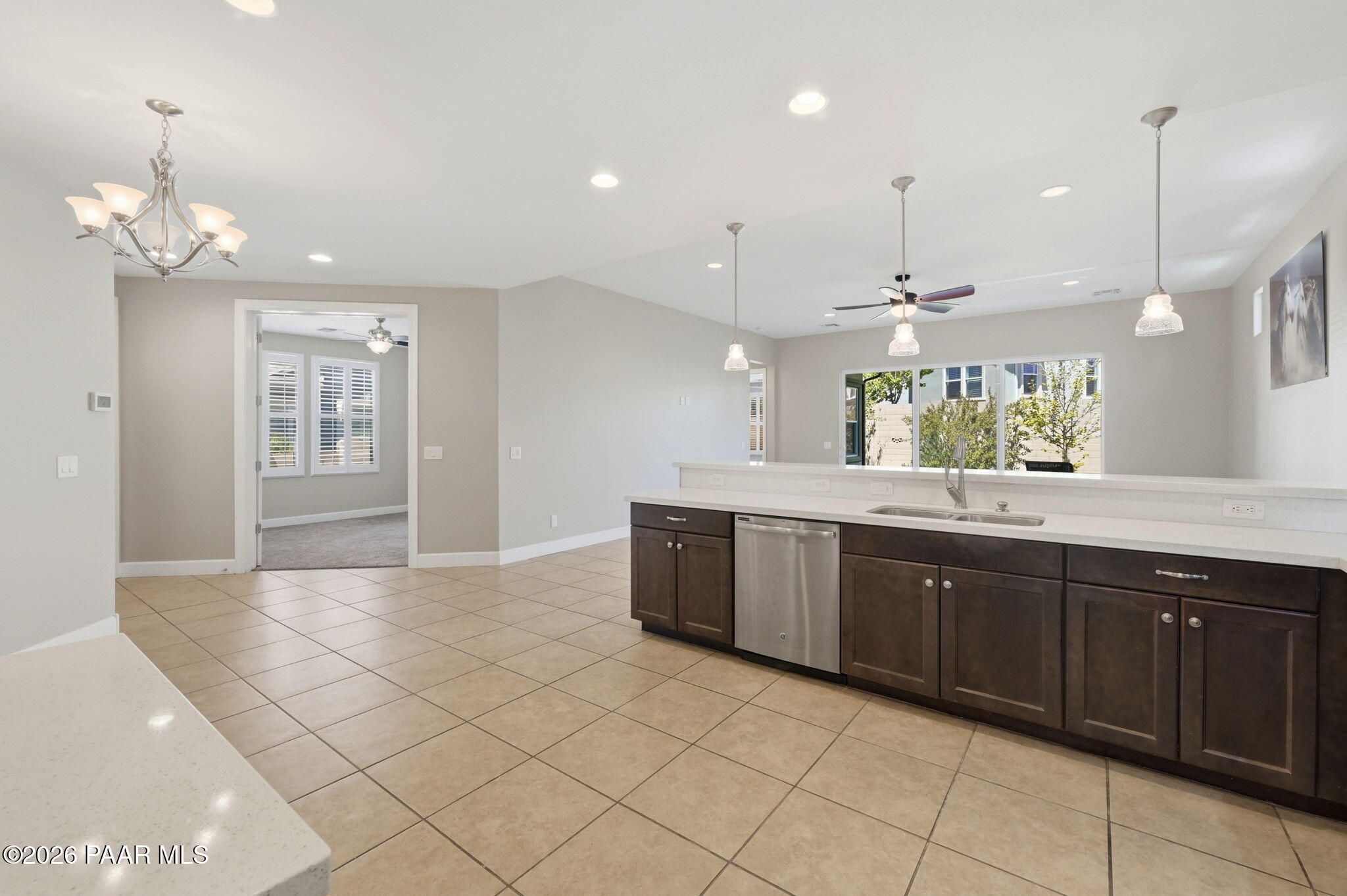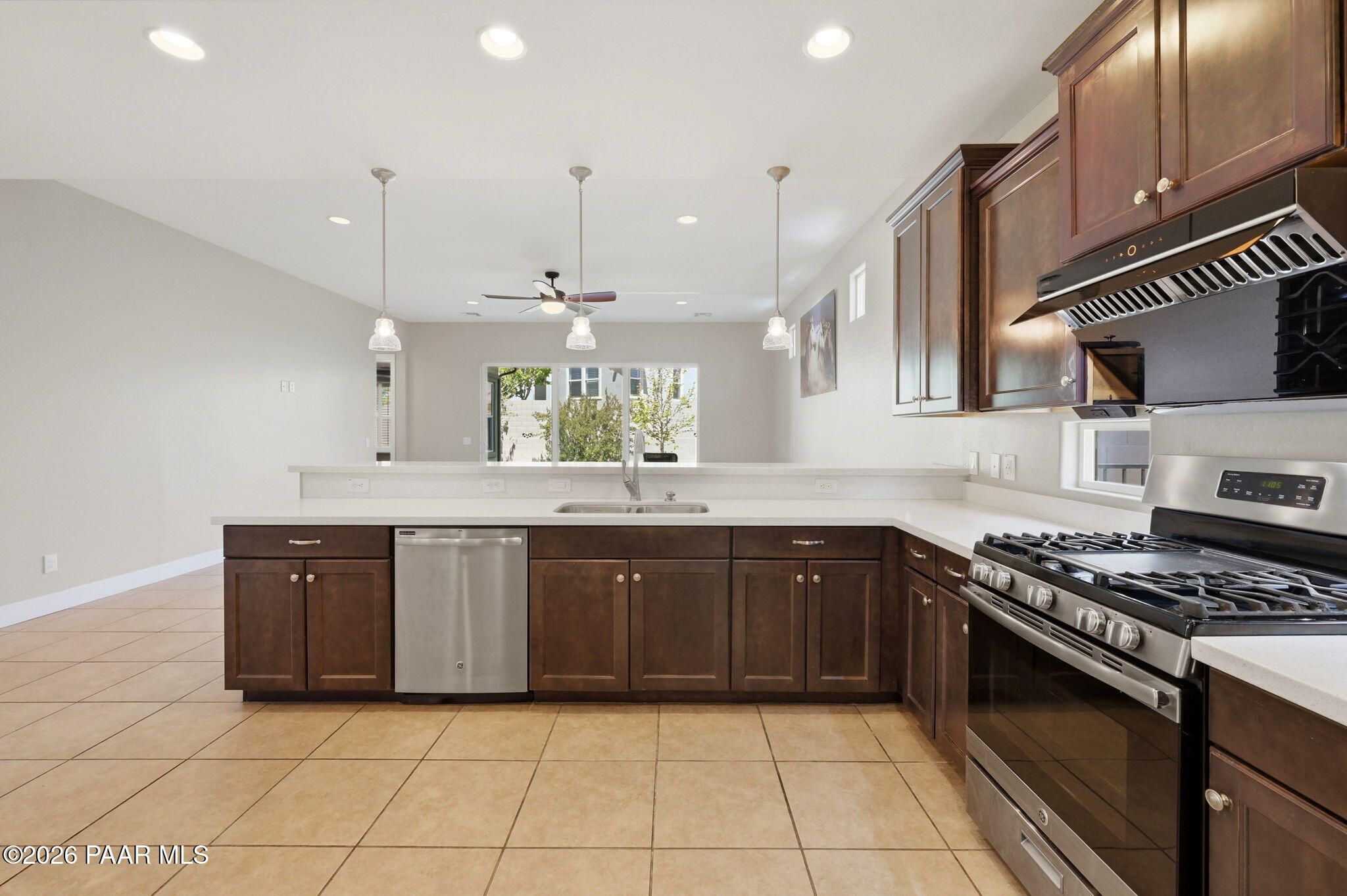 Discover this thoughtfully designed 2,465 sq. ft. residence situated on a premium lot in the desirable Astoria neighborhood. This home is a rare find, perfectly configured for multigenerational living with a layout that effortlessly adapts to your family's evolving needs.Enjoy the ease of single-level living on the main floor, which features a bright, open-concept living area, a dining nook, and a chef's kitchen equipped with quartz countertops, a gas range, and a convenient eat-at peninsula. The main level also hosts the spacious primary suite--complete with a garden soaking tub and walk-in shower--a second bedroom, and a versatile office/den perfect for work or hobbies. The upper level expands your options with a large bonus/media room and two additional guest bedrooms, providing a distinct zone for family or visitors.Outside, the covered patio and tidy, level backyard with artificial turf, and mature landscaping are ideal for entertaining. Residents enjoy access to premier Prescott Lakes amenities, including golf, fitness, and trails. Minutes from shopping, dining, and medical facilities with easy Highway 89 access. WELCOME HOME!