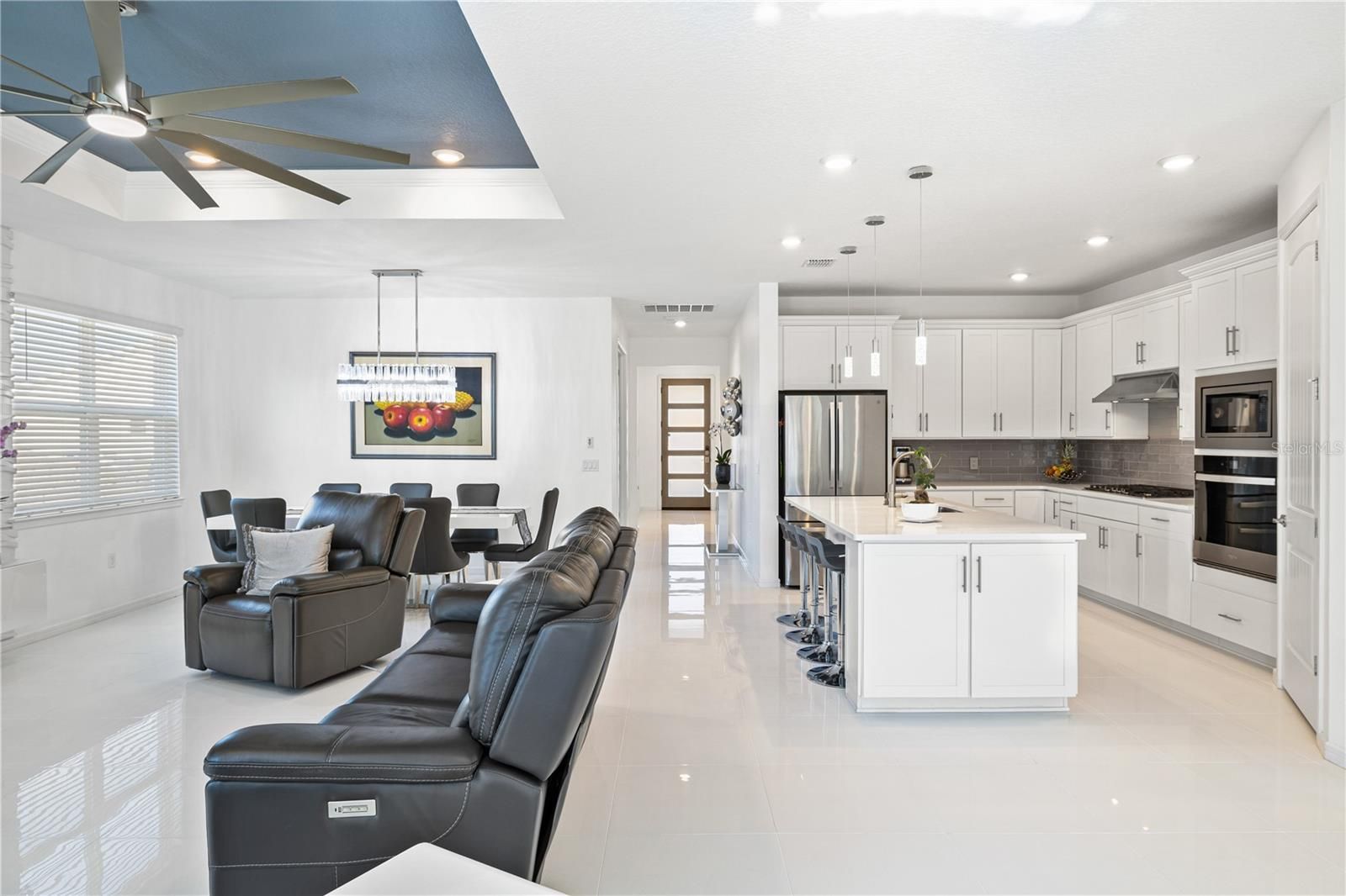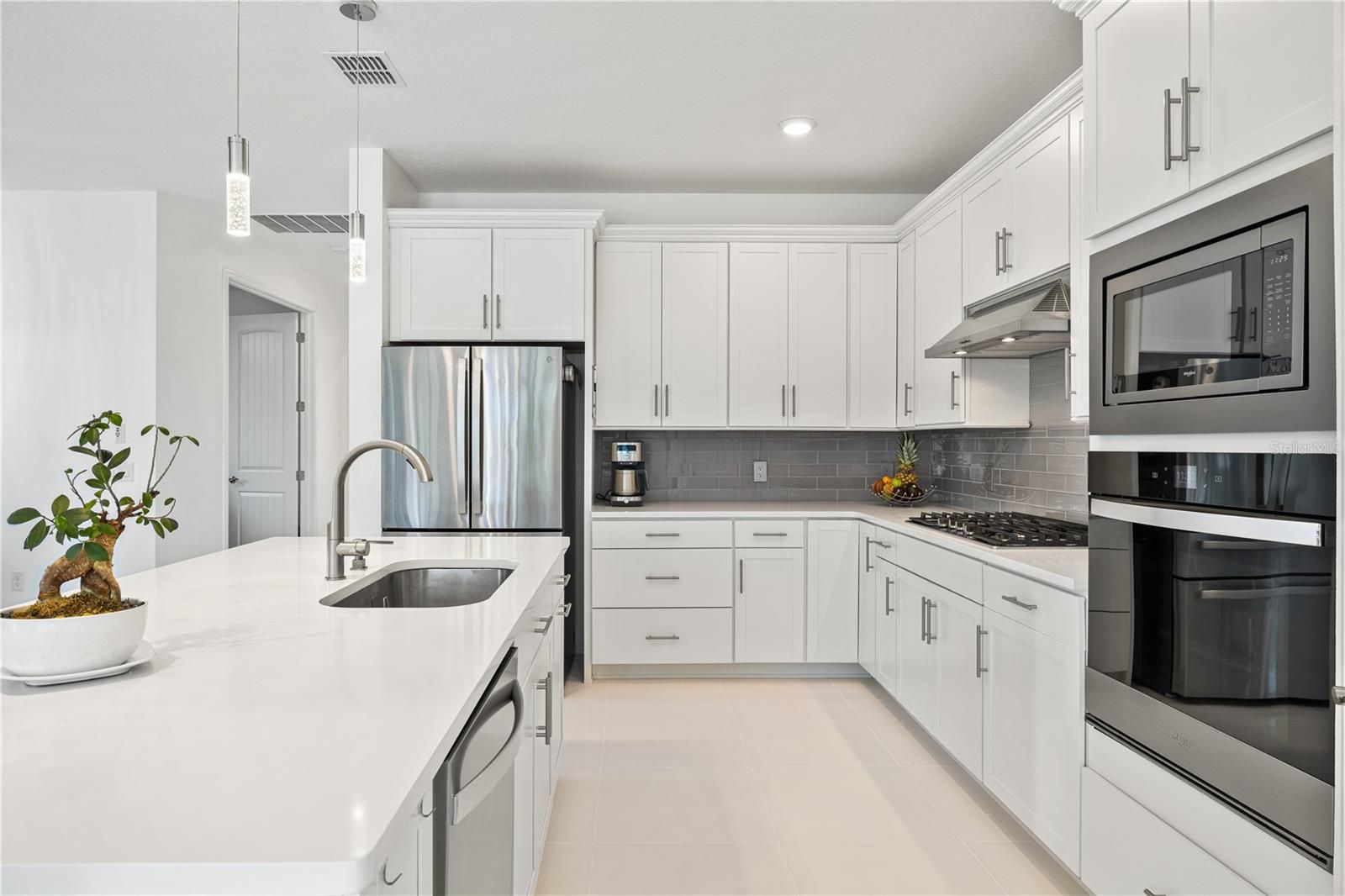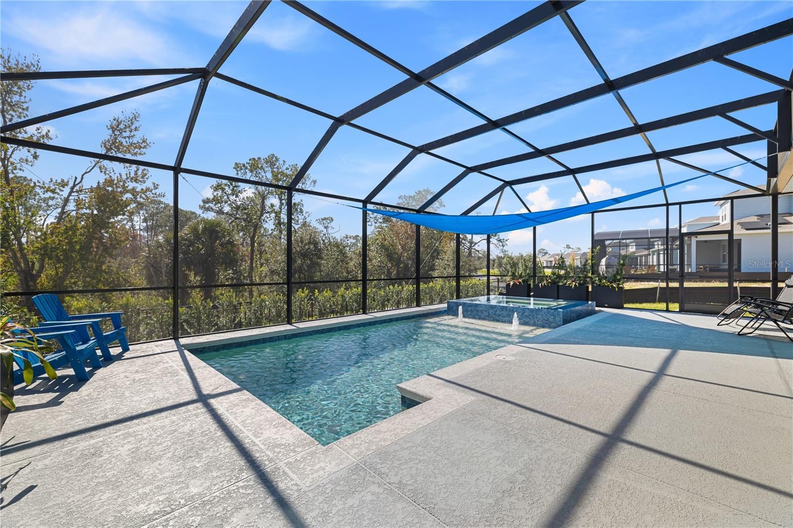 This exceptional Mystique model by Pulte showcases one of the most impressive outdoor living spaces within Del Webb Oasis, a boutique 55+ resort-style community just minutes from Orlando’s top attractions. Situated on a premium conservation lot, this home offers privacy, tranquility, and unobstructed natural views—an ideal setting for those seeking an elevated and peaceful living experience. With more than $100k in upgrades. At the heart of the property is a remarkable outdoor retreat. Enjoy a custom heated saltwater pool, spa with App-controlled pool features for temperature and lighting and an extended covered lanai featuring a fully equipped outdoor kitchen in this Peaceful conservation backdrop with no rear neighbors. Designed for year-round enjoyment, this space is perfect for entertaining, relaxing, and embracing Florida living at its finest. Sliding glass doors seamlessly connects the indoor living areas to the lanai, enhancing the home’s expansive and open feel. The exterior also includes gutters for added protection and maintenance ease. Inside, this single-story residence features 2 bedrooms, a flex room, perfect for an office, hobby space, or guest accommodations 2 bathrooms, and a 3-car tandem garage. The open-concept layout offers tall ceilings, abundant natural light, and a spacious gathering room. The gourmet kitchen is equipped with built-in Whirlpool appliances, 42” white soft-close cabinetry, Quartz countertops, decorative tile backsplas. The kitchen boasts exquisite, luxurious finishes that elevate the confort and elegance of this wonderful home. The owner’s suite includes a luxury frameless glass walk-in shower, dual quartz vanities, a linen closet, and elegant finishes.. Additional interior upgrades include designer tile flooring throughout, crown molding, 8’ interior doors, comfort-height toilets, and brushed nickel hardware. The laundry room features Whirlpool washer and dryer, quartz countertop, a utility sink, and upgraded cabinetry. This home offers multiple automated features for effortless living: • Electric curtains in the living room and owner’s suite – Controlled via mobile app or Alexa • Smart security camera system, fully app-managed • App-controlled pool system • Watershield Gold softener system included Del Webb Oasis is a natural-gas 55+ community offering resort-style amenities such as a zero-entry pool with sun shelf and lap lanes, private cabanas, spa, fire pits with fireworks views, fitness center, tennis and pickleball courts, walking trails with fitness stations, and a robust calendar of activities organized by a full-time Lifestyle Director. Combining a premier conservation lot, a standout outdoor living area, and high-end interior upgrades, this residence stands out as one of the most desirable homes available in Del Webb Oasis’s 55+ collection. At last, the property you've been waiting for is here - A refined, luxurious retreat just for you.
