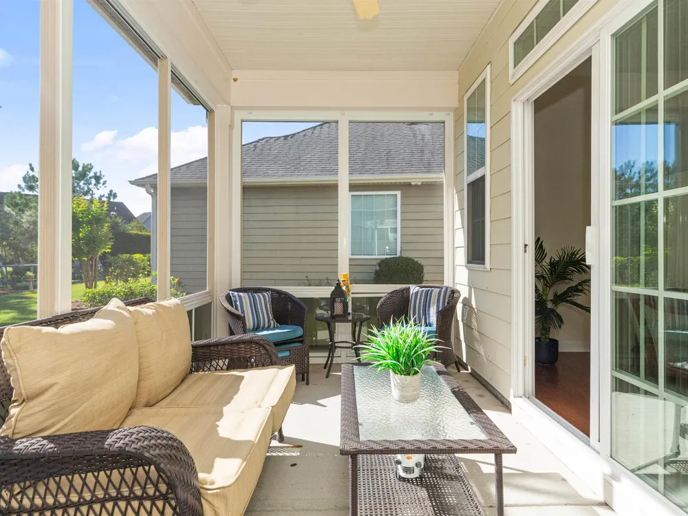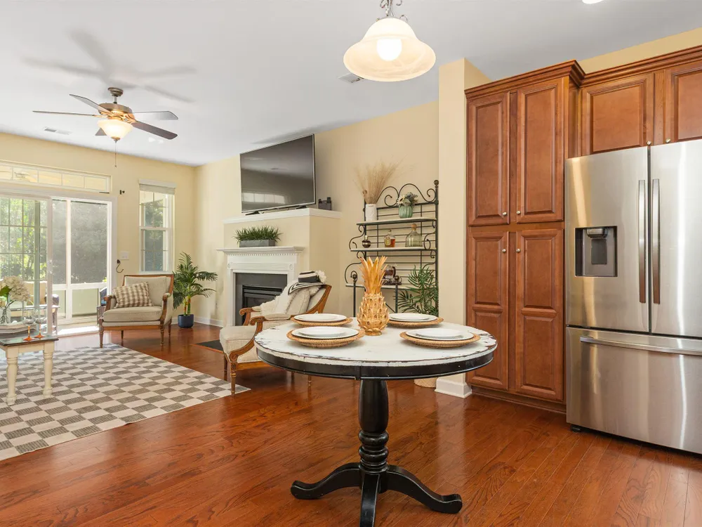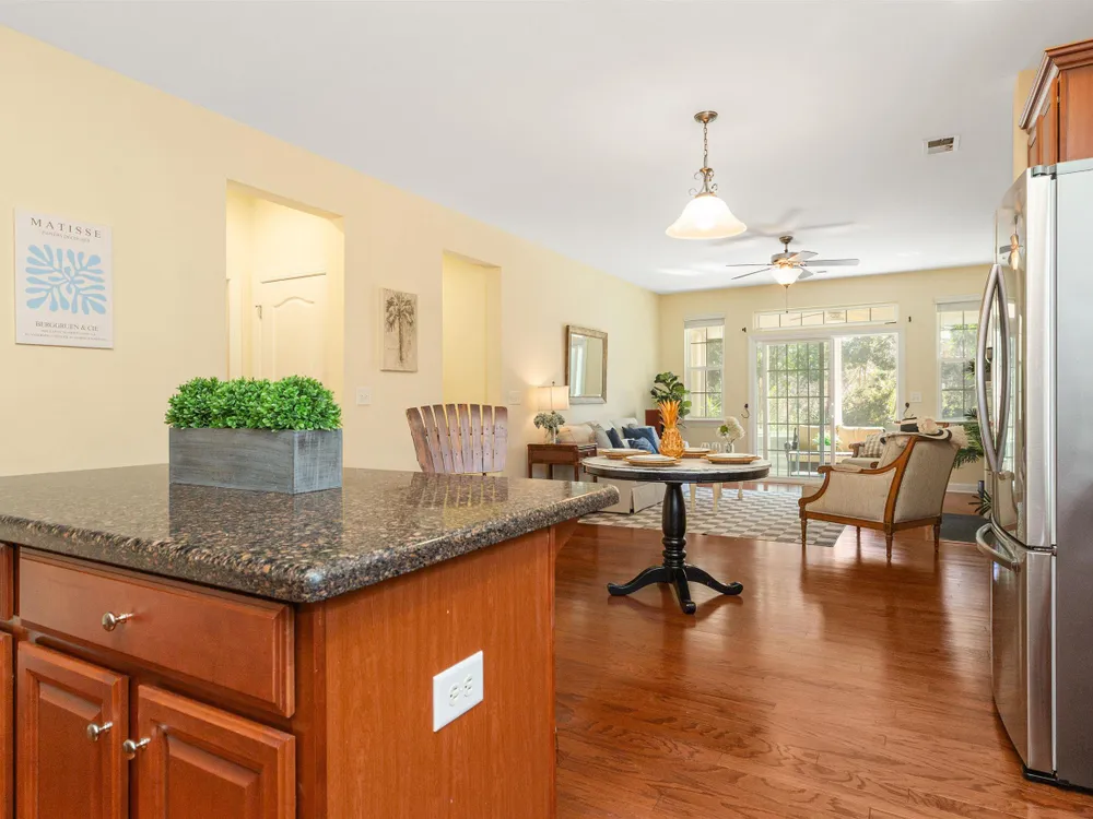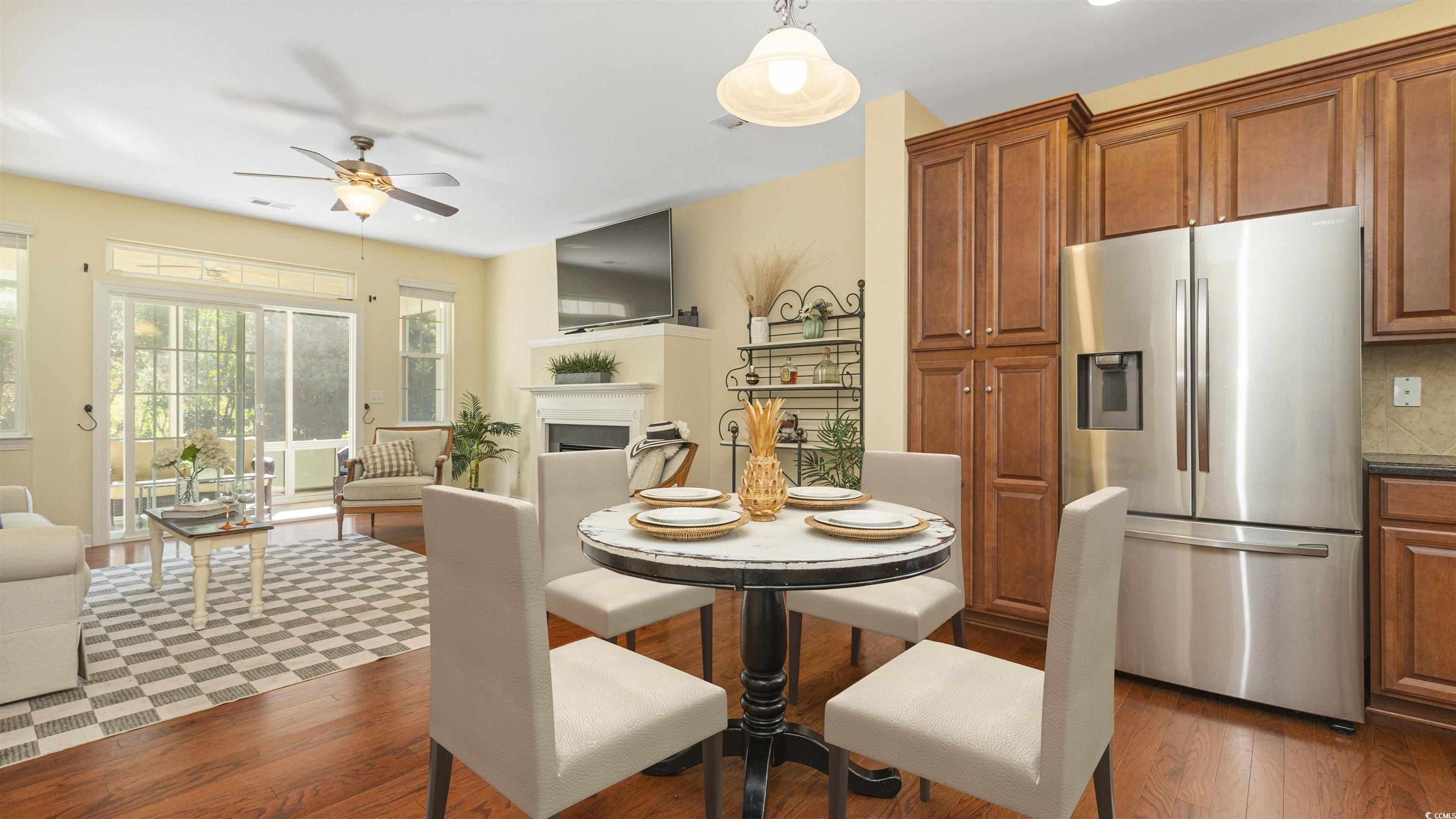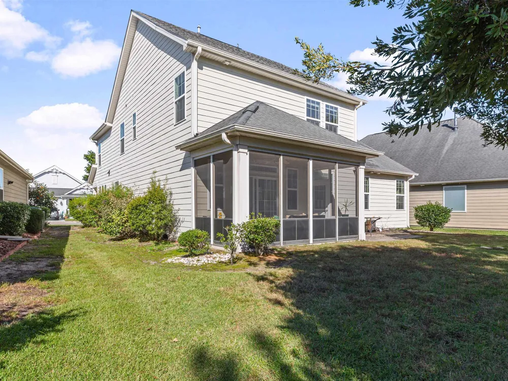 Welcome to 1517 Culbertson Avenue, a stunning Elm model by Lennar, perfectly nestled in the highly sought-after Emmens Preserve community at The Market Common. This 4-bedroom, 2.5-bath home blends comfort, character, and convenience, offering not just a house, but a lifestyle. Step inside to find beautiful hardwood floors flowing throughout the main living areas and an inviting open layout centered around a cozy natural gas fireplace, ideal for quiet evenings or lively gatherings. The kitchen and living space open to a screened-in porch overlooking a private, tree-lined yard, a peaceful setting for morning coffee or weekend cookouts. The first-floor primary suite provides a relaxing retreat with a large walk-in closet, double-sink vanity, walk-in shower, soaking tub, and private water closet. Upstairs, a spacious bonus room creates the perfect hangout zone, surrounded by three additional bedrooms filled with natural light. Two share a Jack-and-Jill bath, while the front bedroom overlooks the neighborhood through three picturesque windows. The two-car garage has been upgraded with rubber flooring and mirrors ready for your at-home workouts. Located in The Market Common, you’ll enjoy one of Myrtle Beach’s most vibrant and walkable communities, filled with parks, trails, shops, dining, and year-round community events that bring neighbors together. Whether it’s outdoor concerts, farmers markets, or sunset strolls around the lake, life here feels like a blend of coastal charm and modern living. At 1517 Culbertson Avenue, home is more than where you live, it’s where life happens.
