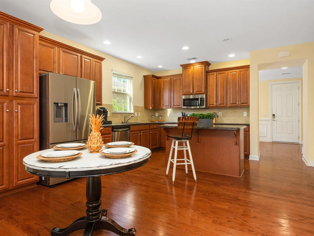 - Kitchen Island, Stainless Steel Appliances, Solid Surface Counters