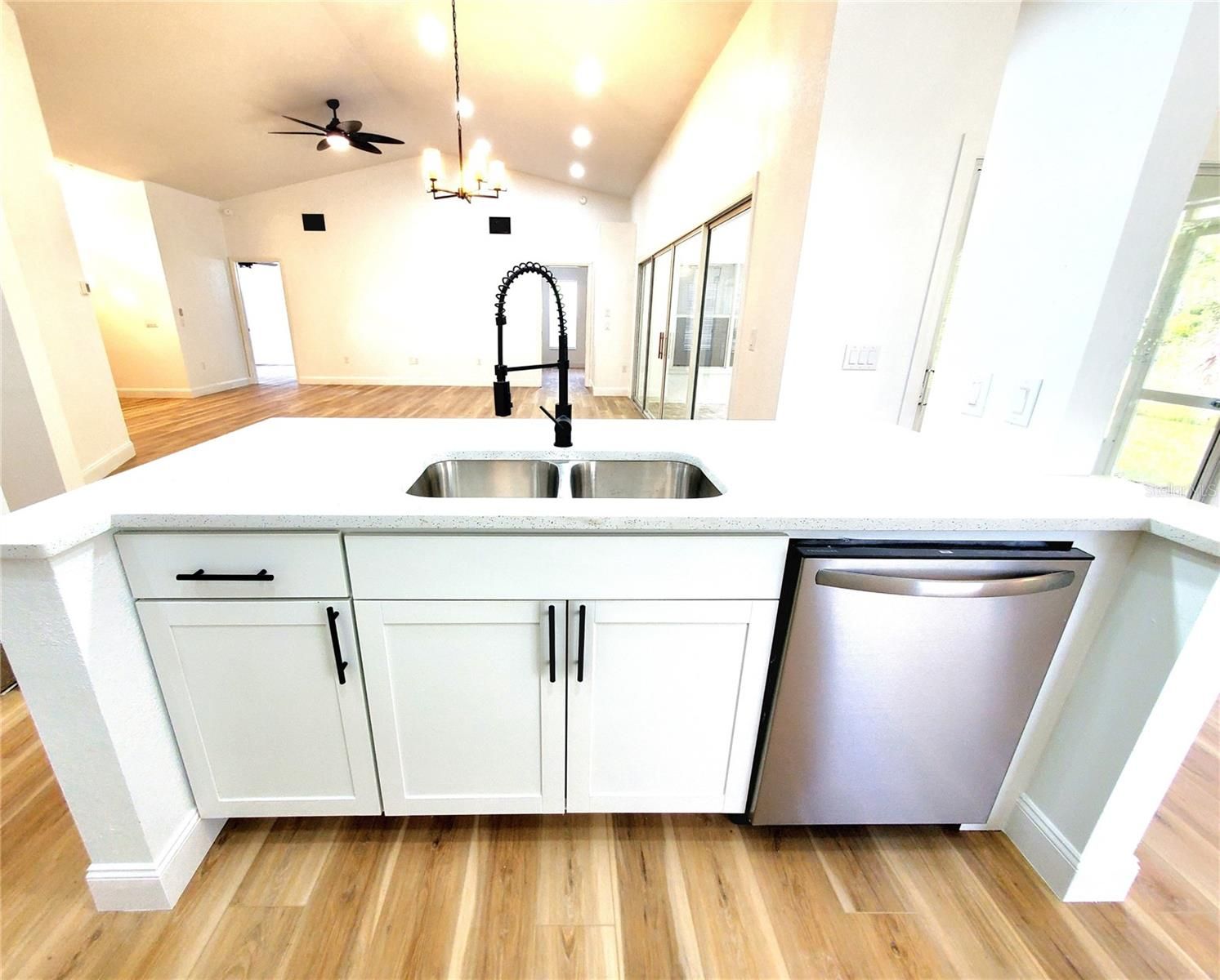 ** KNOCKOUT IN HERITAGE SPRINGS! ** This is a WOW HOUSE! Beautifully renovated in 2025, this home boasts extraordinary curb appeal with a custom-painted exterior, brand-new dimensional shingle roof, and a professionally landscaped yard. The welcoming entryway features a newly tiled front porch and double-door entrance. Step inside to a wide-open floor plan with soaring ceilings that greet you immediately! Professionally staged to display the home's ultimate potential! The interior has been newly textured and painted throughout. Brand-new vinyl "wood" flooring runs through every room, complemented by high baseboards. The massive great room shines with soaring ceilings and recessed lighting. The stunning kitchen includes all-new stainless-steel appliances, new cabinetry, a tile backsplash, and quartz countertops. There's a cozy dinette area with a fantastic view for morning coffee and a large breakfast bar perfect for casual dining and entertaining. The spacious master suite features a walk-in closet, private bathroom, and access to an at-home office. The master bath includes brand-new his-and-her sinks set in a quartz-topped vanity, new mirrors, lighting, and a newly tiled walk-in shower with updated fixtures. Adjacent to the master is a second bedroom or office with another walk-in closet. The third bedroom and bathroom are located on the opposite side of the home for added privacy. Each bedroom is equipped with new ceiling fans with remotes. From the great room, a wall of four sliders opens onto a spacious back patio. The covered lanai is newly tiled and perfect for outdoor living. The backyard backs onto conservation and a pond, creating a serene, park-like setting. Heritage Springs is the premier 55+ gated community in the Pinellas/Pasco area, featuring an active lifestyle with residents cruising around on golf carts to the golf course, clubhouse, pool, and tennis courts. The $313/month fee covers all the neighborhood attributes that Heritage Springs has to offer! The clubhouse is incredible....it comes with a full restaurant, bar, and event hall for dances and holiday parties! Also a great meeting spot for residents to play cards, games, and share in hobbies! Newly restored community pool outback overlooking the 18th hole! Heritage Springs Golf is a private and manicured 18-hole course that is 2nd to none in the area! The Twin Lakes $150/month fee covers all your yard work....no cutting grass on the weekend! Sprinklers in this neighborhood are on 2 wells! This is the ultimate Florida lifestyle in the ultimate Florida home.....this one sells itself, come take a look!