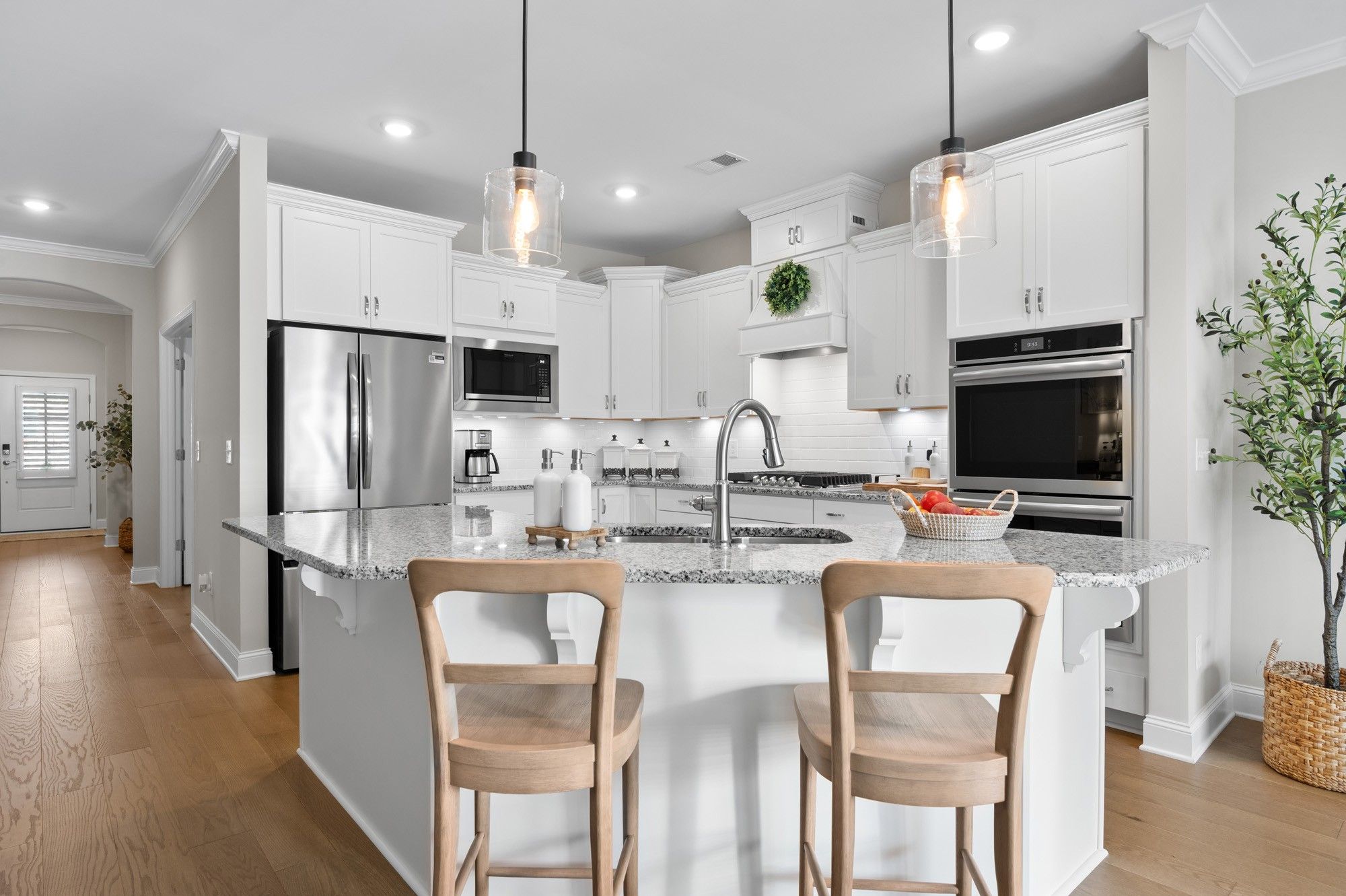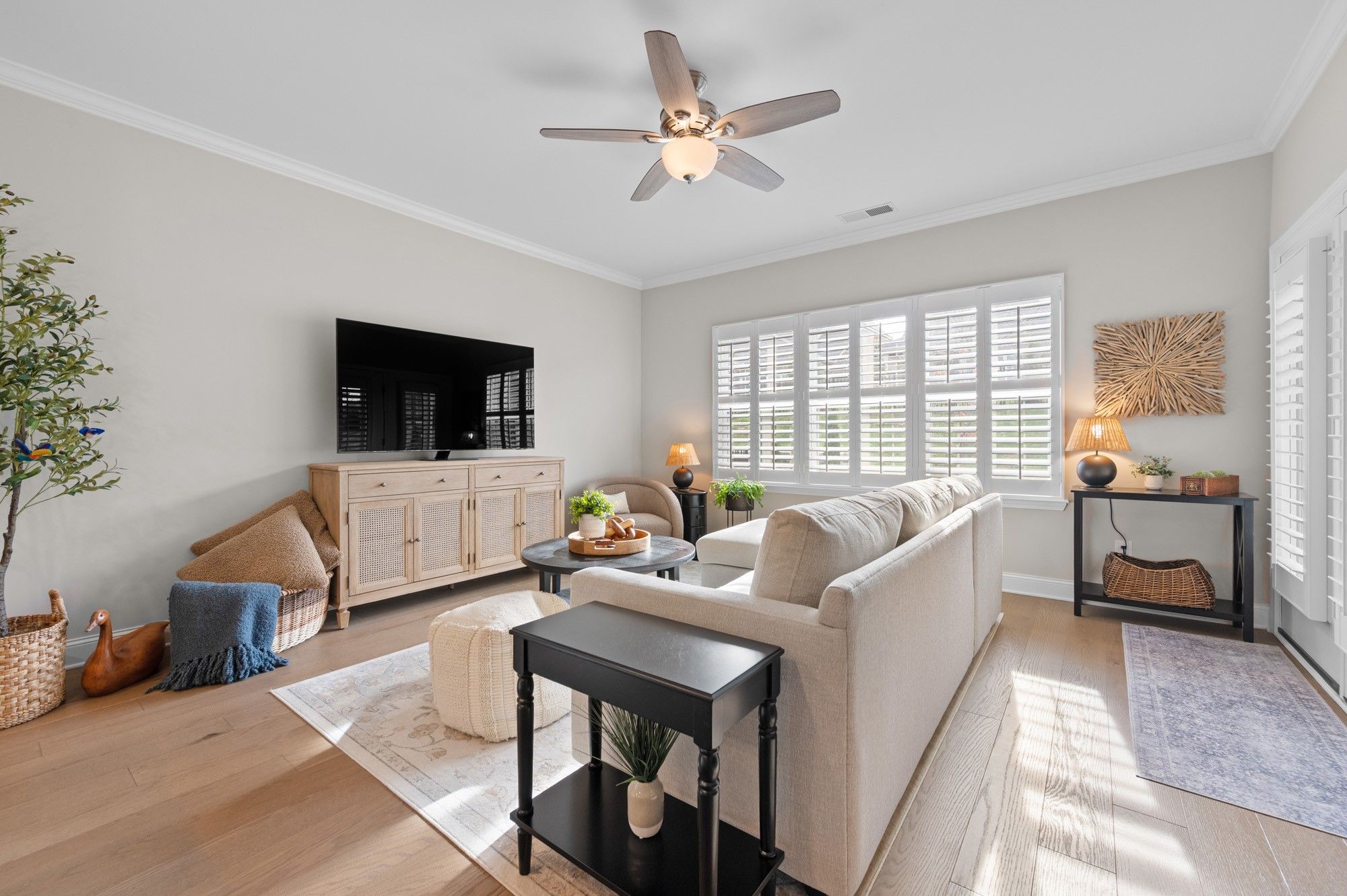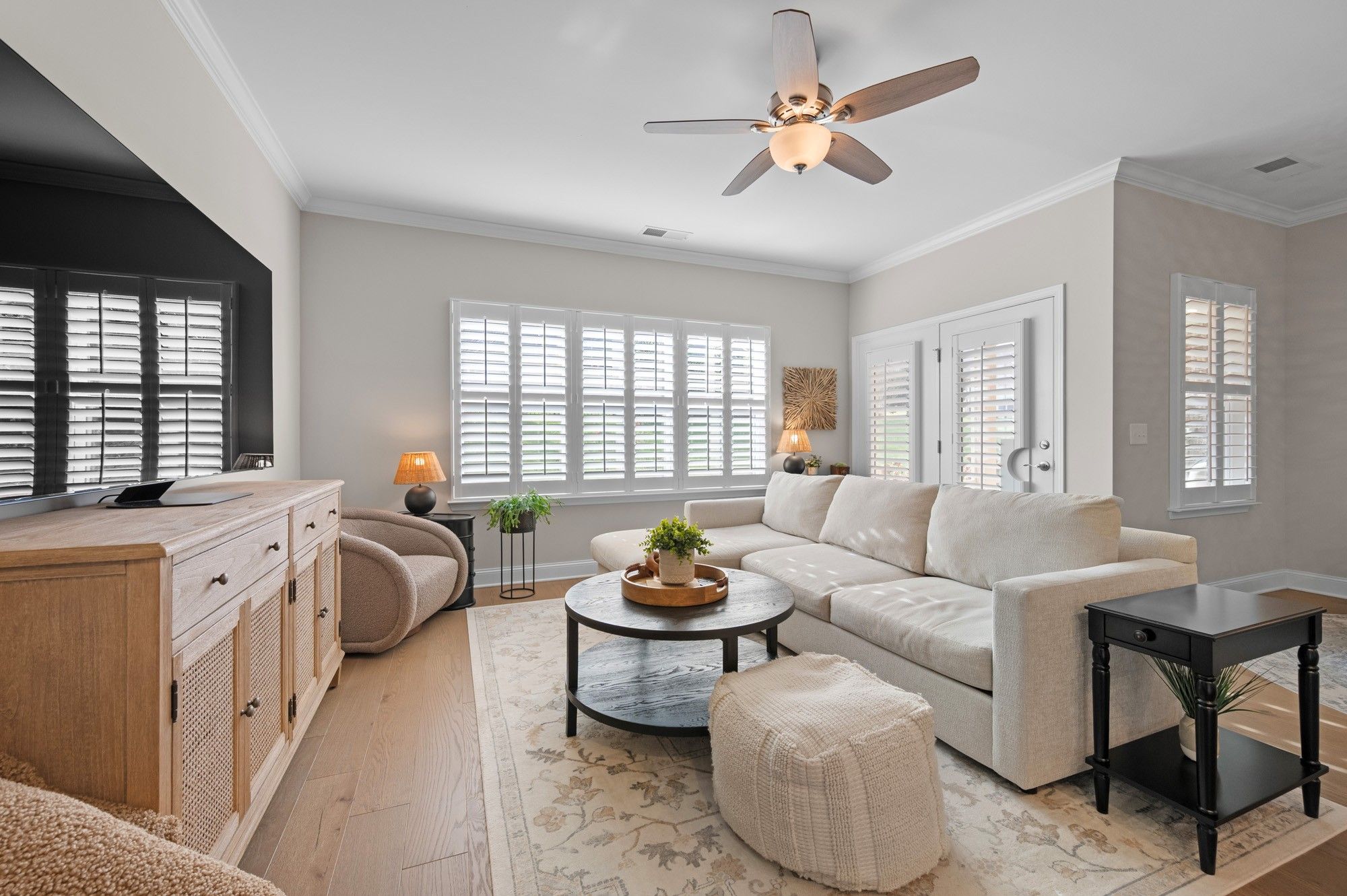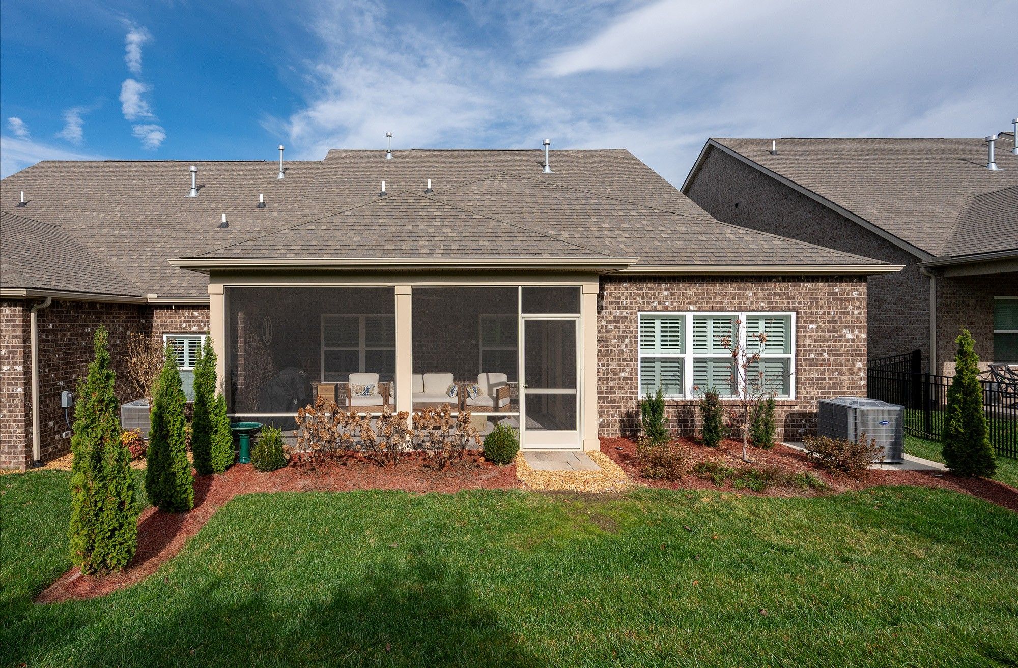 Welcome to this amazing, like-new one-level home offering 1,633 sq. ft. of beautifully upgraded living space—true no-stairs living at its finest. Situated in a quiet setting at the back of the neighborhood, this 2-bedroom, 2-bath property combines comfort, style, and enhancements throughout. Inside, you’ll find hardwood flooring, crown molding, and ceiling fans in every room. The upgraded kitchen features soft-close cabinets, granite countertops, gas appliances with a double oven. Custom wooden shutters, upgraded faucets, and upgraded bathroom cabinetry elevate the home’s interior, while the master suite offers a tray ceiling and an upgraded walk-in shower. Enjoy seamless indoor-outdoor living with the screened-in porch, upgraded exterior French doors, and a beautifully landscaped yard. Additional upgrades include an insulated garage door and keyless exterior entry. This home has been meticulously maintained with biannual HVAC servicing, quarterly pest control, and a termite contract through the HOA. The driveway was freshly sealed this year for added value and durability. Located in a vibrant community with walking trails, a community pool, and multiple monthly events, this property offers both tranquility and connection. Move-in ready and full of upgrades, this home truly stands out.