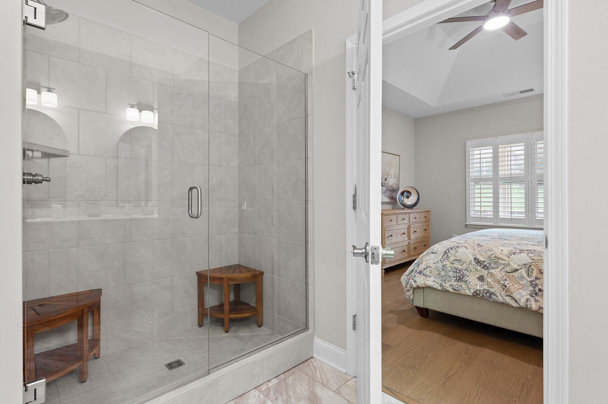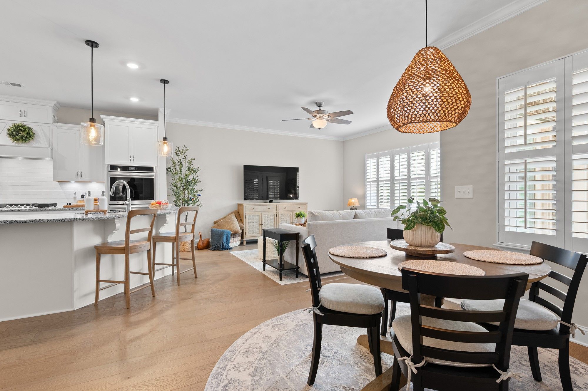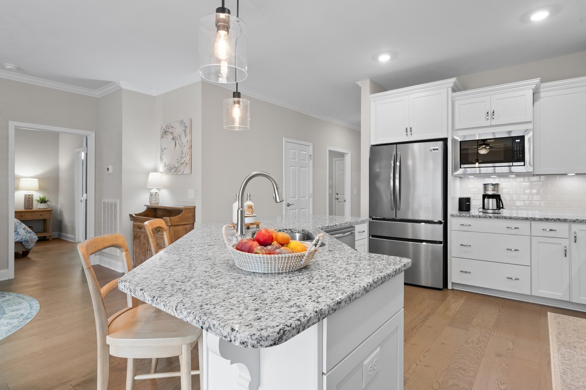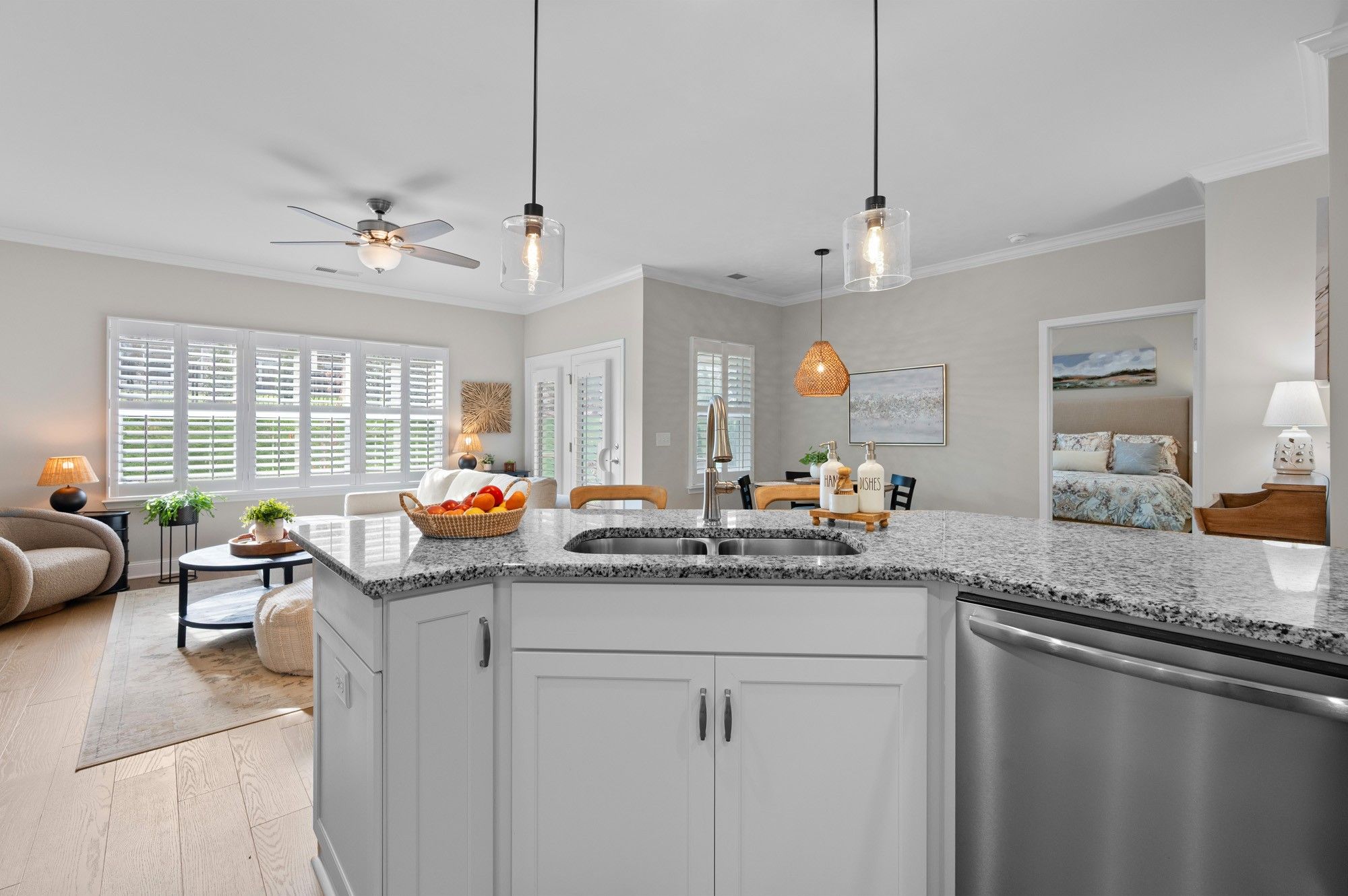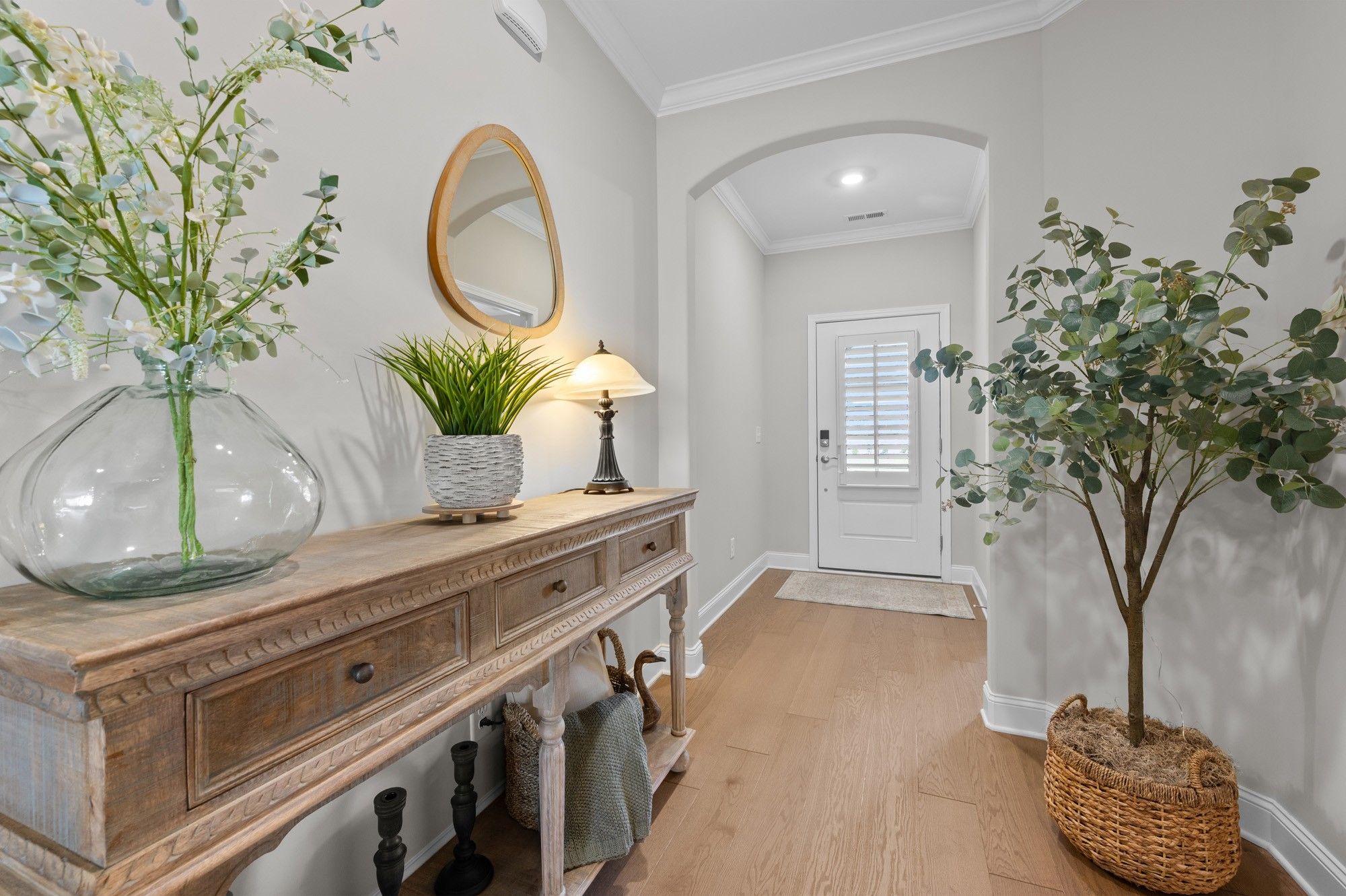 Welcome to this amazing, like-new one-level home offering 1,633 sq. ft. of beautifully upgraded living space—true no-stairs living at its finest. Situated in a quiet setting at the back of the neighborhood, this 2-bedroom, 2-bath property combines comfort, style, and enhancements throughout. Inside, you’ll find hardwood flooring, crown molding, and ceiling fans in every room. The upgraded kitchen features soft-close cabinets, granite countertops, gas appliances with a double oven. Custom wooden shutters, upgraded faucets, and upgraded bathroom cabinetry elevate the home’s interior, while the master suite offers a tray ceiling and an upgraded walk-in shower. Enjoy seamless indoor-outdoor living with the screened-in porch, upgraded exterior French doors, and a beautifully landscaped yard. Additional upgrades include an insulated garage door and keyless exterior entry. This home has been meticulously maintained with biannual HVAC servicing, quarterly pest control, and a termite contract through the HOA. The driveway was freshly sealed this year for added value and durability. Located in a vibrant community with walking trails, a community pool, and multiple monthly events, this property offers both tranquility and connection. Move-in ready and full of upgrades, this home truly stands out.