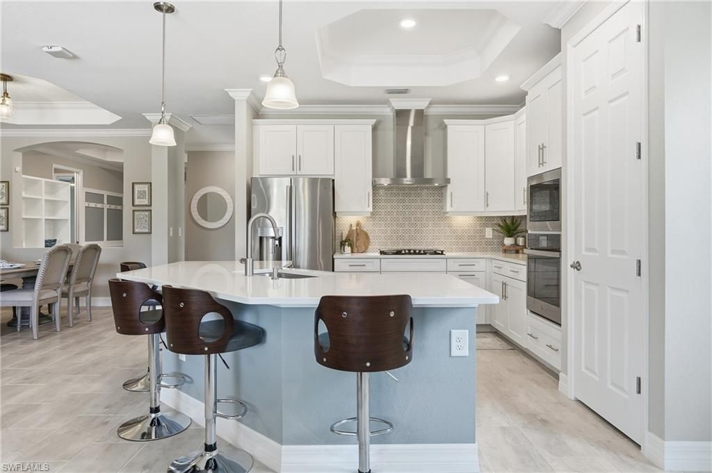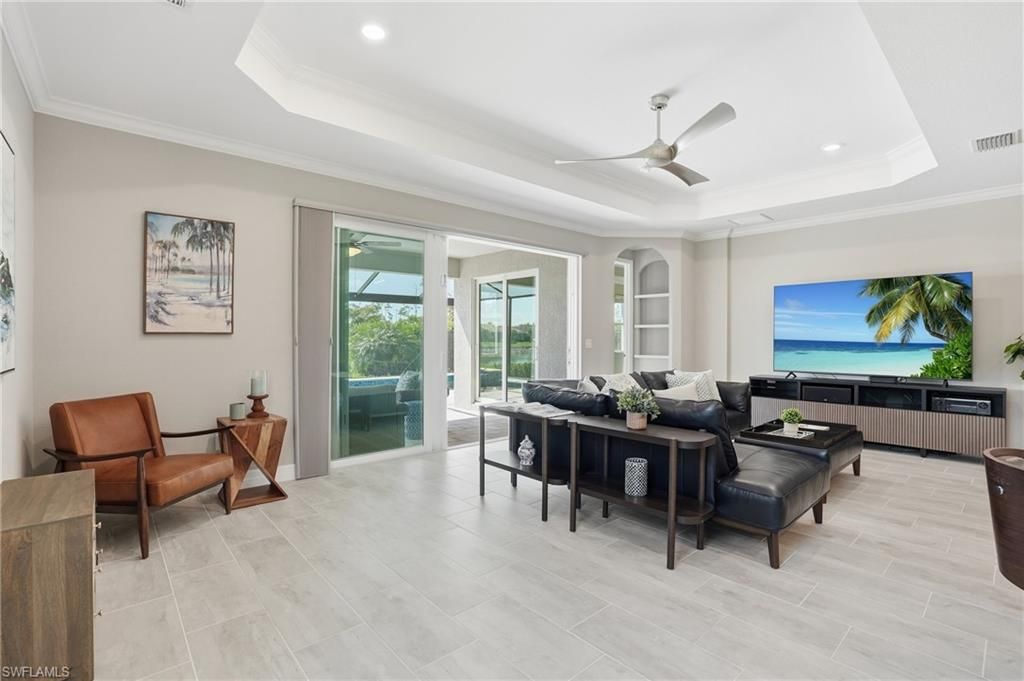 Welcome to 15194 Blue Bay Circle, a beautifully appointed residence in the highly sought after WildBlue community, offering a waterfront setting on the beautiful 225 acre boatable Lake Vista.This four bedroom, two bathroom home offers 2,246 square feet of open concept living space and is being offered furnished with décor. Thoughtfully designed for both comfort and functionality, the split bedroom floor plan provides privacy, with the spacious primary suite tucked away from the guest rooms. The owner’s retreat features walk out sliding doors, two walk in closets and a spa like bathroom complete with dual vanities, a soaking tub, and a walk in shower.At the heart of the home, the gourmet kitchen is outfitted with quartz countertops, a custom designer backsplash, soft close solid wood shaker style cabinetry, stainless steel appliances, and a gas cooktop, enhanced by natural gas service for efficiency. Additional upgrades include porcelain tile flooring throughout, window treatments, impact resistant windows and doors, and a whole home generator for peace of mind.Step outside to the covered lanai and enjoy tranquil lake views while relaxing by your custom salt water pool and spa, with plenty of shaded space for entertaining. This homesite also allows for the construction of a private boat dock, providing direct access to Lake Vista and an incredible boating experience right from your backyard.Situated on an oversized lot, this home offers exceptional privacy with no neighbor to the right side and mature privacy hedges that create a serene, secluded setting rarely found in the community. Additionally, the property is conveniently located just steps away from the community boat launch, providing quick and easy access to Lake Vista for boating, kayaking, and waterfront enjoyment.Residents of WildBlue enjoy access to the community’s exceptional amenity peninsula, featuring panoramic lake views, a resort style pool, lap pool, sandy beach, fitness center with studios, locker rooms with saunas and spa, a full service restaurant and bar, poolside bar and grill, tennis and pickleball courts, a pro shop, full basketball court, and boat ramps connecting you to over 800 acres of freshwater lakes.If you are seeking luxury resort style living at an exceptional value, this home is a must see. Schedule your private showing today.