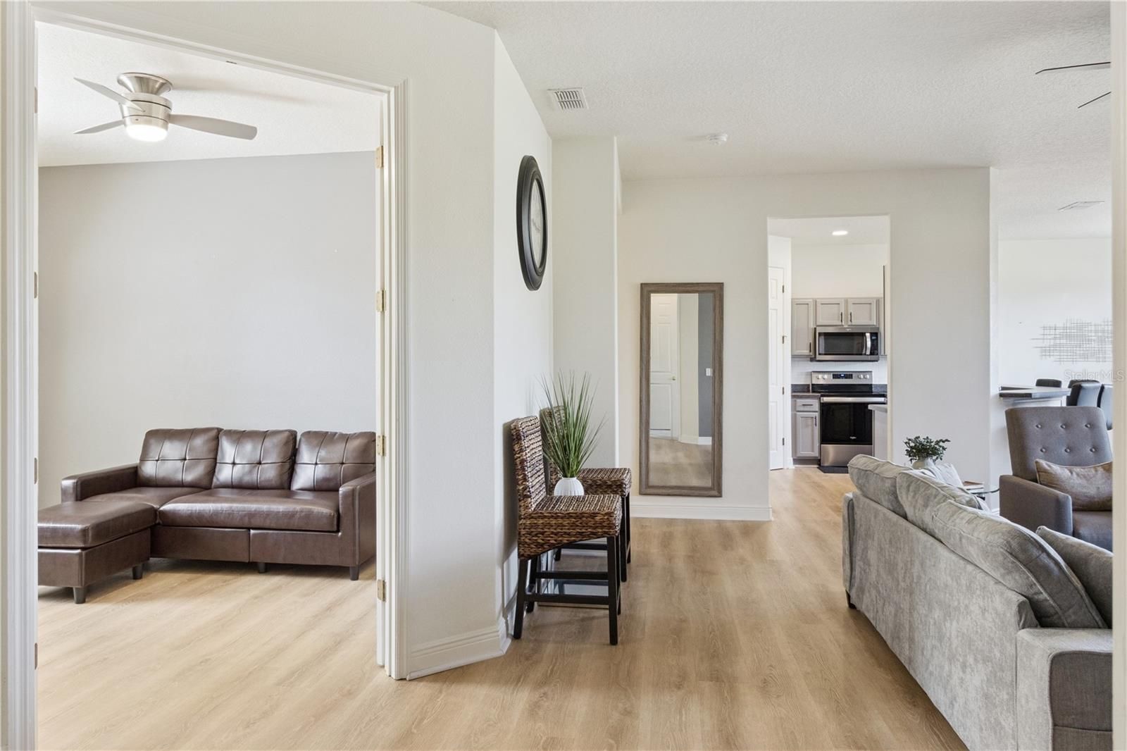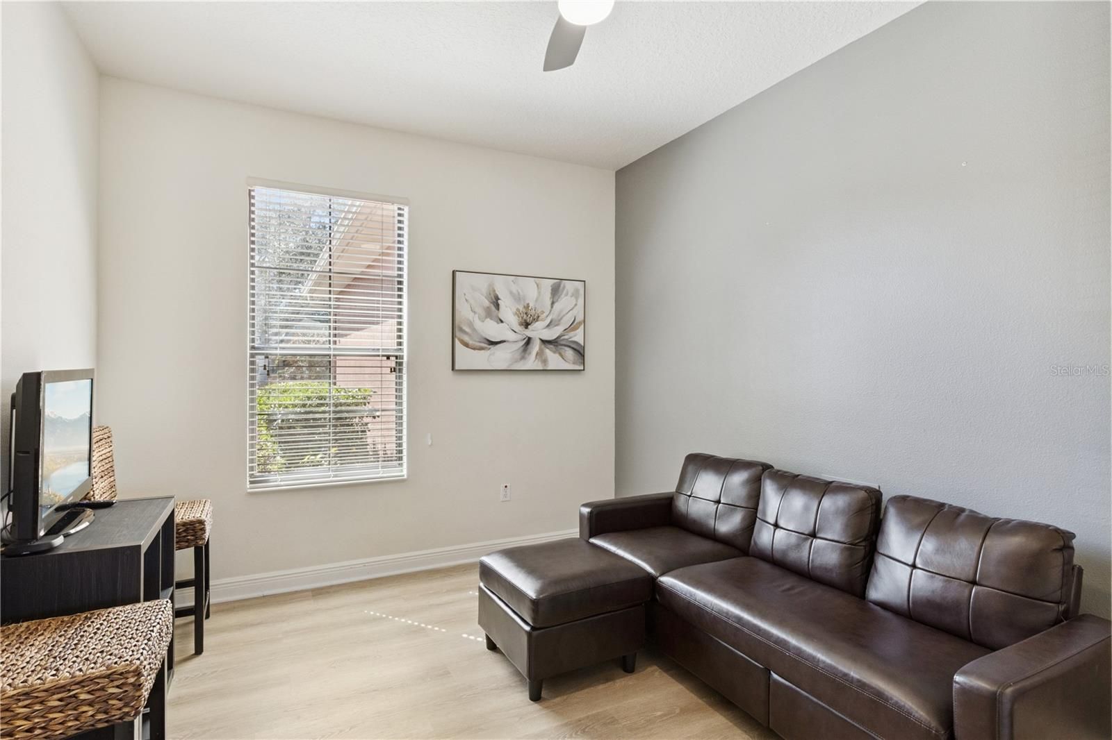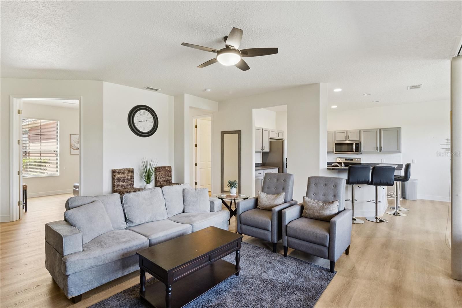 Welcome to the stunning, master-planned 55+ community of Solivita—where resort-style living meets the comfort of home. This impeccably maintained, furnished 2-bedroom, 2-bath residence with a versatile den offers 1,548 square feet of thoughtfully designed living space, perfect for both full-time residence or a seasonal retreat. From the moment you enter, you'll be greeted by the home’s warm ambiance and tasteful finishes, creating an atmosphere of casual elegance. The open-concept floor plan flows seamlessly, offering a harmonious blend of functionality and style. At the heart of the home is a spacious great room that effortlessly connects to the dining area and a well-appointed kitchen—ideal for both quiet evenings and lively gatherings. The kitchen features modern stainless steel appliances, abundant cabinetry, and a convenient breakfast bar, combining style and practicality for everyday living and entertaining. The private primary suite is a serene retreat tucked away from the main living areas. It offers a generous walk-in closet and a beautifully designed en-suite bath with a spacious step-in shower. A second bedroom is perfectly situated for guests, with easy access to a full bath. The flexible den provides endless possibilities—ideal as a reading nook, home office, or creative studio. Additional features include a full laundry room and an attached garage, enhancing everyday convenience. Step outside to enjoy your screened-in, covered porch—perfect for morning coffee, outdoor dining, or peaceful evenings. The beautifully landscaped and fenced backyard offers both privacy and charm, extending your living space outdoors. This low-maintenance home allows you to spend more time enjoying everything Solivita has to offer. Set within 4,300 acres of lush, landscaped grounds, Solivita is one of Central Florida’s premier gated communities for active adults. A 24-hour manned entrance offers controlled access for added privacy, while an expansive collection of amenities caters to every interest. Residents enjoy indoor and outdoor heated pools, state-of-the-art fitness centers, and walking and biking trails. Golf enthusiasts will love the award-winning Stonegate Golf Club, which features two championship 18-hole courses. Sports lovers can also take advantage of tennis courts, pickleball, bocce ball, shuffleboard, and softball fields. Beyond recreation, Solivita is a vibrant social hub, offering over 200 clubs and interest groups ranging from art and photography to gardening and dance. On-site restaurants, a neighborhood marketplace, and regular farmers markets keep daily conveniences within easy reach, while concerts, seasonal festivals, and community events foster lasting friendships and connections. Ideally located just a short drive from Orlando’s world-class attractions, dining, and medical facilities, this home offers a rare blend of comfort, charm, and resort-style living—all within the gates of Solivita. This is more than just a home. It’s a lifestyle.