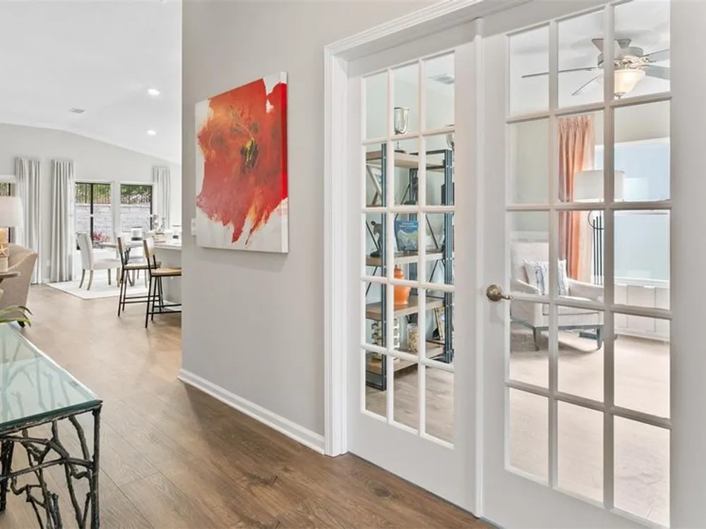 MOVE-IN READY! For a limited time only, buyers receive 1st Year of HOA fees paid, see sales agent for details!!! Where every day feels like a Retreat!! This beautifully crafted ranch-style home offers the perfect blend of style and convenience, featuring a tiled Flex room with French doors, warm gray ceramic plank tile floors, elegant crown molding, quartz countertops, vanity height cabinets in bathrooms w/undermounted sinks and quartz counters, an open gathering room ideal for entertaining or relaxing and more! The inviting rear patio extends your living space outdoors. Perfect for morning coffee or evening get togethers. The community is gated for your peace of mind, with lawn mowing included so you can enjoy a truly low-maintenance lifestyle. First class amenities await you, including Zero entry pool, pickleball courts, bocce ball, pet park and welcoming spaces to connect with neighbors and friends!