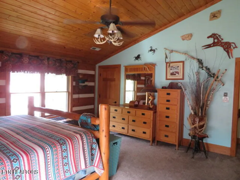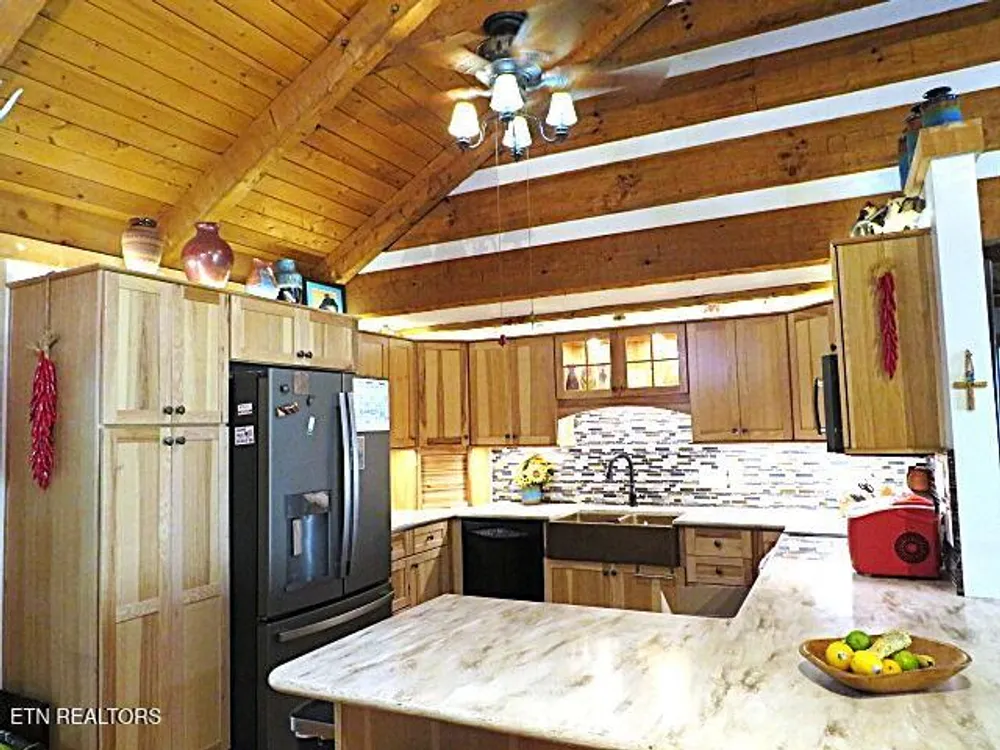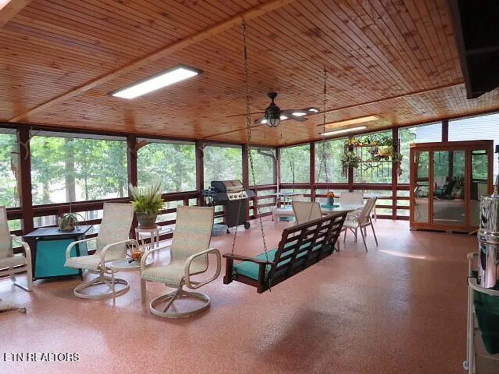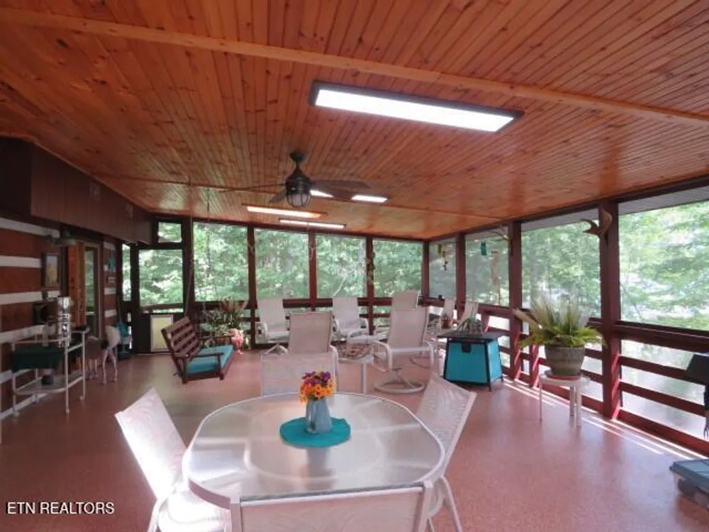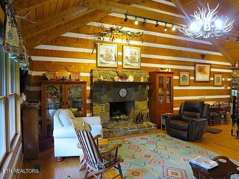 This beautiful Heritage Log Home has been well cared for and loved by its previous owners. The entire outside of the home has been freshly stained - a quaint rock garden recently added to the front yard. Inside, you will find a spectacular 760 sq ft screened porch with brand new flooring and new knotty pine ceiling. The kitchen was completely redesigned with custom hickory cabinetry and a gorgeous hammered copper sink. The three bathrooms were all renovated and updated as well. This home is like a cozy cabin with a rustic log cathedral ceiling in the main gathering room which also features stone gas fireplace. With three bedrooms and an office, it offers plenty of space. The custom built elevator (large enough for wheelchair and caregiver and a furbaby!) goes from the finished basement, where you will find another woodburning stone fireplace, all the way to the third floor expansive master suite with ensuite including double sinks and a new walk in shower. There is a newly added man cave in the lower level the size of a single garage. The space is amazing and the lower level could easily be self contained. A must see to appreciate all it has to offer, not to mention all of the amenites of living in Tellico Village!