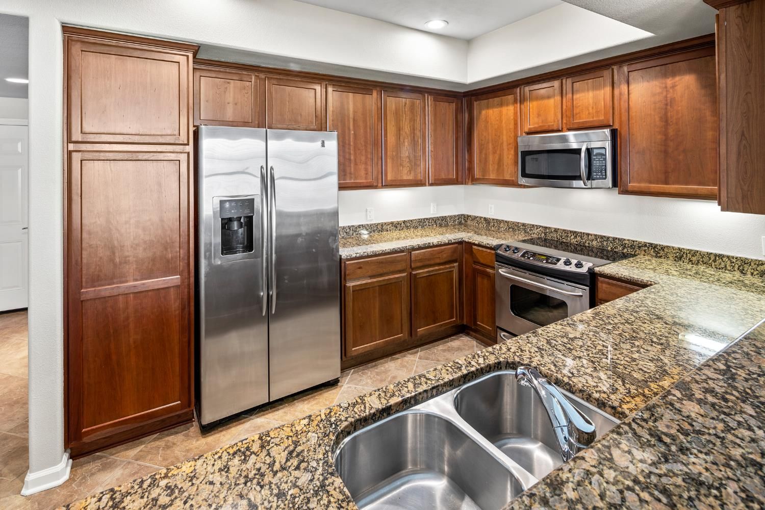- Free-Standing Gas Range, Free-Standing Refrigerator, Dishwasher, Disposal, Microwave, Plumbed For Ice Maker, Self Cleaning Oven, Electric Cooktop