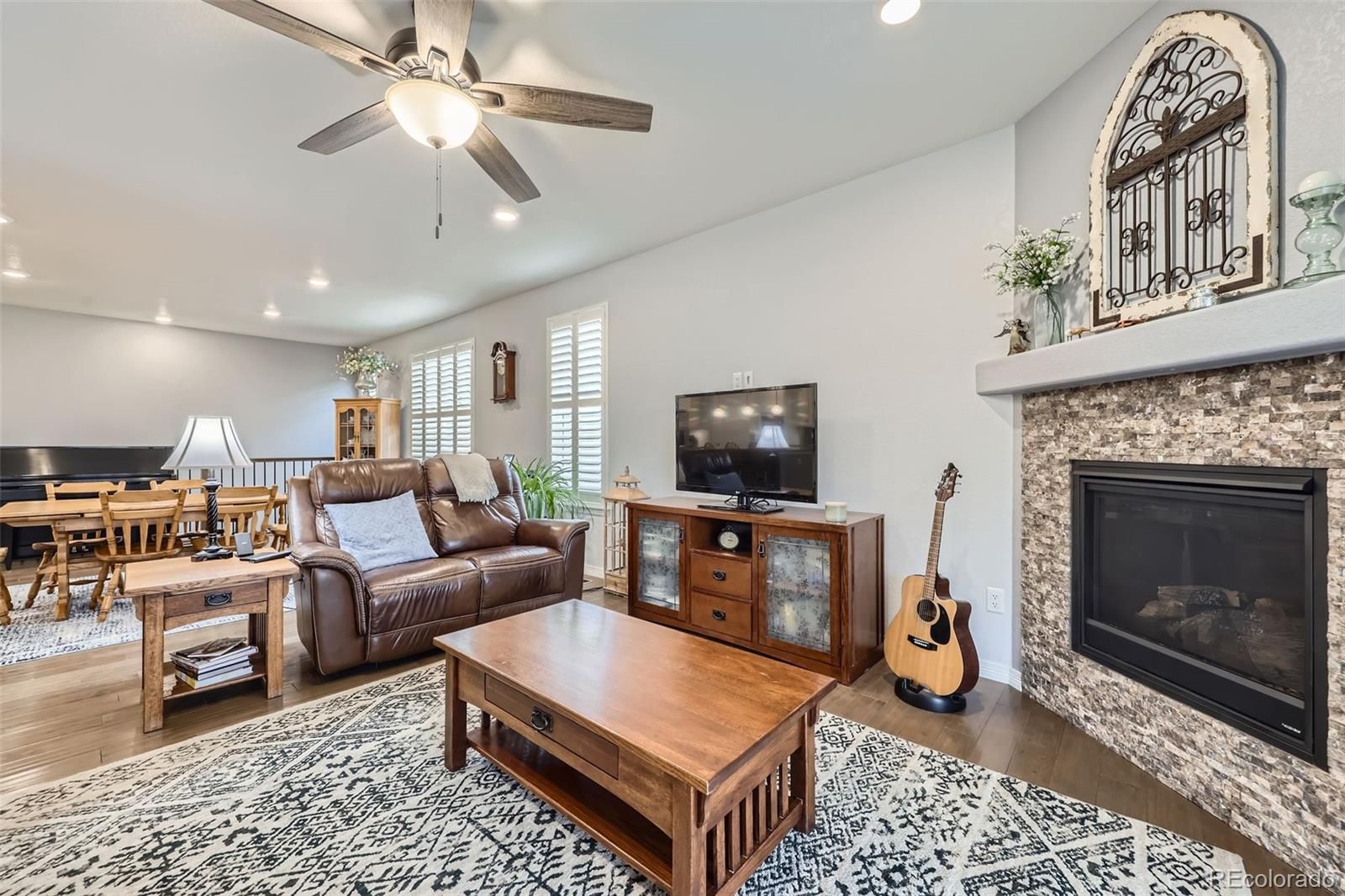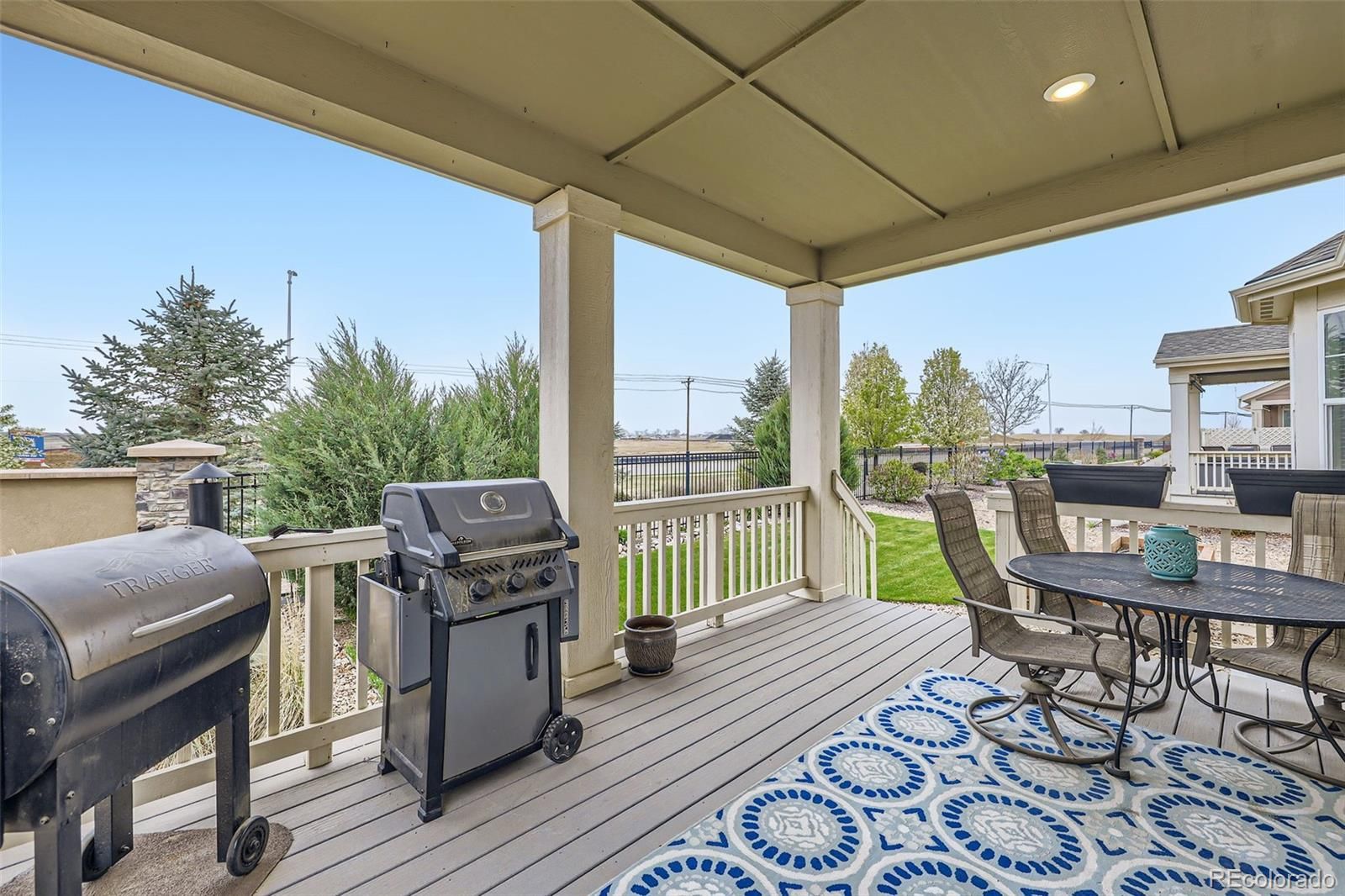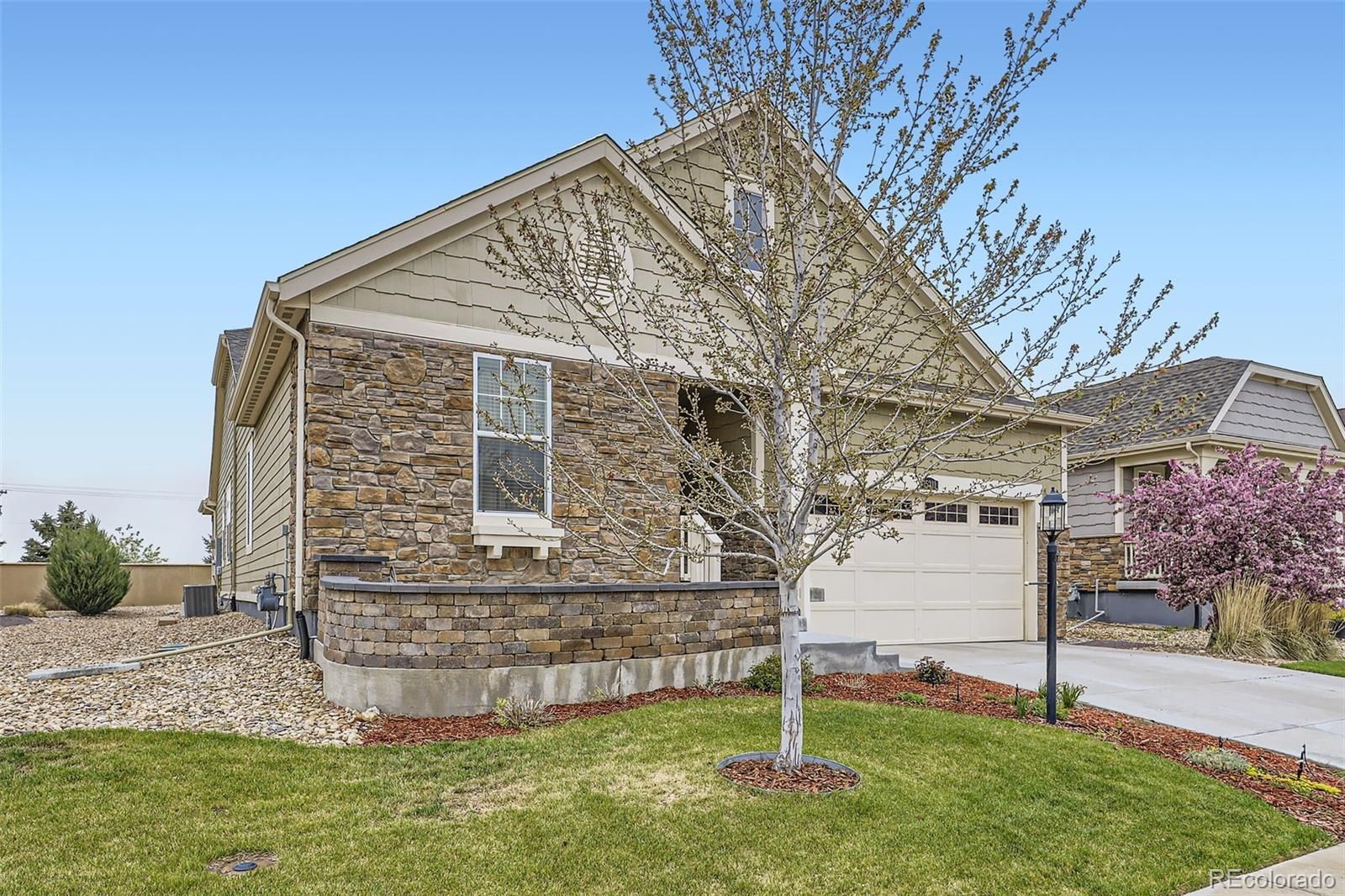 Welcome home! This beautiful 3 bedroom plus den and 3 bathroom ranch home is located in the Heritage Todd Creek 55+ community. This active adult community offers resort style living with many activities and an award winning 18-hole golf course set on 700 acres with a 33,000 square foot clubhouse. You will enjoy golfing, the pool, fitness center, trails and a wonderful restaurant, without leaving your neighborhood! This home has been meticulously maintained and is sure to please. The gleaming hardwood floors, granite countertops and large kitchen island are some of this homes beautiful features. This home is open, inviting and bright. You will love the cozy corner fireplace to relax by, on those cold winter nights. In the summertime you will be sure to enjoy the covered back patio and the beautifully, professionally landscaped yard with 2 raised garden beds with irrigation. The front porch was a custom addition to enjoy, with no neighbors directly in front of you with a view of hole 16 on the golf course! The primary bedroom is spacious with coffered ceilings and a large primary bathroom with a step in shower and walk in closet. The home has beautiful custom plantation shutters throughout. The large basement has great potential for you to create another living space! This home is centrally located with easy access to E470, I25, HWY 85 and HWY 7. You will love the close proximity to many stores and restaurants for convenience. Tour the clubhouse at 8455 Heritage Drive, to see all of the provided amenities!