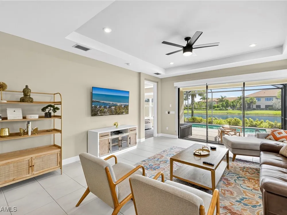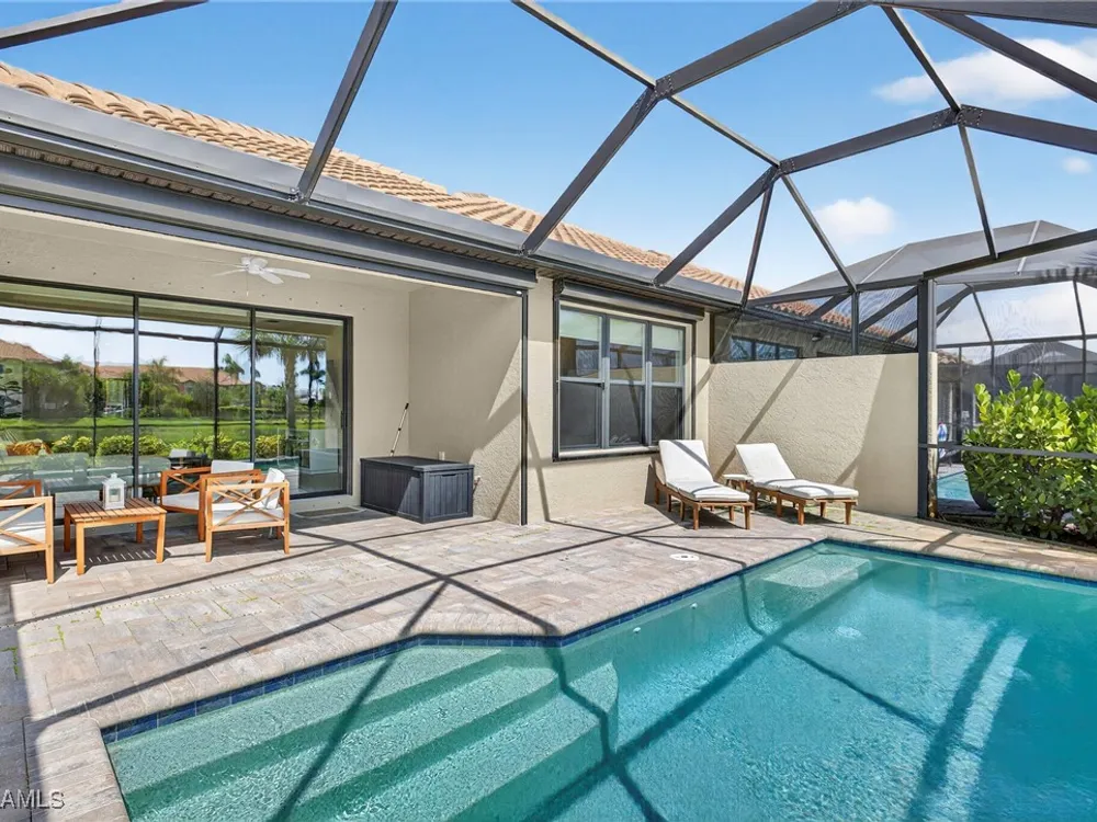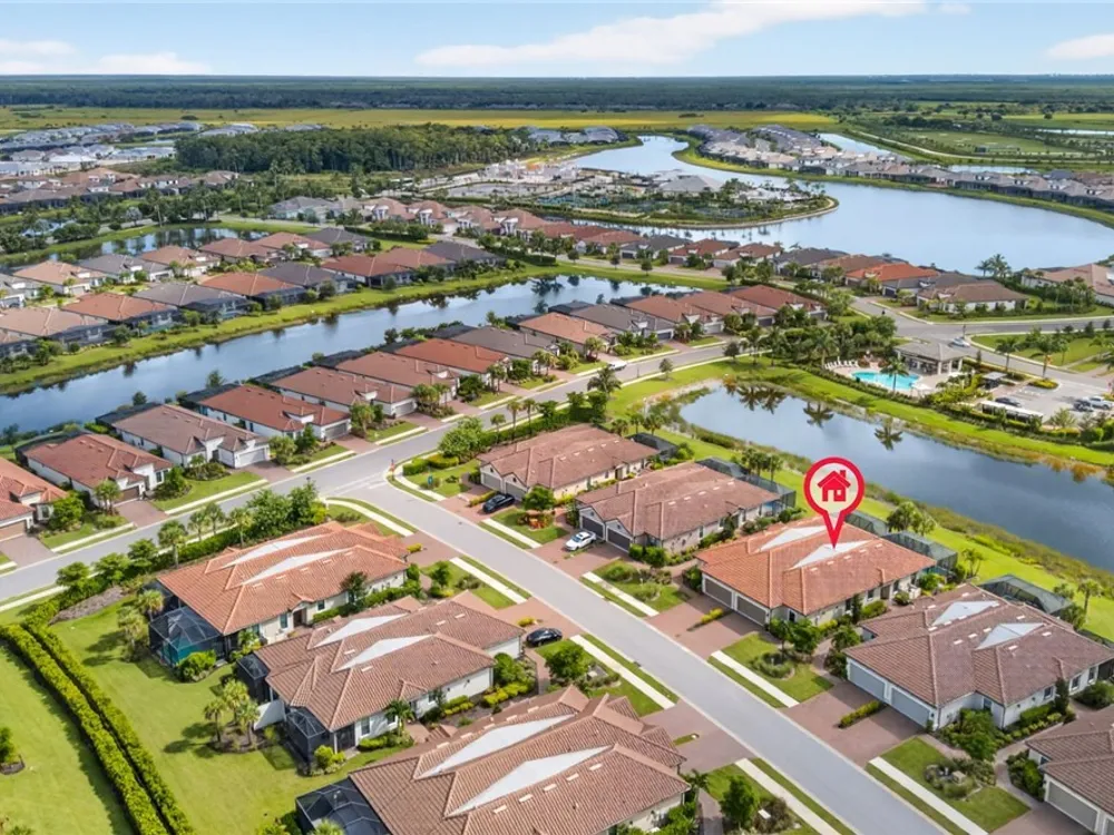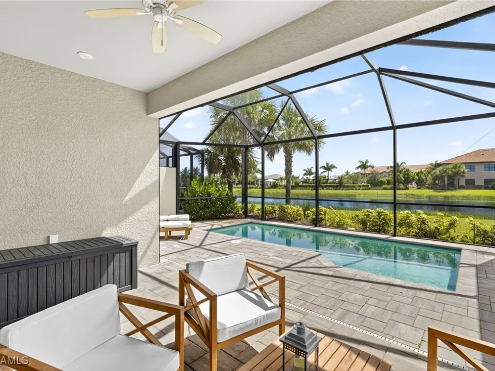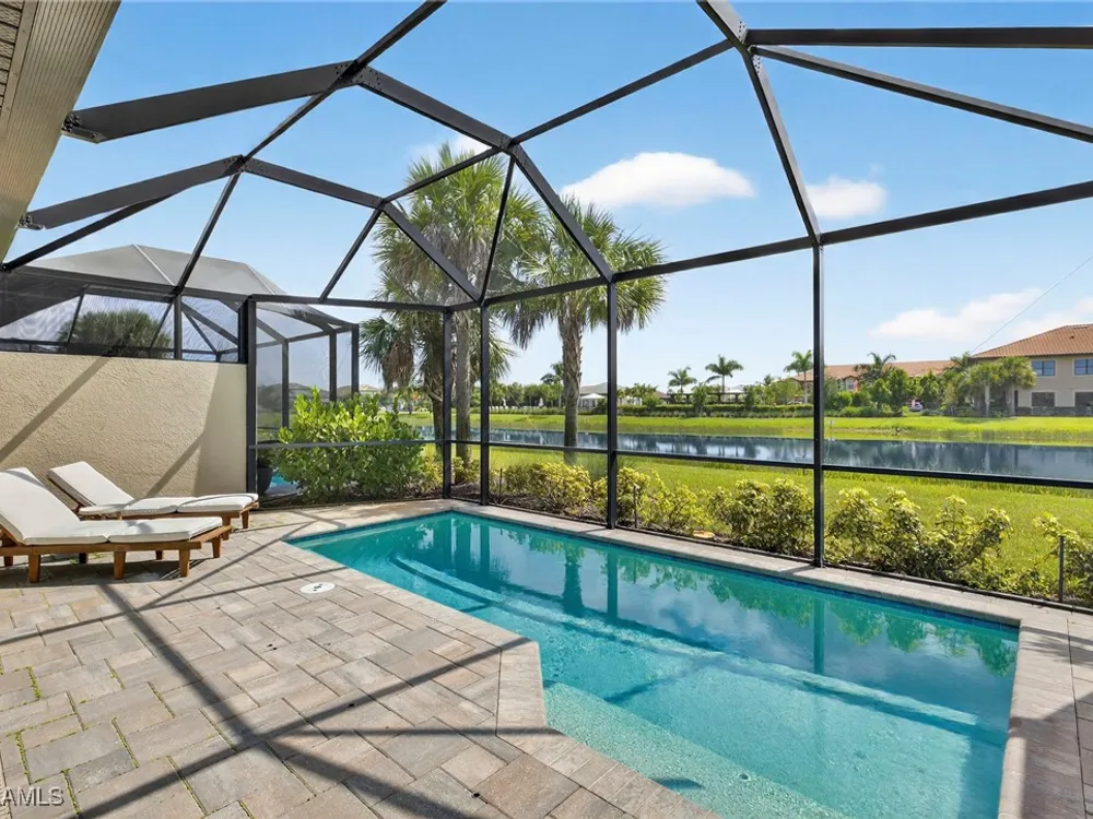 Why wait for a New Build when you can buy immediately? This 3 Bedroom Plus Den Turnkey Furnished villa with a heated Pool and 2 car garage is available now! Look no further, this Villa is absolutely beautiful and perfectly put together! Upgrades Galore! Electric Hurricane Shutters, High End Roller shades throughout, Quartz Counter tops, High End Cabinets, Added Cabinets in Laundry room, Upgraded light fixtures and ceiling fans, Upgraded appliance package, Tray ceilings in Family room and Primary Bedroom, Additional landscaping installed, Pre-plumbed for Outdoor kitchen. Move right in! Just bring your toothbrush! Incredible location within the community. Literally across the lake from the satellite pool. Short bike ride to the amenity campus where you will find the Resort Style Pool, Bahama Bar, State of the Art Fitness Center, Toasted Cafe, along with a State of the Art Spa! Meanwhile, the Culinary Center is on its way with 5 Star Dining along with a casual Italian Bistro! Esplanade by the Islands is located 20 minutes from Marco Island and 20-30 minutes to 5th Ave. and Naples Beaches! If you are an avid Boater, San Marco Marina is only 15 minutes away. If you are an avid Golfer, Lely Country Club with 2 public courses is only 5 minutes away. Incredible Villa! Incredible Community!