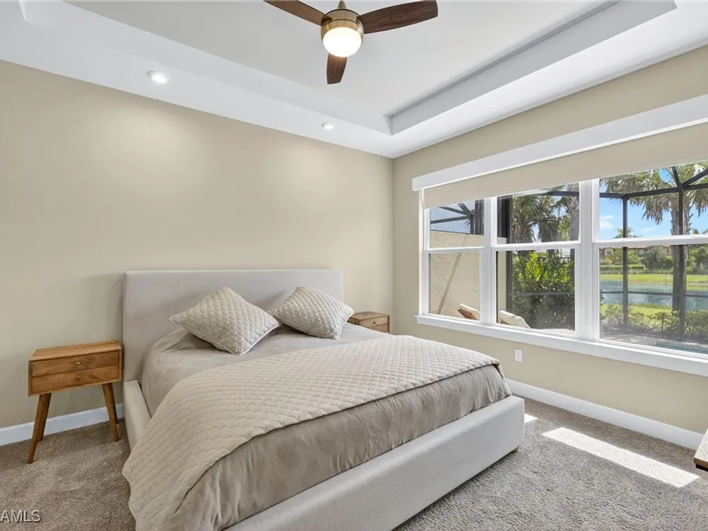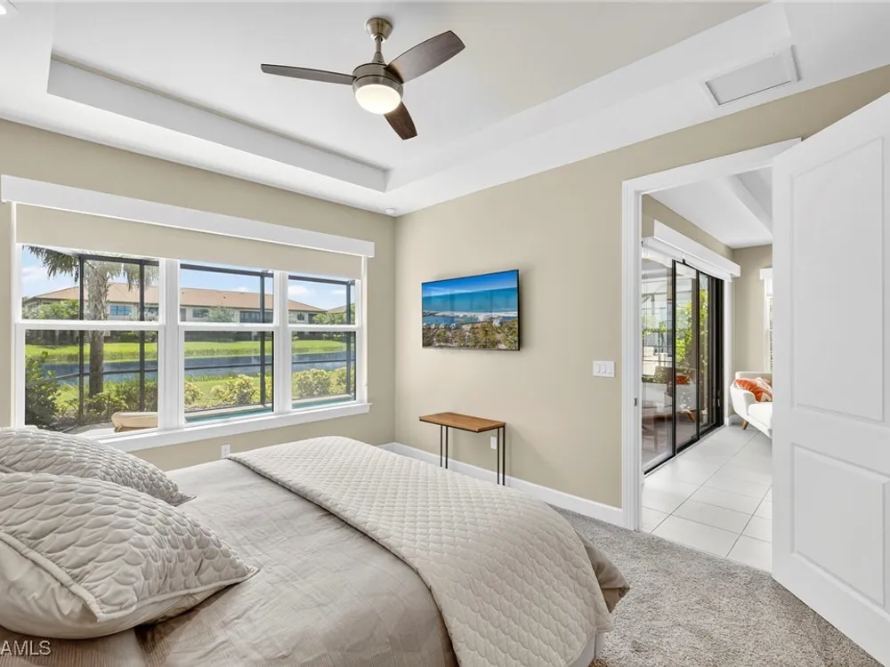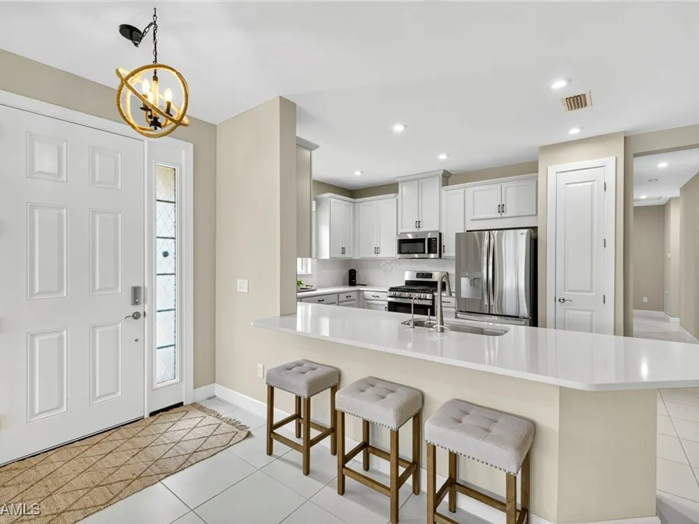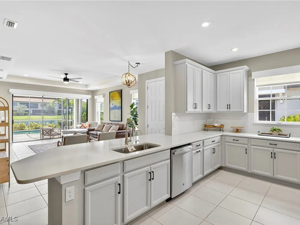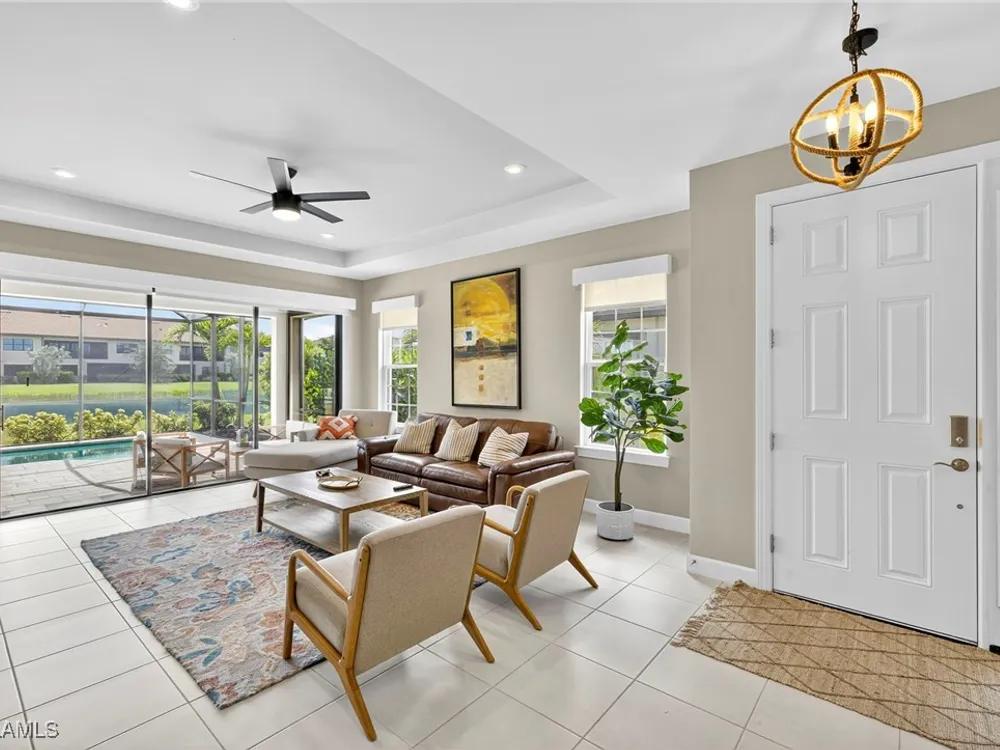Why wait for a New Build when you can buy immediately? This 3 Bedroom Plus Den Turnkey Furnished villa with a heated Pool and 2 car garage is available now! Look no further, this Villa is absolutely beautiful and perfectly put together! Upgrades Galore! Electric Hurricane Shutters, High End Roller shades throughout, Quartz Counter tops, High End Cabinets, Added Cabinets in Laundry room, Upgraded light fixtures and ceiling fans, Upgraded appliance package, Tray ceilings in Family room and Primary Bedroom, Additional landscaping installed, Pre-plumbed for Outdoor kitchen. Move right in! Just bring your toothbrush! Incredible location within the community. Literally across the lake from the satellite pool. Short bike ride to the amenity campus where you will find the Resort Style Pool, Bahama Bar, State of the Art Fitness Center, Toasted Cafe, along with a State of the Art Spa! Meanwhile, the Culinary Center is on its way with 5 Star Dining along with a casual Italian Bistro! Esplanade by the Islands is located 20 minutes from Marco Island and 20-30 minutes to 5th Ave. and Naples Beaches! If you are an avid Boater, San Marco Marina is only 15 minutes away. If you are an avid Golfer, Lely Country Club with 2 public courses is only 5 minutes away. Incredible Villa! Incredible Community!