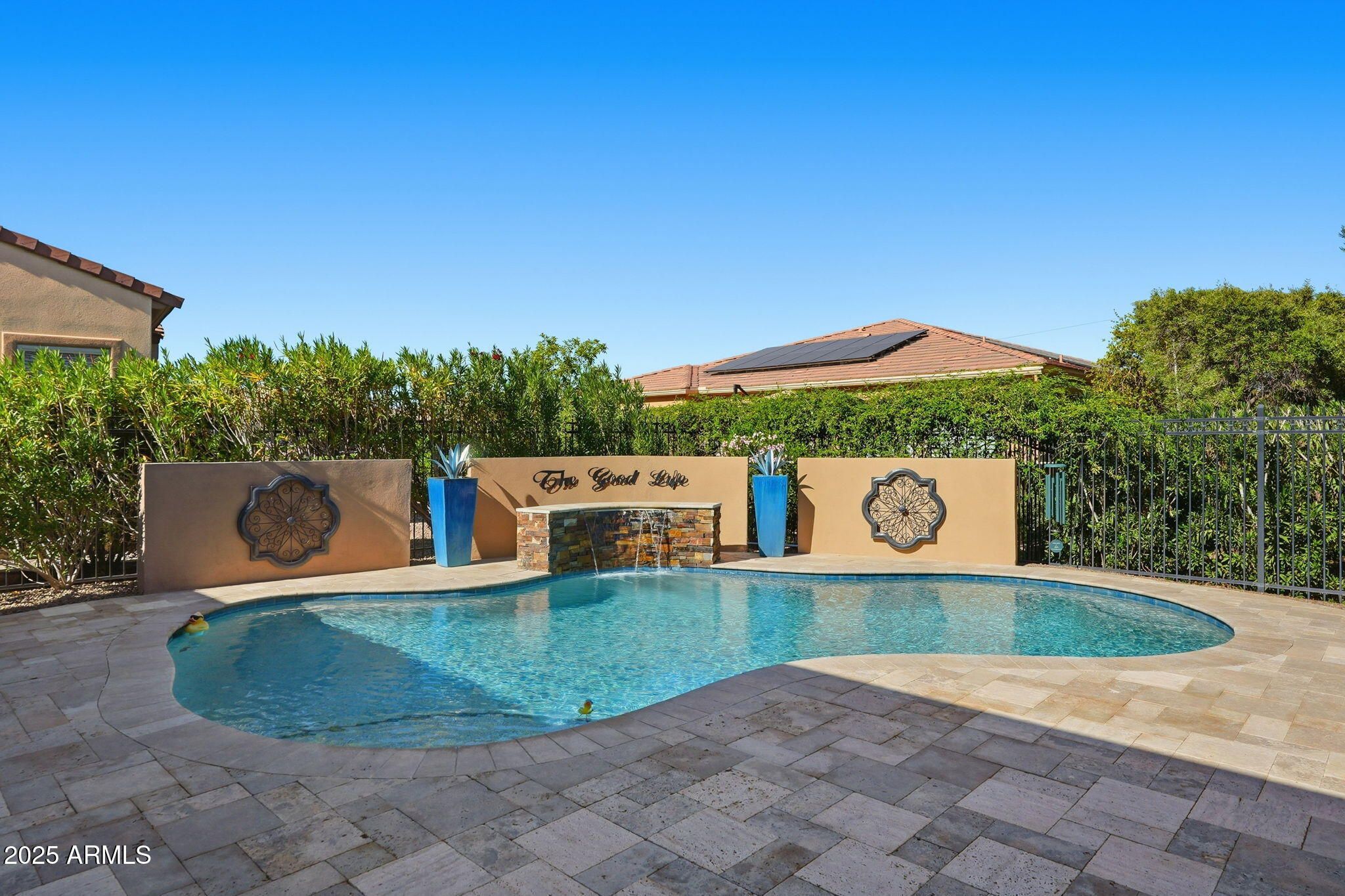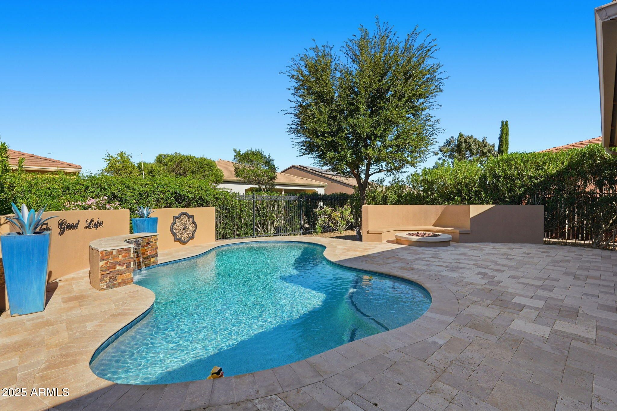 Welcome home to the updated, light and bright St Tropez model on an oversized 6800+ sq ft lot with your own private pool resort back yard! Gorgeous updated kitchen, newer appliances, quartz countertops, updated lighting, newer paint! Relax and enjoy your beautiful pool, covered patio and more! Oversized 4' extension garage for plenty of room for storage or golf cart! Encanterra, East Valley's premier private golf community in Queen Creek, with multiple pools, restaurants, golf, pickleball and more!