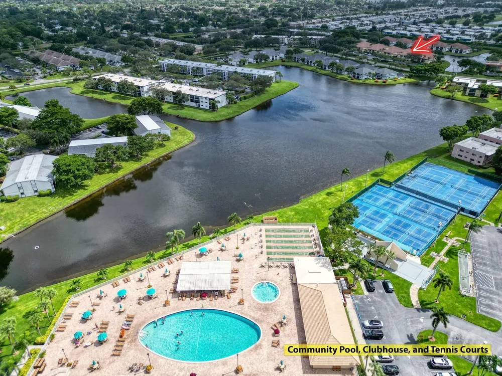 Bright, spacious, 2BR-2BA, 1st flr condo in the much-sought-after Lakes of Delray! 1,150 SF split bedroom layout. Lg eat-in-kitchen w/lots of cabinets, countertops & sizable pantry. Enclosed lanai w/lakeview. Lg laundry/storage rm w/washer & dryer!Enjoy a vibrant lifestyle w/access to 3 pools, XL hot tub, men's & women's saunas, pickleball, tennis, shuffleboard & basketball courts, & covered BBQ area. Active clubhouse w/card rooms, billiards, lg multipurpose rm w/kitchen, well-equipped fitness center, library, arts & crafts rm, conference rms & much more. With a variety of clubs, activities, shows, movies, dinner dances & holiday events, this 55+ community promises a perfect blend of comfort & entertainment. Minutes from Downtown, the beach, eateries, professional offices & shopping.