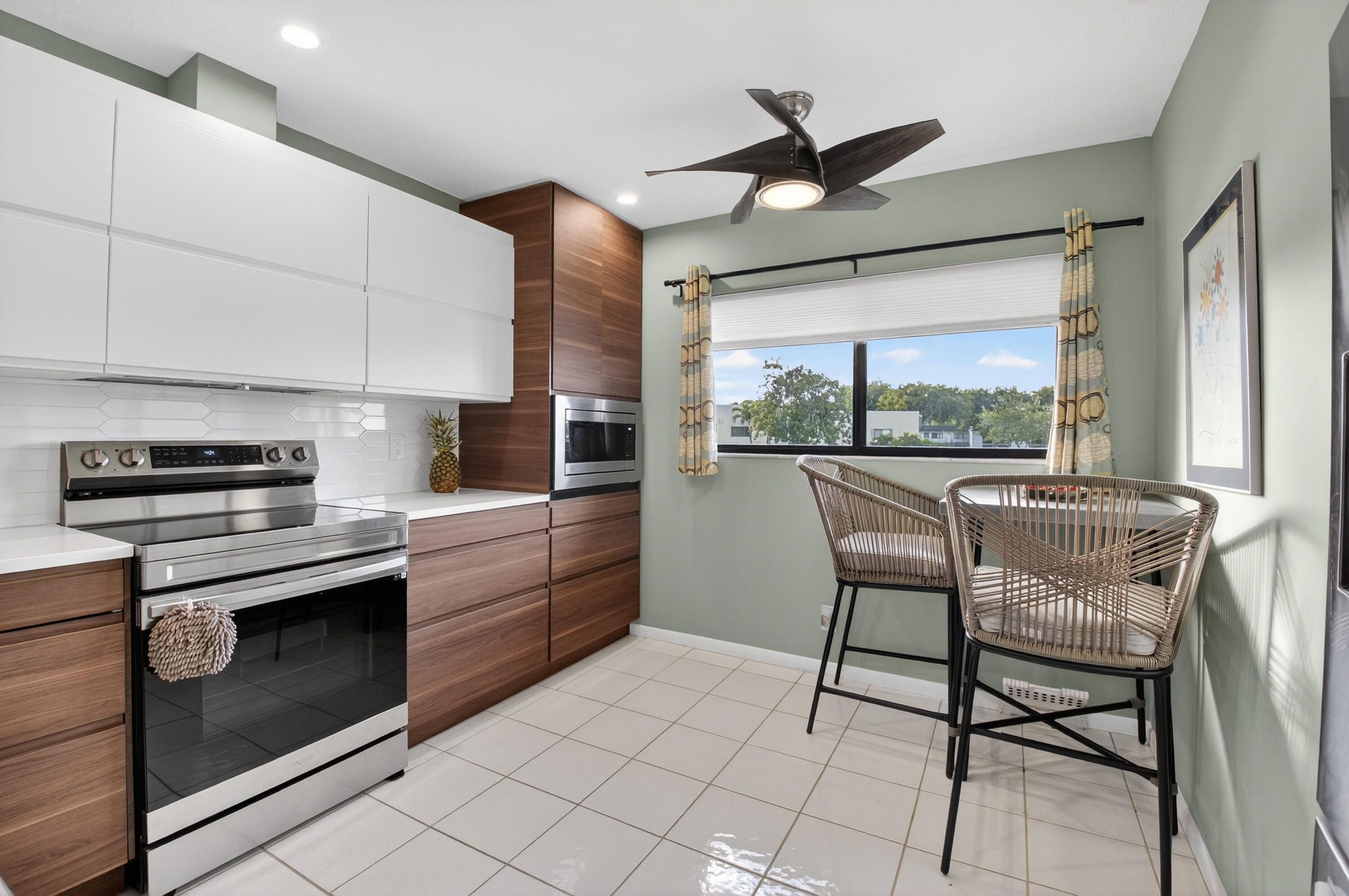 STUNNING TOTAL RENOVATION! THIS BEAUTIFUL CORNER 2 BEDROOM, 2 BATH IS SURROUNDED BY EXPANSIVE LAKE VIEWS. This LIGHT AND BRIGHT 2nd floor condo with VAULTED CEILINGS is located at the very end of this ELEVATOR BUILDING with views of light bouncing off the lake. This home showcases a gorgeous, fully renovated kitchen and beautiful bathrooms. Sliding glass doors open to a relaxing screened patio. There is a BONUS COMBINATION OFFICE / LAUNDRY ROOM, plus a closet added to the patio. Furniture is negotiable. Pembridge H has a worry-free new roof. Lakes of Delray is an Active Lifestyle 55+ Gated Community with 24 Hour Security. Enjoy resort-style living with weekly activities of many clubs, fitness center, tennis, pickleball, billiard room, swimming pools, scenic walking paths and much more. Complimentary bus service & minutes from downtown Delray's Atlantic Ave, Shopping, Restaurants, and Beautiful South Florida Beaches. Enjoy a Wonderful Lifestyle Community in South Florida! This condo is a must-see! You'll be glad you did!