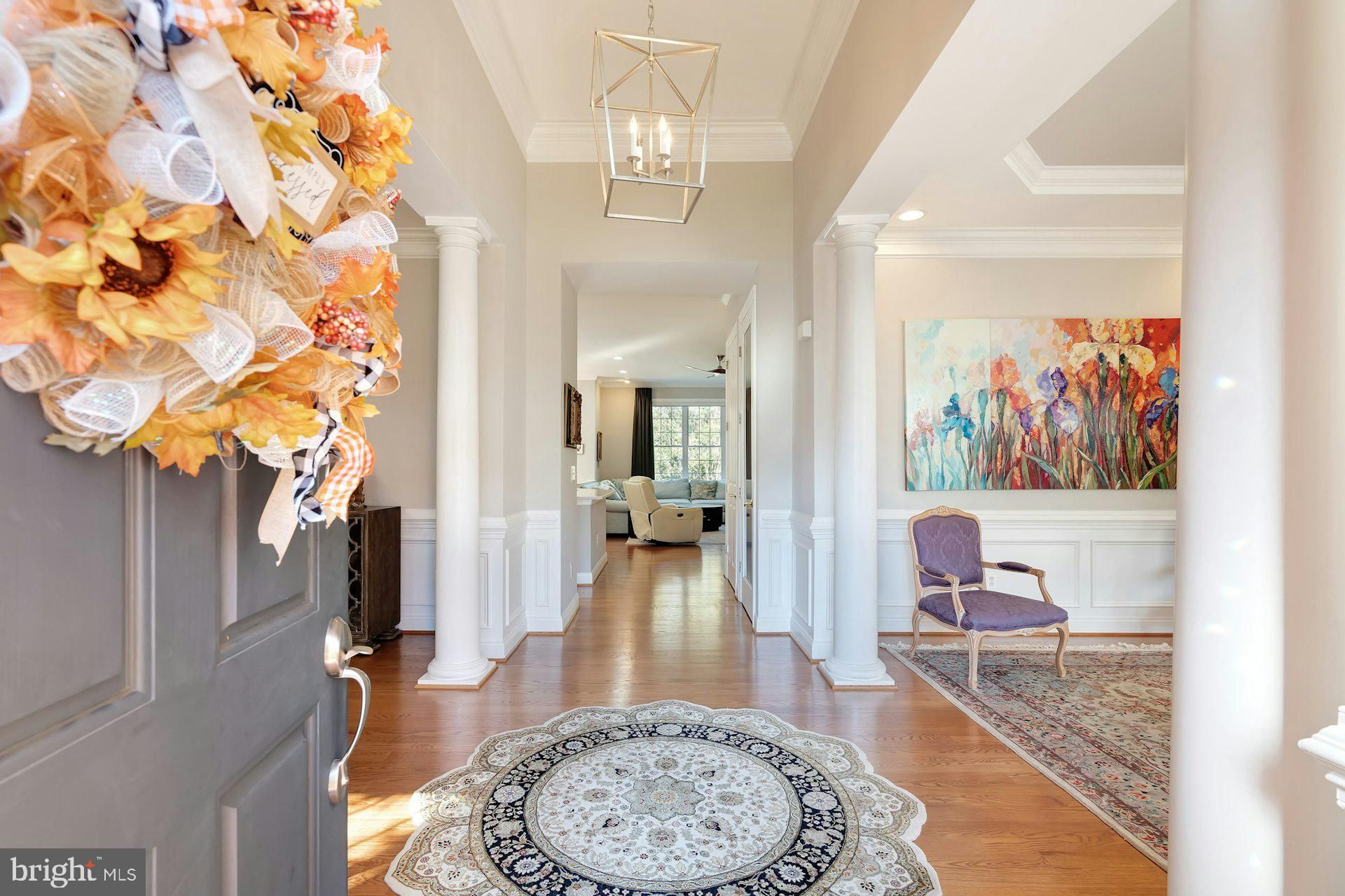 Stunning and meticulously maintained 3900 finished sq ft brick tradition home in the Award Winning Active Adult 55+ Gated Golf Course Community of Regency at Dominion Valley. Located on a cul-de- sac this custom home has touches throughout the main level, 10 ft ceilings, oak hardwood flooring, gourmet kitchen with double wall oven, cooktop, updated quartz kitchen countertop, formal living and dining room. Enjoy morning coffee on your screened in porch while listening to the sounds of nature. Primary bedroom has tray ceiling, custom walk in closet with luxury spa bath. The lower level is perfect for entertaining with a custom wet bar with wine cooler, theatre room, gas fireplace, murphy bed with storage, full bath, custom built cedar closet. The walk up basement leads to a patio in a park like setting. The two car garage has a pull down stair for lots of storage. Residents at the Regency have access to a wide range of amenities: an 18-hole golf course, indoor heated/outdoor swimming pools, tennis and pickle-ball courts, state of the art fitness center, walking/biking trails, and beautiful ponds. The Clubhouse is a hub of social activities, dining, and entertainment. Whether enjoying recreational pursuits or connecting with neighbors, every day is a holiday when you live at the Regency in Dominion Valley.
