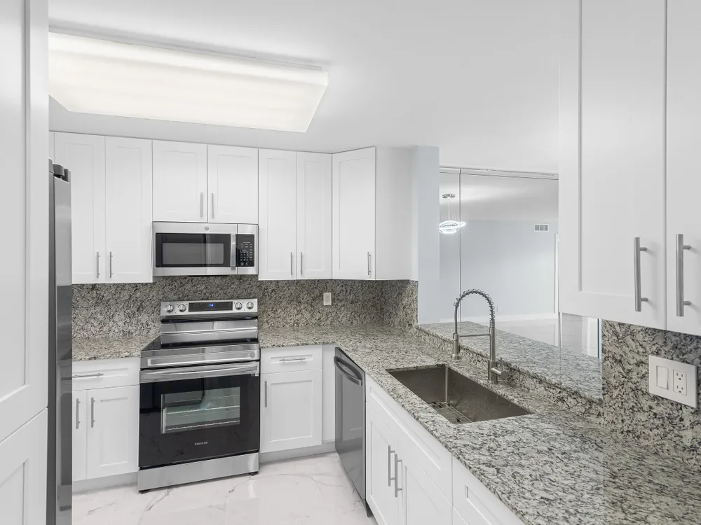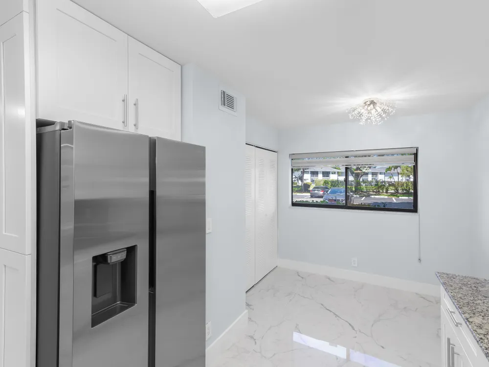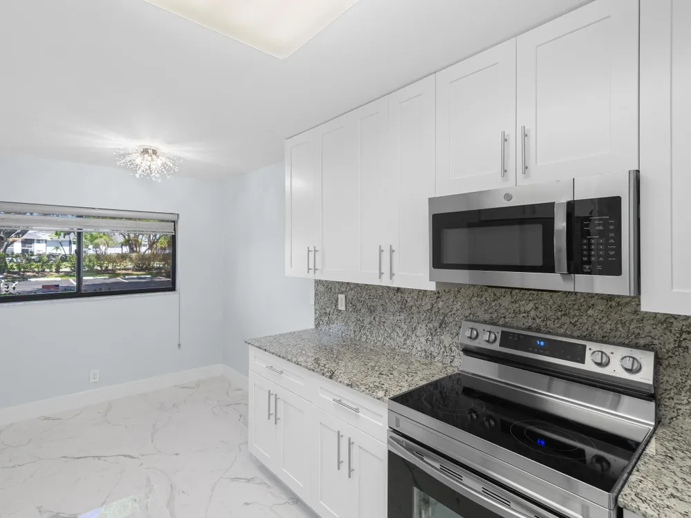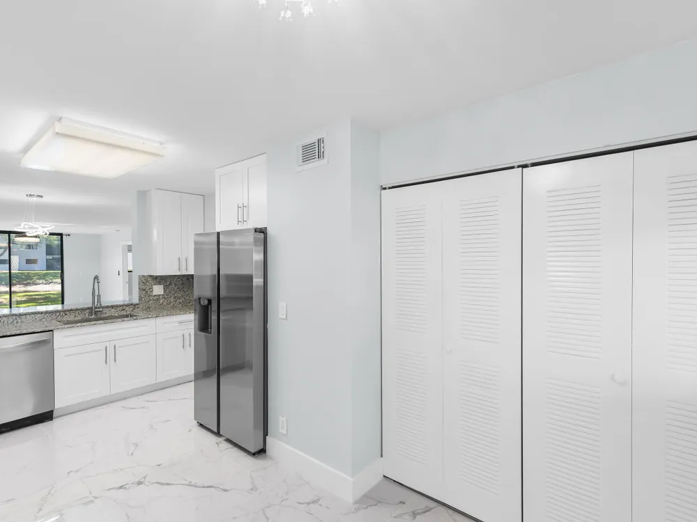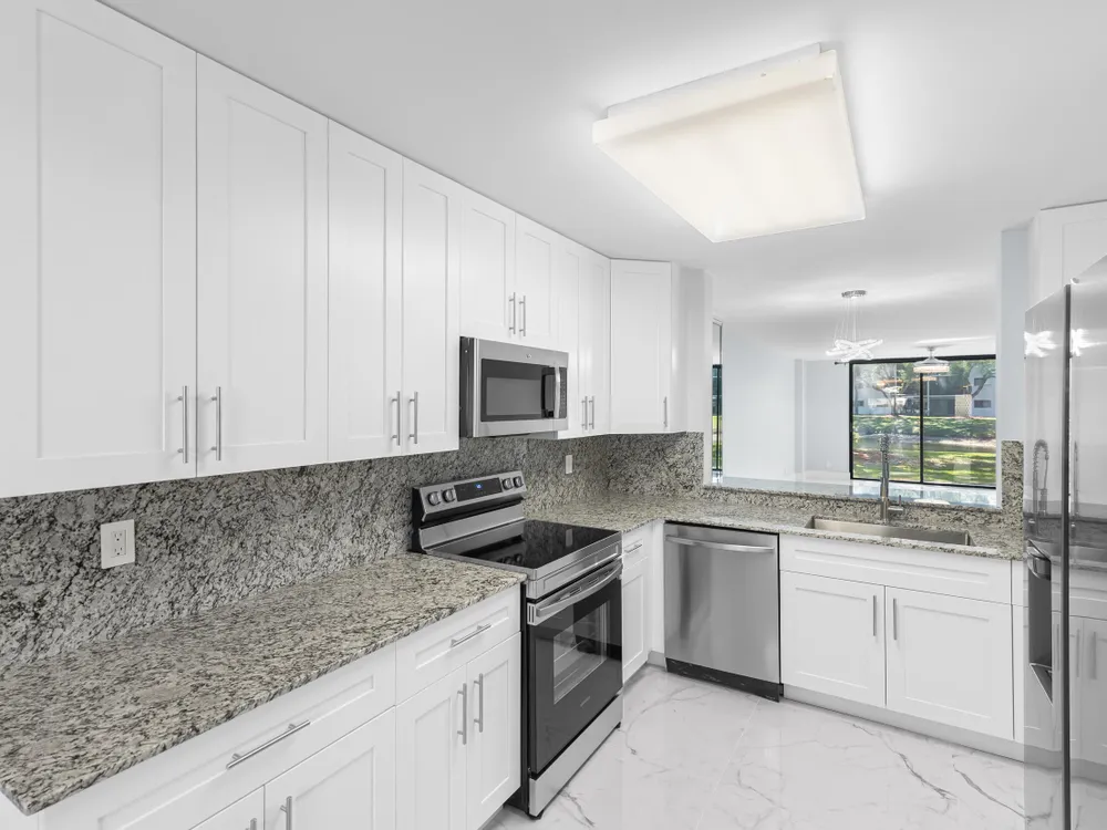 Stunning 2-Bed, 2-Bath Ground-Floor Condo - Lakes of Delray (55+ Community)! This absolutely gorgeous, fully renovated unit features the largest Water's Edge floor plan with breathtaking water views from the living room and master bedroom. Enjoy resort-style living just steps from the satellite pool--walk out your front door and jump right in! Conveniently located near the residential Sims Road entrance for easy access. Move-in ready with no assessments (all paid for brand-new roof), a passed structural milestone inspection, and fully funded reserves. The chef's kitchen boasts top-of-the-line stainless steel appliances, white shaker cabinets, granite countertops & backsplash, plus a large pantry with eat-in space, making it perfect for cooking and entertaining. The open-concept living and
