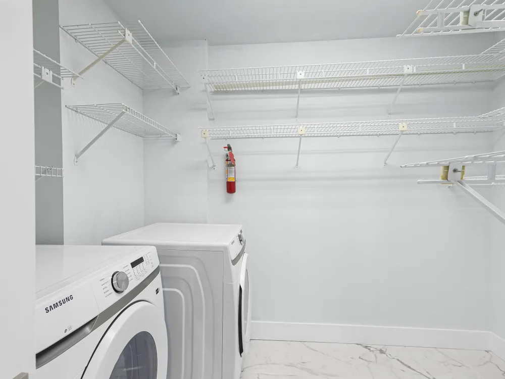- Dishwasher, Dryer, Microwave, Electric Range, Refrigerator, Washer, Electric Water Heater