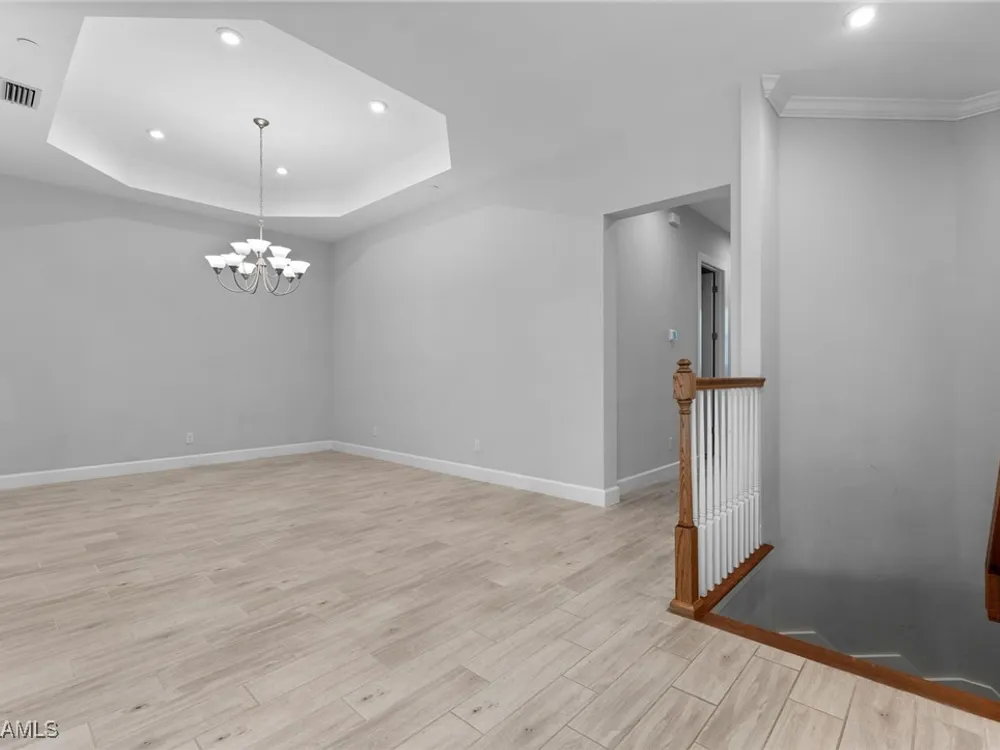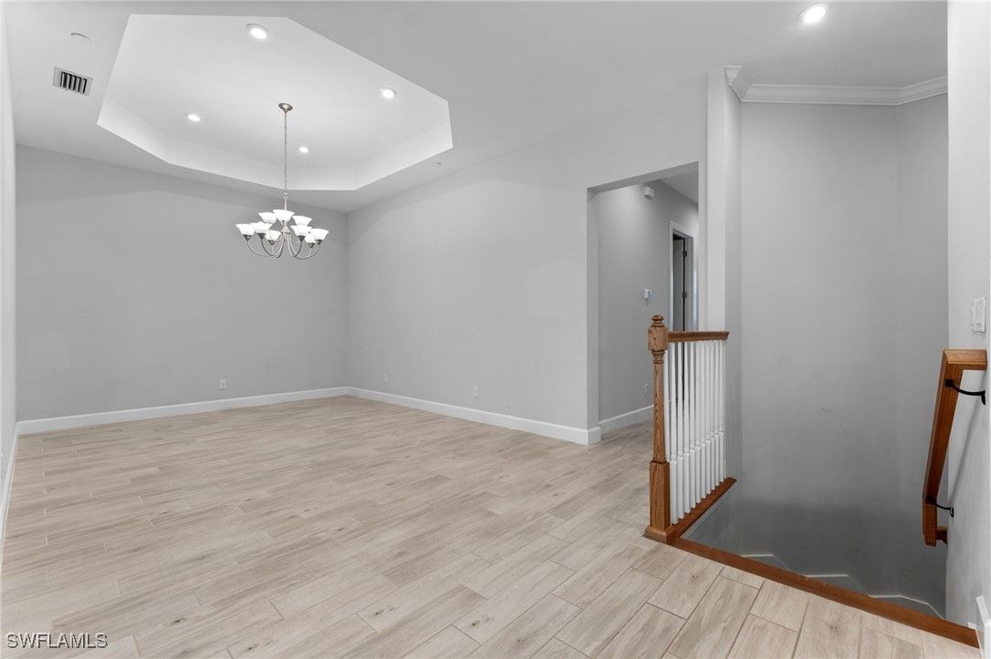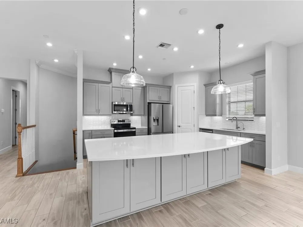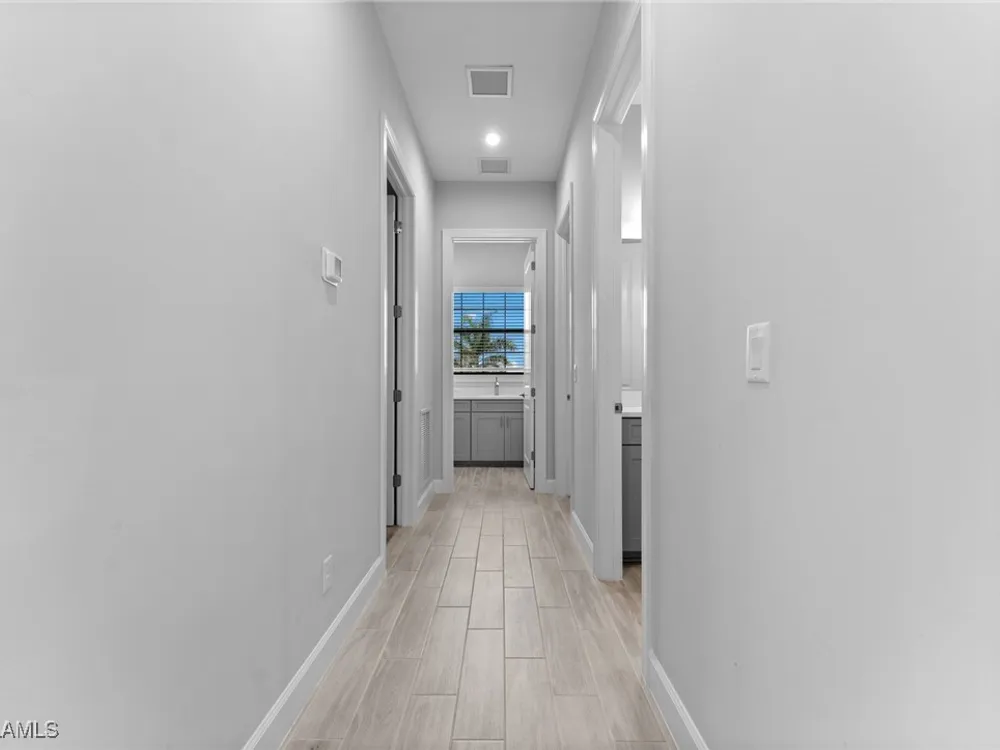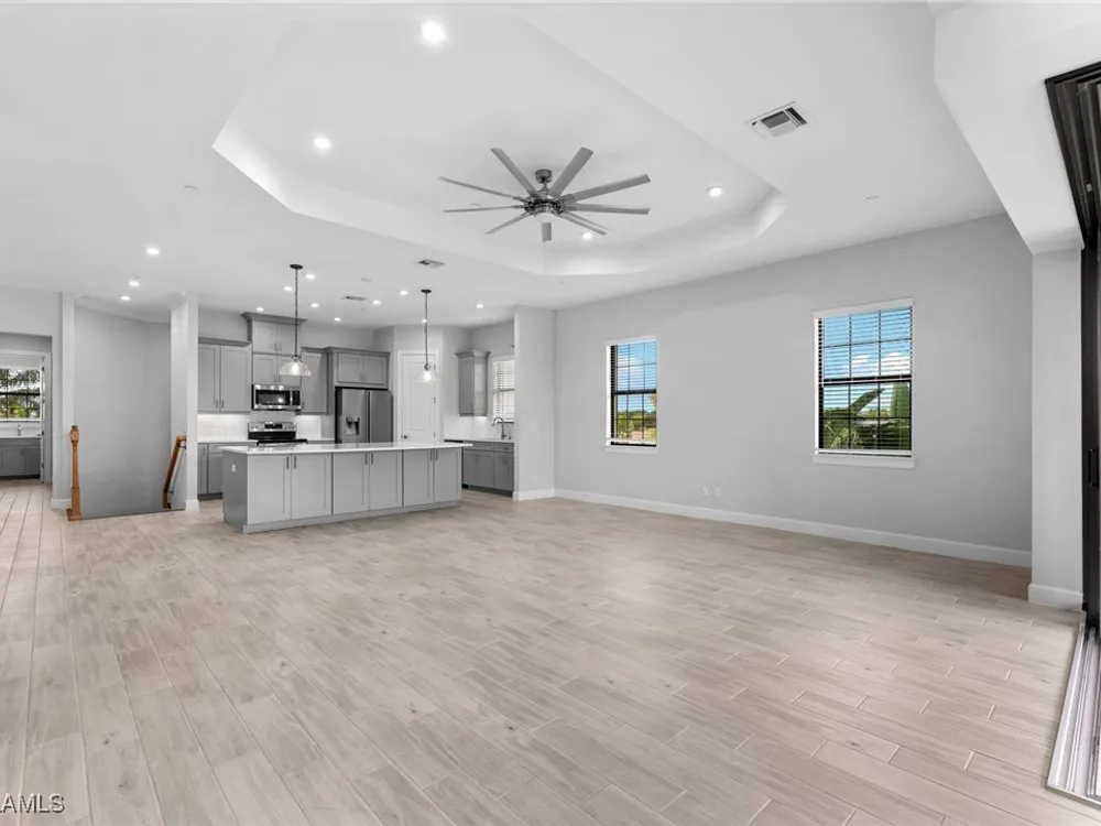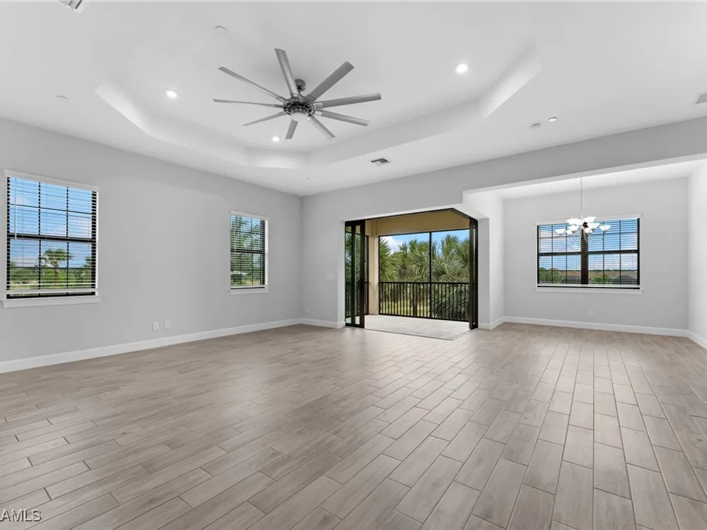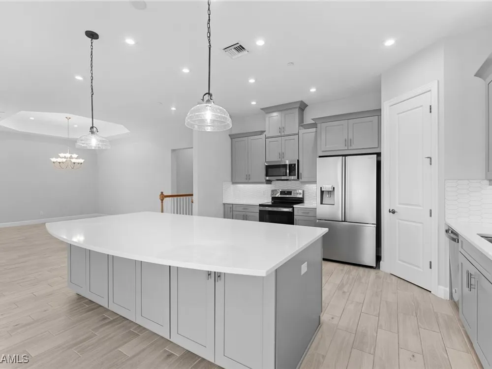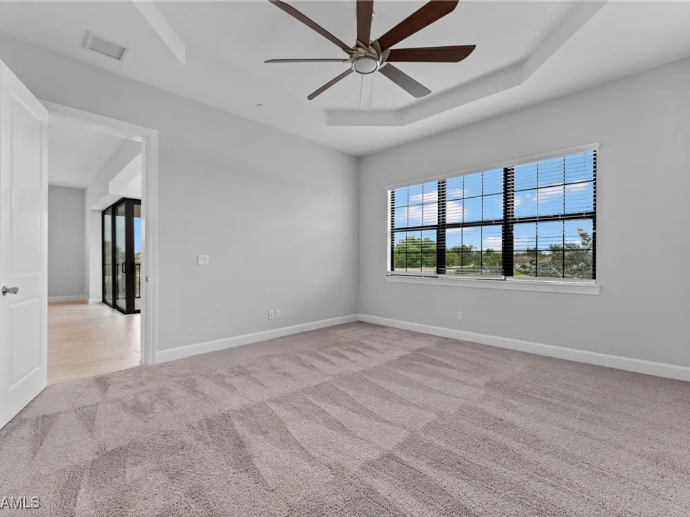 Bright and open end unit! Welcome to this newer construction Romano model by Taylor Morrison in Esplanade by the Islands. Spacious 2nd floor living with a large kitchen island overlooking the living room, featuring a gas fireplace, wood plank tile flooring and screened in private patio with water views. Three bedrooms plus a study and three full bathrooms give this coach home a large feel with over 2300 square feet. Outside enjoy your private driveway and 1 car attached garage. Esplanade by the Islands is a gated, amenity rich community offering a resort style pool, poolside bar/restaurant, an active tennis and pickle ball scene with multiple courts, spa/wellness center and a large fitness center. All within reach of Naples beautiful beaches, shopping and dining!