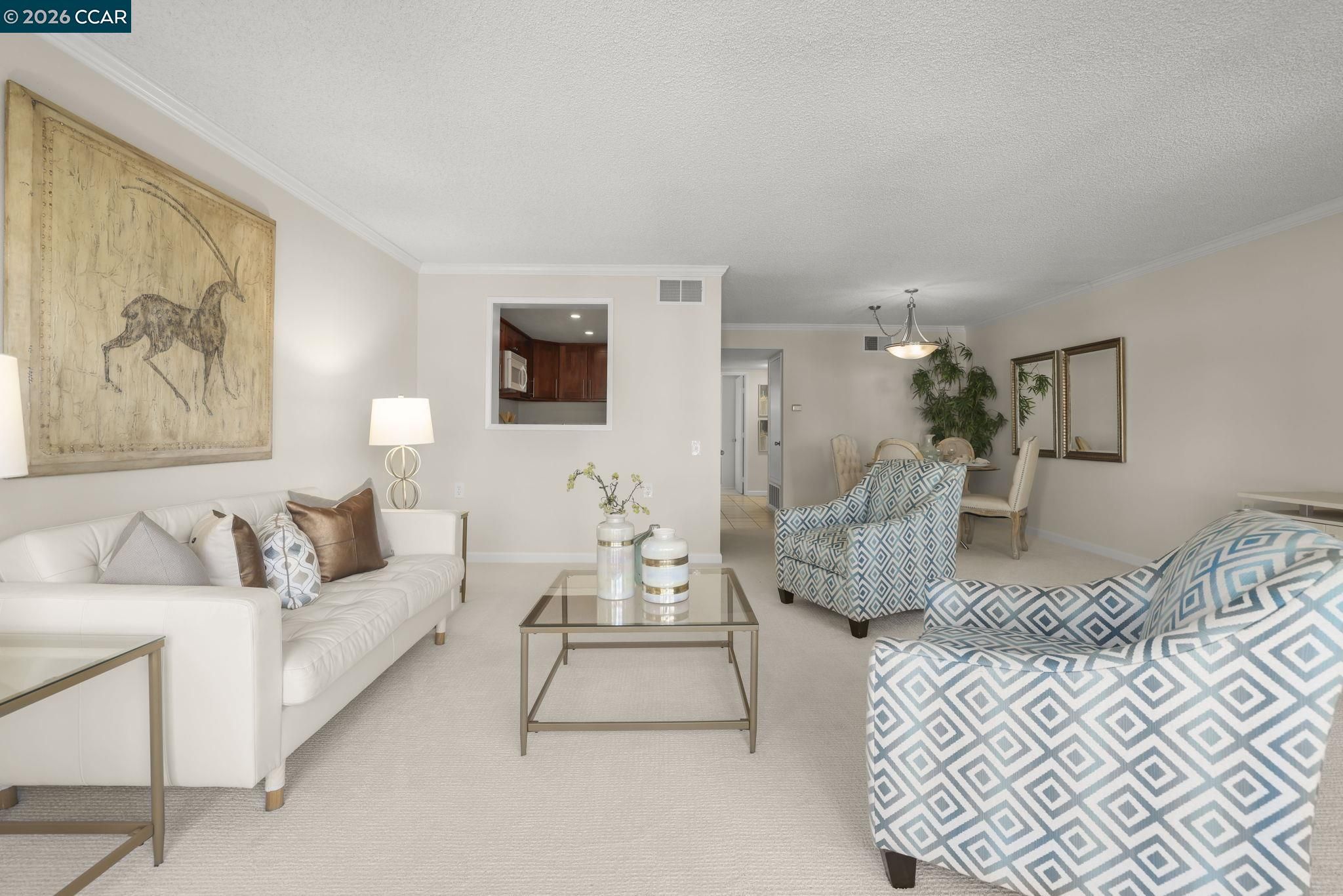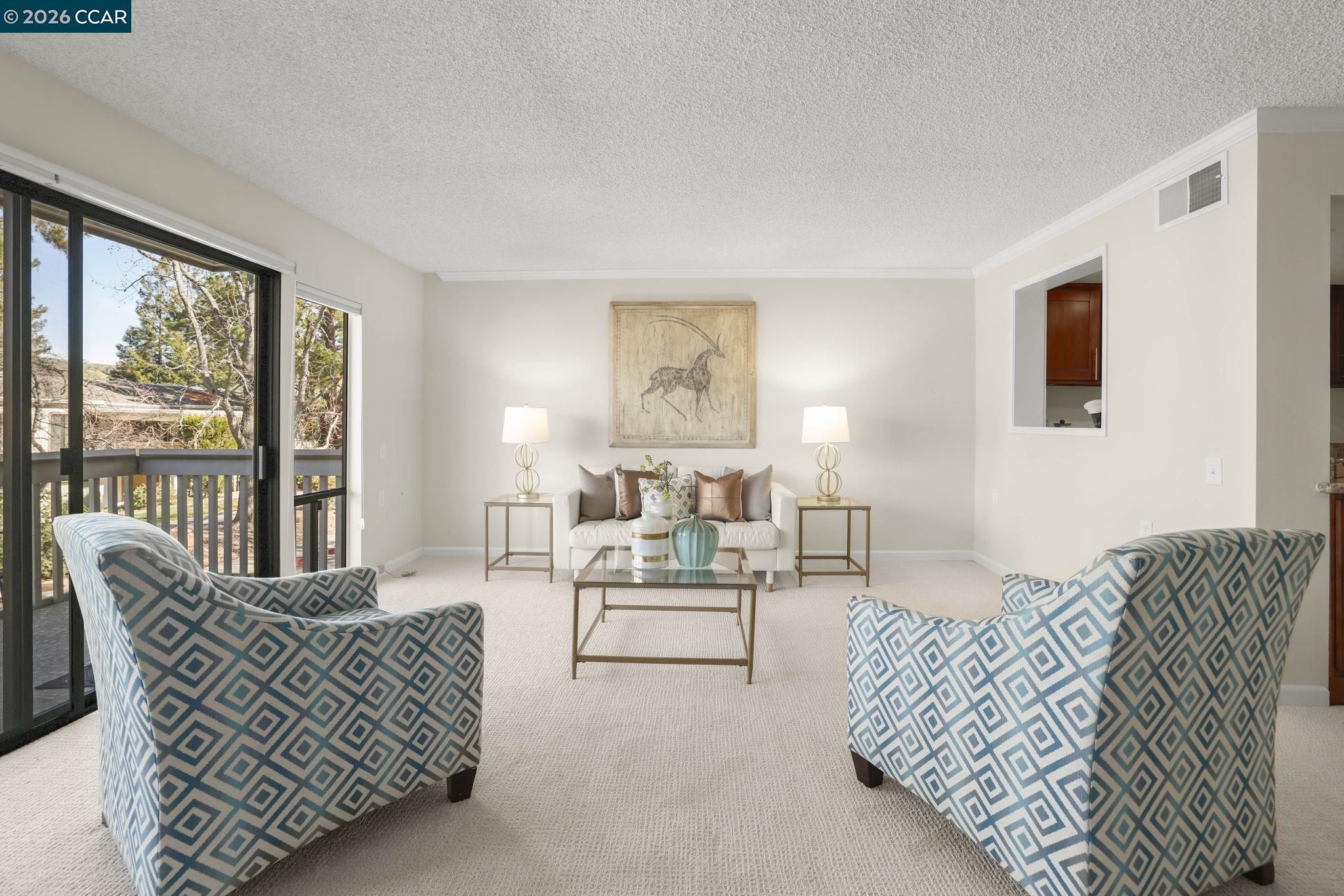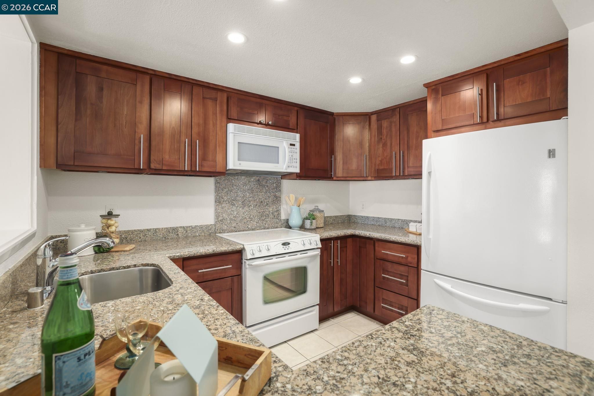 Desirable Piedmont townhouse in the award-winning Rossmoor 55+ community. This spacious end-unit offers over 1,700 square feet of living space with new carpet and fresh interior paint throughout. The updated kitchen features granite countertops, ample cabinetry, and functional workspace. Versatile floor plan includes a full bedroom and bathroom on the main level, ideal for guests or office use. The upper level offers an expansive primary suite with generous closet space and separation from the main living areas. Additional features include in-unit washer and dryer, close proximity to carport parking, and end-unit location providing added privacy and 3 skylights add loads of natural light. Enjoy all that Rossmoor has to offer including golf, swimming, fitness center, event center, clubhouses, dining, transportation, and extensive social and recreational activities. Carport 1213-1