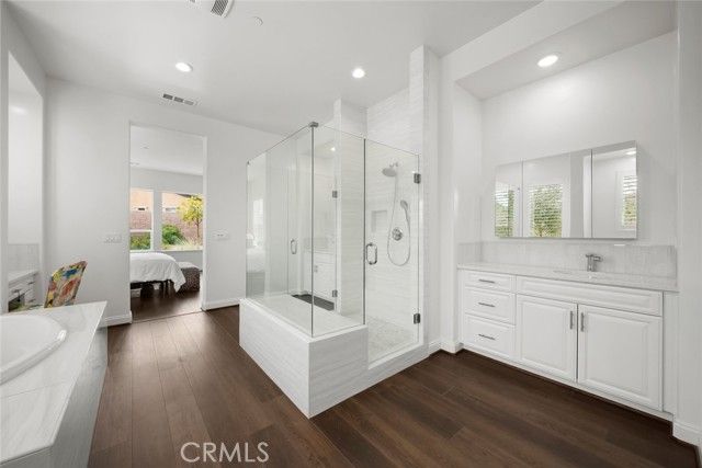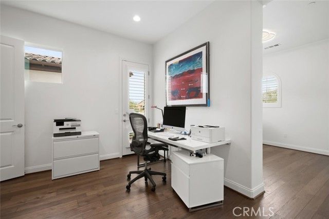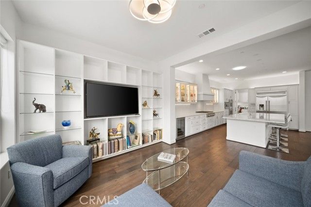 Sleek. Modern. Expansive. Welcome to the Carmel, one of the most highly-sought-after models, offering the space and luxury you deserve. Built in 2017, at 2991 sq. ft., this beautiful modern home features 3 bedrooms, 4 bathrooms, a sunroom and a Casita with private entrance. What makes this floor plan so popular is the flexibility of the main living spaces - a living room, family room and formal dining room surround the kitchen with infinite possibilities how the space is used. This particular Carmel has been highly customized with stunning engineered hardwood floors throughout, custom light fixtures, Plantation shutters (where needed) - the family room features a media/art display wall, the back patio has been completely enclosed to create a unique sunroom, and the entire property has been professionally designed with hardscape and landscaping to bring it to its full potential. Starting in the all-white kitchen of your dreams, you’ll love the top-of-the-line GE Monogram appliances including a built-in refrigerator, 6-burner gas cooktop and double wall ovens, beverage fridge, gorgeous white quartz countertops, raised panel white cabinets (many of the uppers are lighted with display glass), glossy glass tile backsplash, a large quartz island and a substantial walk-in pantry. Ente