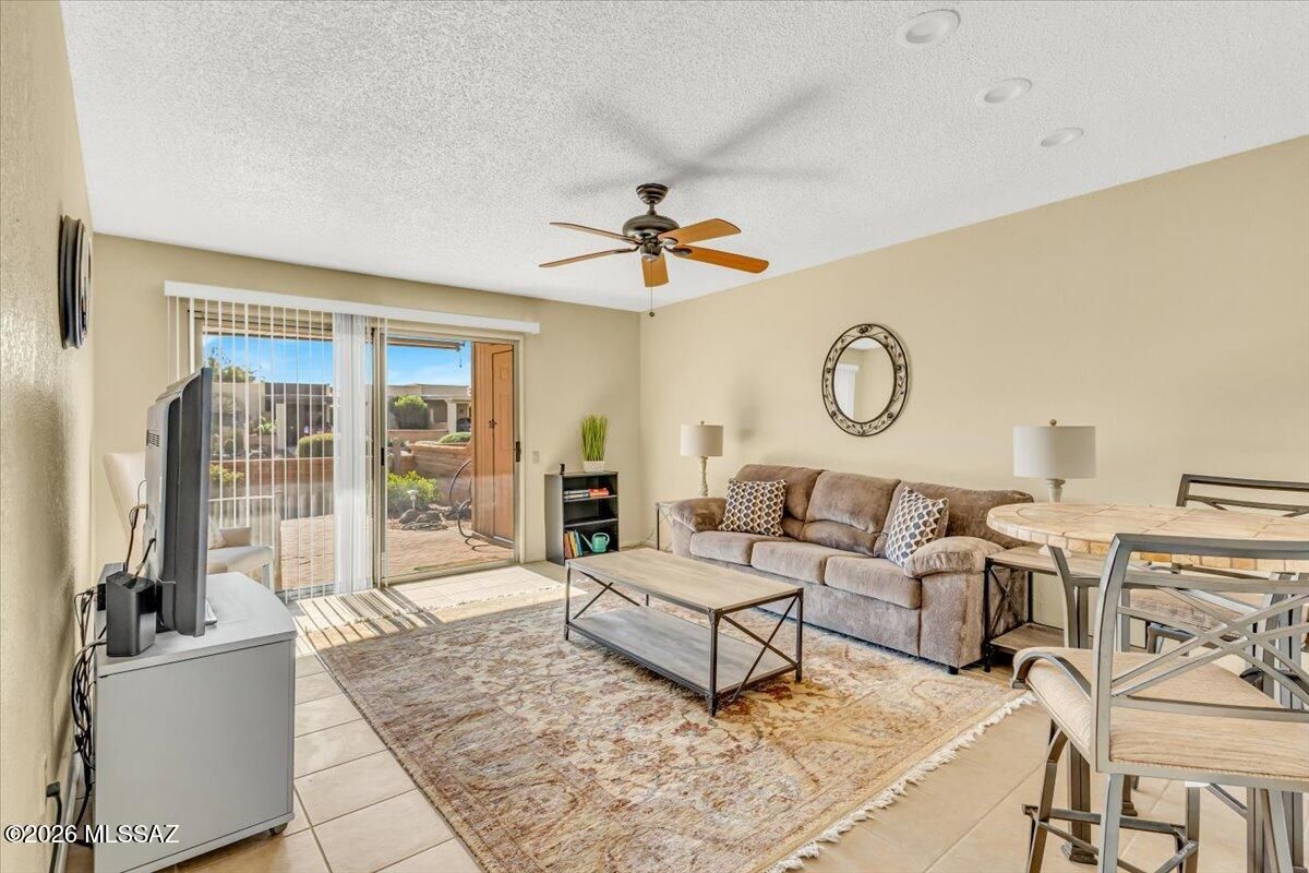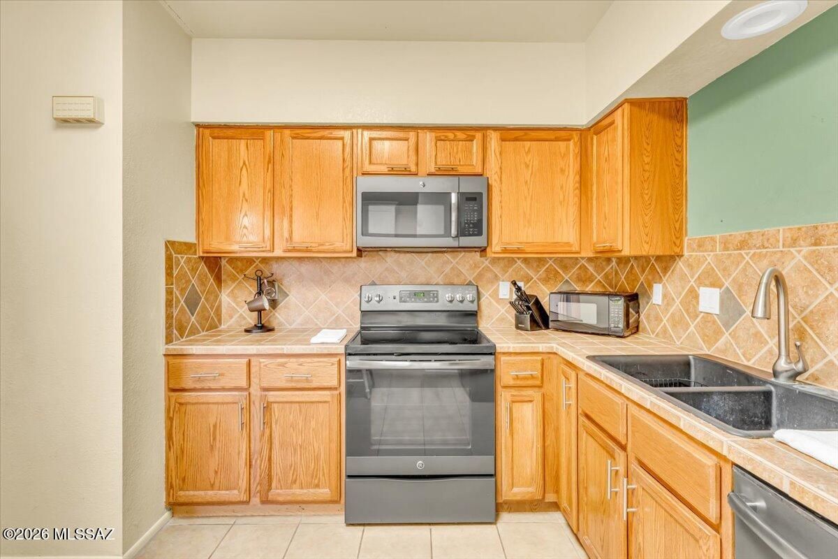 Enjoy stunning mountain views from the inviting back patio and appreciate the thoughtful interior updates throughout this well-maintained home. The kitchen features newer slate appliances, additional cabinetry for extra storage, and tiled countertops with coordinating backsplash. Tile flooring enhances the main living areas, while both bathrooms have been updated with newer countertops and shower surrounds. BONUS 1 year Home Warranty offered! This property is in the Green Valley Recreation (GVR) service area. The GVR membership is required in the form of a permanent deed restriction on this home. Go to https://mlssaz.com/gvr/ for information on GVR and what is required.