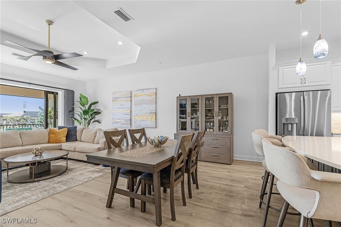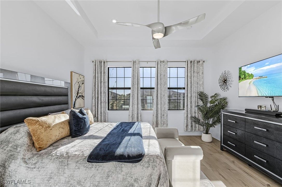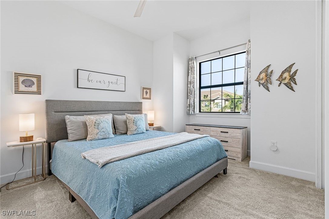 Price Reduction, Must See this Luxury Coach Home with Serene Water Views in Esplanade by the Islands – Naples, FL! Welcome to elevated resort-style living at Esplanade by the Islands in beautiful Naples, Florida. This stunning second-floor Bellissimo floorplan coach home offers 2,343 sq. ft. of refined interior living space plus large private outdoor lanai space, showcasing tranquil southwest-facing water views and beautiful Naple’s sunsets! The Bellissimo features 3 spacious bedrooms and 2.5 bathrooms. This residence is located just steps on the same block as the Community Resort Pool and is being sold TURNKEY making it truly move-in ready. The home has nice upgrades and a Kinetco water system which provides quality water to your home. The open-concept layout seamlessly connects the expansive great room to the gourmet kitchen, which is beautifully appointed with quartz countertops, stainless steel appliances, and modern designer accents. The luxurious owner’s suite serves as a private retreat with a dual-sink vanity, oversized walk-in shower and a generous walk-in closet. Two additional guest suites offer privacy and comfort, complemented by a well-equipped laundry room. Additional highlights include hurricane-impact windows and doors, a 1-car attached garage, and the home has been lightly lived in and is smoke and animal free. Ideally located just off US-41, Esplanade by the Islands places you minutes from Marco Island, and Naples Gulf beaches. Experience the Heart of Naples, 5th Avenue South, the Crown Jewel of Naples! Esplanade residents enjoy an unmatched resort lifestyle with access to the Bahama Bar & Grille, which offers full-service both in the restaurant and at the resort pool. Wellness Center & Day Spa, resort-style pool with a hot tub, state-of-the-art fitness center, 5 clay tennis and 8 pickleball courts, dog park, scenic walking trails, and a vibrant calendar of social and wellness events. A future Culinary Arts Center will further enhance the community’s focus on food, wine, and social experiences. All within walking distance to your condo and an added bonus is the neighborhood pool which is within steps from your condo that has grills and a firepit. With low HOA fees covering landscaping, irrigation, pest control, water, and full amenity access, this home offers exceptional luxury and value. A Publix and Urgent Care is conveniently located next door.