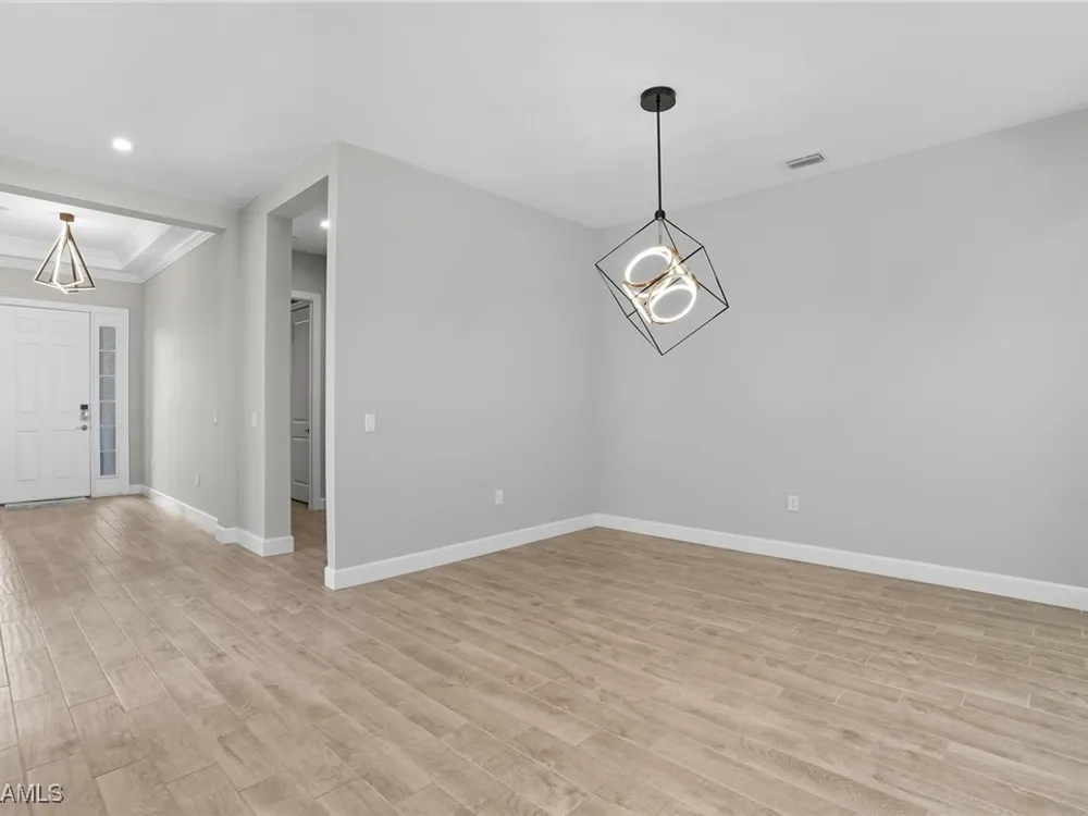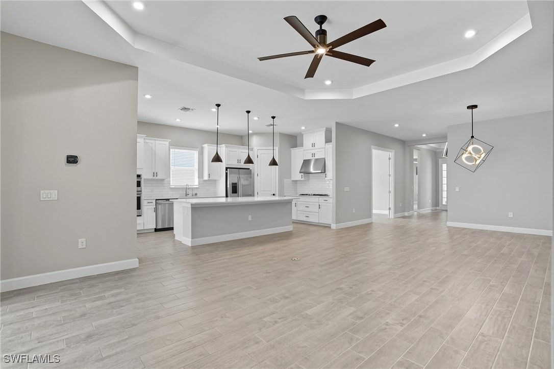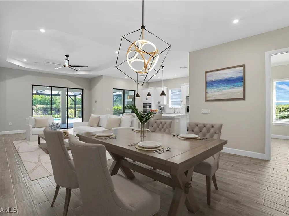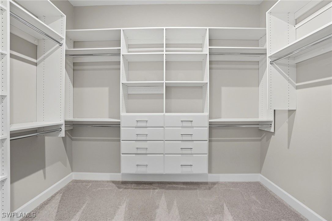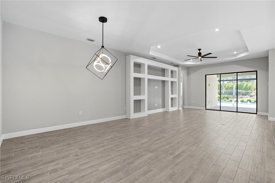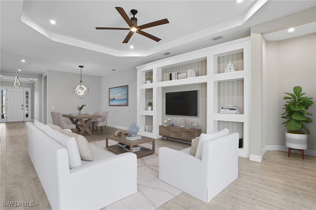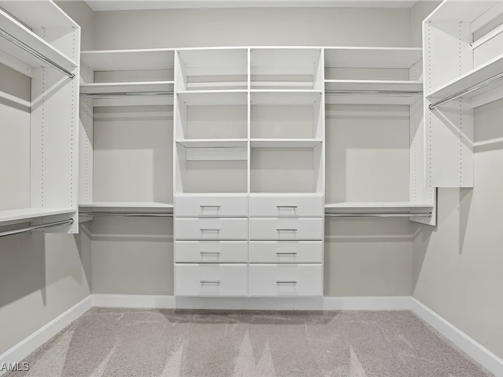 Built in 2022, this barely lived-in, 3+den/3 bath Lazio floorplan home blends thoughtful upgrades with timeless style. Nestled on a private cul-de-sac with sought-after southeastern exposure, the property is designed for both relaxed living and elegant entertaining. Inside you’ll find custom light fixtures and fans throughout, beautiful porcelain tile in the main areas, complemented by custom millwork in every room of the house including crown molding, custom shelving and closet systems in all bedrooms, custom built-ins in the den & family room, tray ceilings and 8ft interior doors throughout the home. The chef’s kitchen is as functional as it is beautiful, featuring quartz countertops, custom plumbing fixtures, upgraded GE appliances with gas cooktop, 42” upper cabinets, reverse osmosis system and a walk-in pantry with custom shelving. The primary suite is designed for relaxation with large custom closets, dual vanities, and a spa-inspired bath boasting dual shower heads and a frameless glass shower. Even the expansive laundry room is elevated with custom cabinetry, a sink and tiled walls, while the extended lanai offers a retreat of its own with a picture-framed screen, pool & spa with upgraded tile, lights and bubblers and a full outdoor kitchen—complete with sink, beverage cooler, integrated built-in grill with hooded vent, and granite countertops. Additional features include upgraded 10 ft. ceilings, generator hook-up, bay windows in guest and primary suites, a tankless water heater, a two and a half car garage (room for the golf cart!) with epoxy floors, and new landscaping on a 150 foot deep lot —— deeper than the new construction offerings in the community. Every detail of this home was carefully chosen to enhance style, comfort, and convenience. Esplanade by the Islands is fast becoming the pinnacle of resort-style living in Naples, with its full amenity campus including resort pool, full service spa, fitness center, Toasted Cafe & Bahama Bar, Pickleball, Tennis & Bocce courts, Nature Trails and so much more. Conveniently located near downtown Naples and Marco Island, don’t miss your chance to make this home as well as this lifestyle yours!