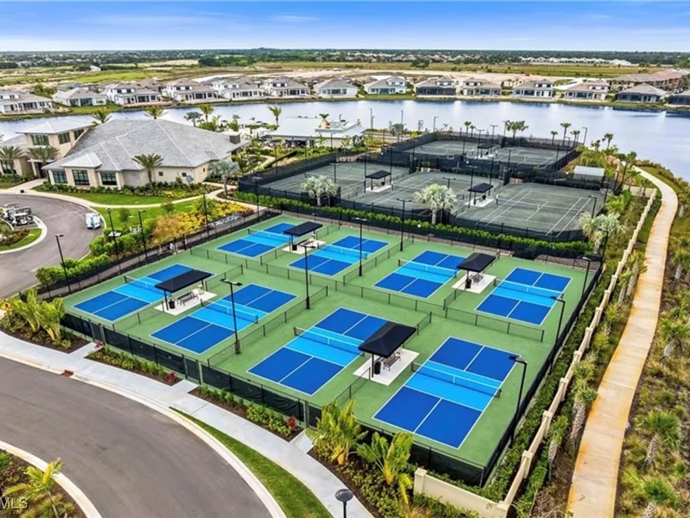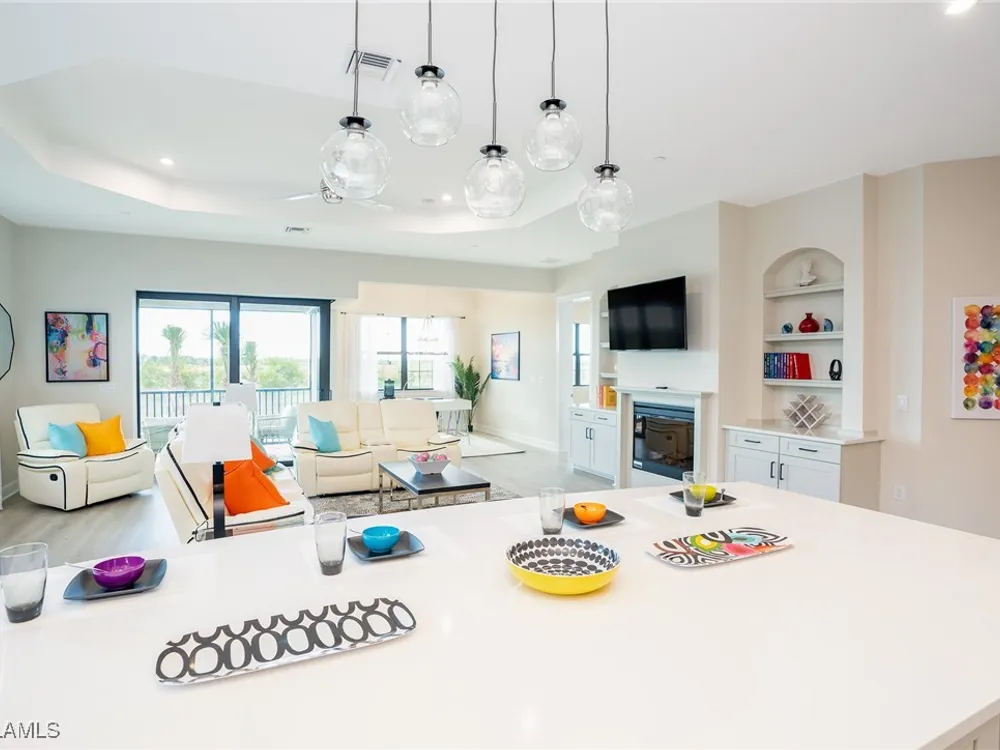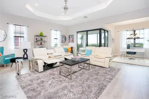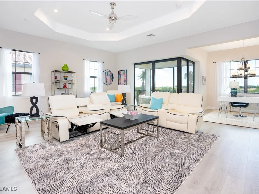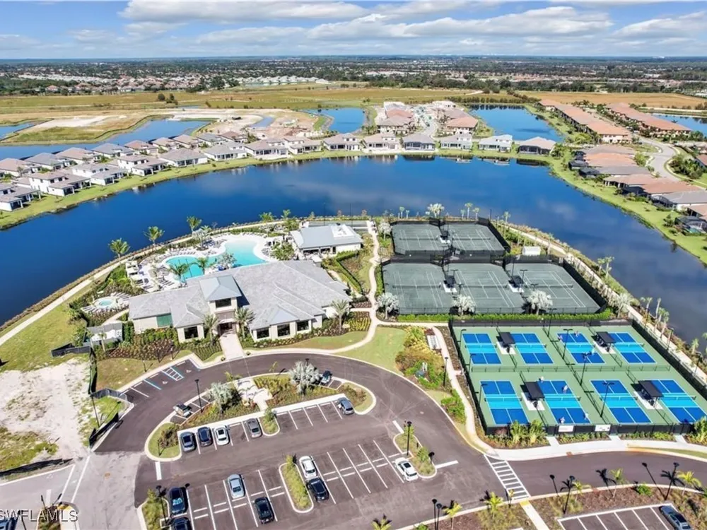 Esplanade by the Islands isn’t just a place to live — it’s a lifestyle destination. One of Naples’ newest and most sought-after gated communities, where resort-style living is part of your everyday experience. From the moment you enter the community, you’re greeted by manicured landscapes, Mediterranean-inspired architecture, and world-class amenities designed to elevate your lifestyle. Relax poolside under swaying palms or indulge in a rejuvenating treatment at the luxurious on-site spa. Savor casual, open-air dining and cocktails at the Bahama Bar, or connect with neighbors over a friendly match at the tennis, pickleball, or bocce courts. For those who prioritize wellness, the state-of-the-art fitness center, movement studio, group classes, and aquatics programs offer a full spectrum of mind-body experiences. This Romano VII coach home offers 2,393 sq ft of stylish, turnkey living — just unpack and enjoy. Thoughtfully furnished with reclining sofas, swivel bar stools, a glass dining room table, an office desk, and a fully stocked kitchen, this home is truly move-in ready and designed for both comfort and convenience. It also includes bed linens, beach towels, and all the essentials to start living the resort lifestyle from day one. With three spacious bedrooms, three full bathrooms, and a one-car garage, the open-concept layout flows effortlessly from the bright and airy living area to the designer kitchen, perfect for both everyday living and entertaining.Loaded with upgrades, this home features high-end luxury vinyl plank flooring, custom light fixtures and ceiling fans, frameless glass shower doors, custom cabinetry, and impact-resistant windows that provide peace of mind and storm protection. One of the standout features of this home is the expansive covered lanai with western exposure, offering breathtaking sunset views over the lake. The zero-corner sliding glass door seamlessly connects your indoor and outdoor living spaces, creating a wide-open feel that’s perfect for entertaining or simply enjoying the serene surroundings. The owner’s suite is a true retreat, offering dual vanities, a spacious walk-in shower, and a custom walk-in closet. Each guest bedroom is generously sized, providing privacy and comfort for visitors. Additional highlights include high ceilings, sleek tile flooring, ample storage, and a location within one of Naples' most vibrant and luxurious communities. Whether you're entertaining, relaxing at home, or exploring Naples' pristine beaches, world-class golf courses, shopping, and dining, you’ll feel at home in a community that blends elegance, energy, and ease. Just bring your suitcase — this turnkey resort lifestyle awaits.