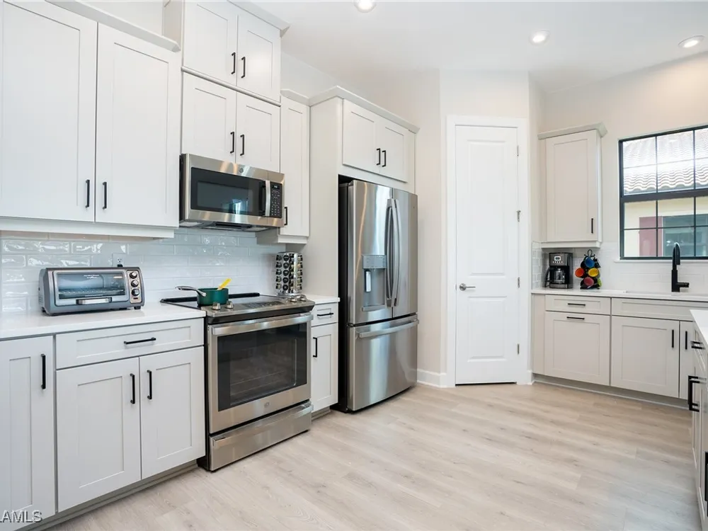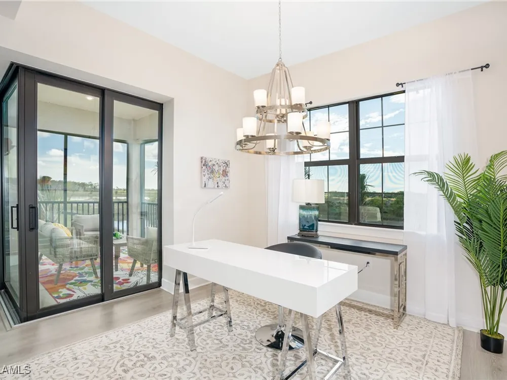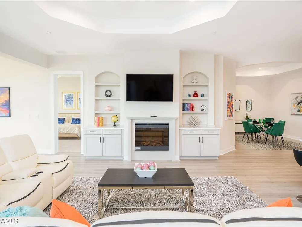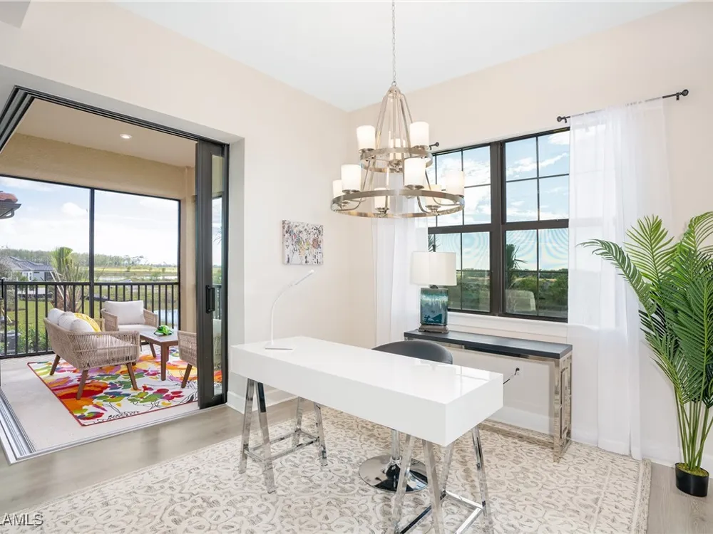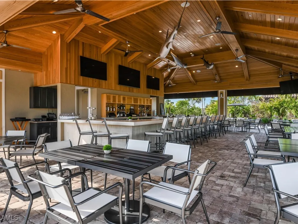 Esplanade by the Islands isn’t just a place to live — it’s a lifestyle destination. One of Naples’ newest and most sought-after gated communities, where resort-style living is part of your everyday experience. From the moment you enter the community, you’re greeted by manicured landscapes, Mediterranean-inspired architecture, and world-class amenities designed to elevate your lifestyle. Relax poolside under swaying palms or indulge in a rejuvenating treatment at the luxurious on-site spa. Savor casual, open-air dining and cocktails at the Bahama Bar, or connect with neighbors over a friendly match at the tennis, pickleball, or bocce courts. For those who prioritize wellness, the state-of-the-art fitness center, movement studio, group classes, and aquatics programs offer a full spectrum of mind-body experiences. This Romano VII coach home offers 2,393 sq ft of stylish, turnkey living — just unpack and enjoy. Thoughtfully furnished with reclining sofas, swivel bar stools, a glass dining room table, an office desk, and a fully stocked kitchen, this home is truly move-in ready and designed for both comfort and convenience. It also includes bed linens, beach towels, and all the essentials to start living the resort lifestyle from day one. With three spacious bedrooms, three full bathrooms, and a one-car garage, the open-concept layout flows effortlessly from the bright and airy living area to the designer kitchen, perfect for both everyday living and entertaining.Loaded with upgrades, this home features high-end luxury vinyl plank flooring, custom light fixtures and ceiling fans, frameless glass shower doors, custom cabinetry, and impact-resistant windows that provide peace of mind and storm protection. One of the standout features of this home is the expansive covered lanai with western exposure, offering breathtaking sunset views over the lake. The zero-corner sliding glass door seamlessly connects your indoor and outdoor living spaces, creating a wide-open feel that’s perfect for entertaining or simply enjoying the serene surroundings. The owner’s suite is a true retreat, offering dual vanities, a spacious walk-in shower, and a custom walk-in closet. Each guest bedroom is generously sized, providing privacy and comfort for visitors. Additional highlights include high ceilings, sleek tile flooring, ample storage, and a location within one of Naples' most vibrant and luxurious communities. Whether you're entertaining, relaxing at home, or exploring Naples' pristine beaches, world-class golf courses, shopping, and dining, you’ll feel at home in a community that blends elegance, energy, and ease. Just bring your suitcase — this turnkey resort lifestyle awaits.
