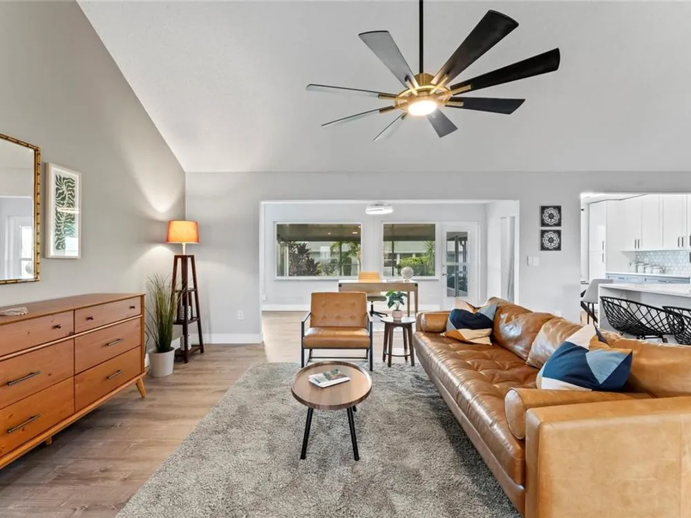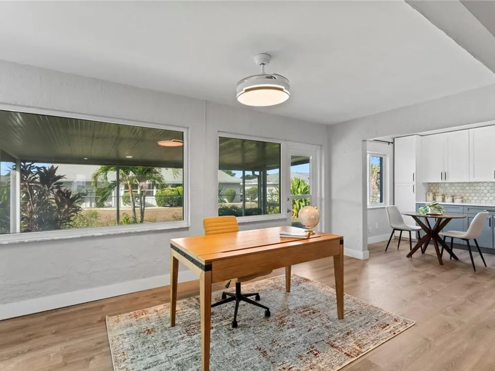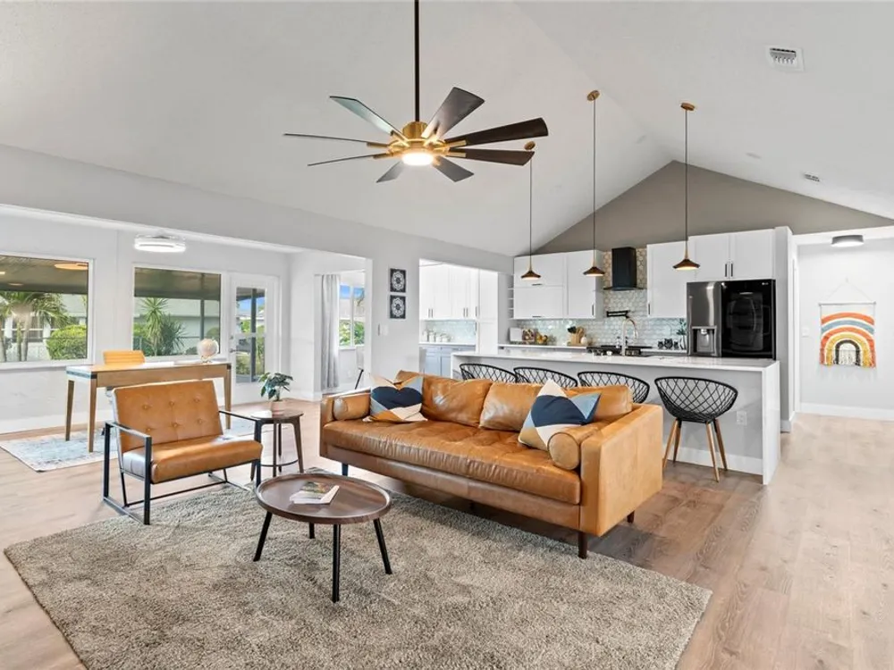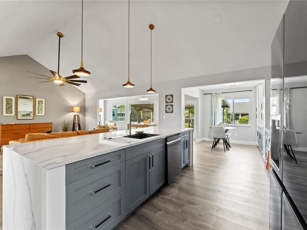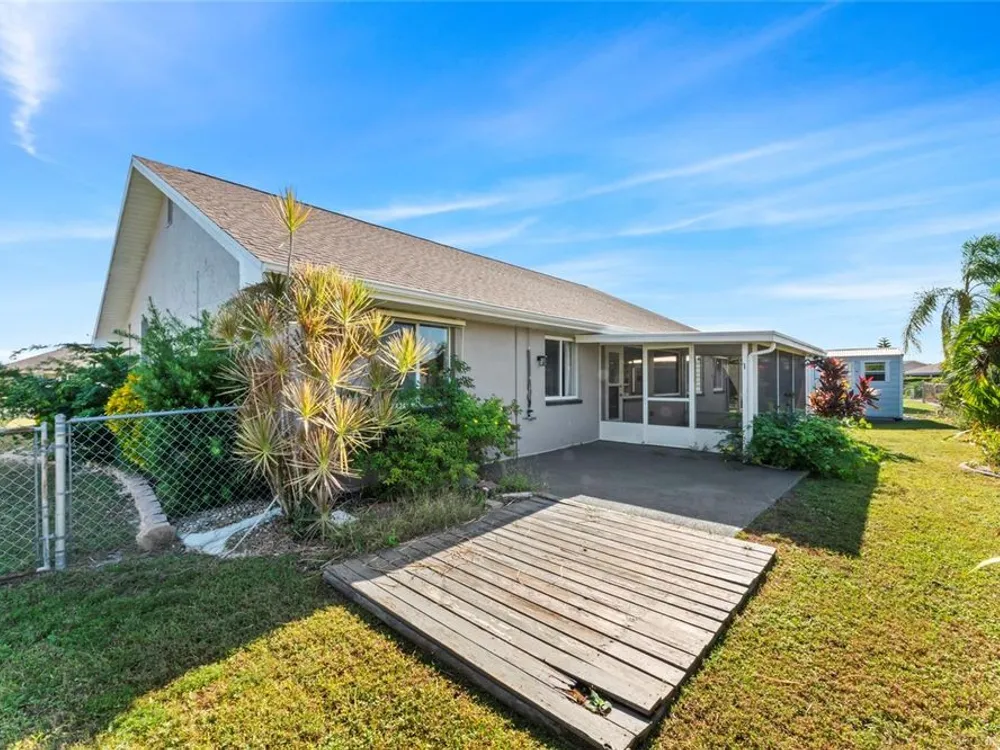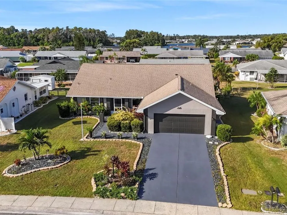 Live the Good Life in Sun City Center! Have you been dreaming of the perfect Florida lifestyle? Look no further than this beautifully remodeled 2-bedroom, 2-bath home with a 2-car garage. From the moment you arrive, the screened front entry welcomes you with charm and invites in the gentle breezes that flow throughout the home. Step inside and you’ll love the open-concept layout with soaring ceilings that make the main living area feel bright and spacious. The split floor plan provides excellent privacy, with both bedrooms generously sized—each large enough for a sitting area or reading nook. The living room flows seamlessly into a lovely Florida room, ideal for relaxing or entertaining. At the heart of the home is the stunning, recently remodeled kitchen. The chef in the family will appreciate the custom cabinetry, stainless steel appliances, sleek tile backsplash, and gorgeous quartz countertops with a waterfall-edge island that truly makes a statement. There’s plenty of storage and workspace, combining beauty and function perfectly. Both bathrooms have been tastefully updated, and the waterproof vinyl plank flooring throughout the home adds style and durability. Step outside to the screened, covered lanai—your private retreat for morning coffee or evening relaxation. The fully fenced backyard offers additional privacy and includes a convenient storage shed. Recent upgrades include a new roof (2020), whole-house replumb (2014), and a new irrigation system (2022)—giving you peace of mind and move-in-ready confidence. Sun City Center is one of the nation’s premier active adult communities, offering over 200 clubs and countless amenities including indoor and outdoor pools, a state-of-the-art fitness center, tennis and pickleball courts, lawn bowling, dog parks, and multiple golf courses. This true golf-cart community also offers close proximity to shopping, dining, medical facilities, and major highways—just a short drive to downtown Tampa, Tampa International Airport, and the world-famous Gulf beaches. Don’t miss your chance to start living the good life in this stunning Sun City Center home!