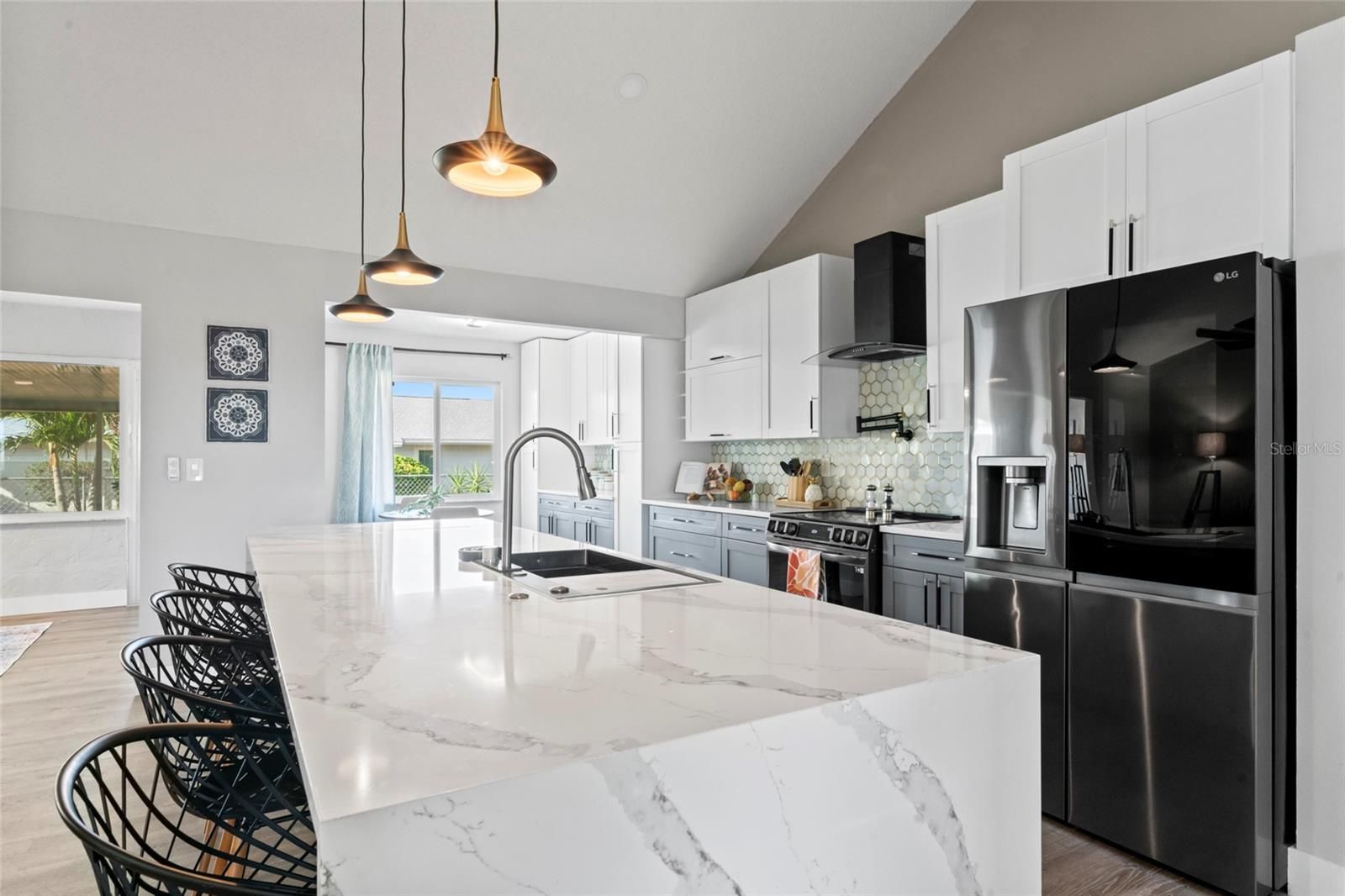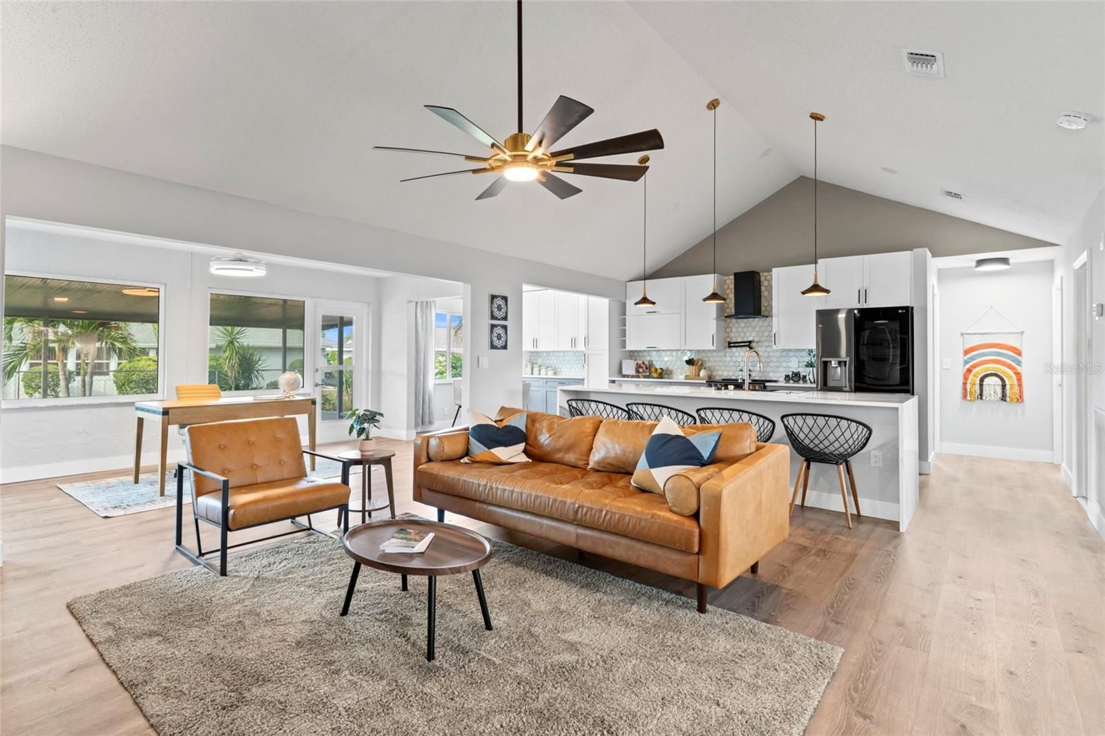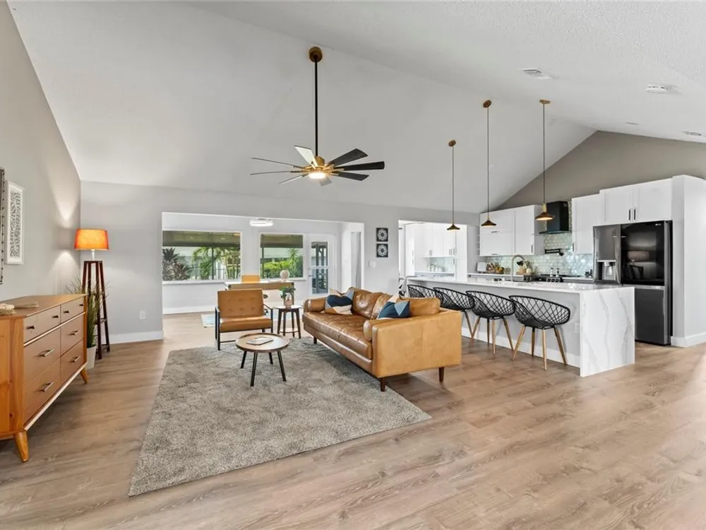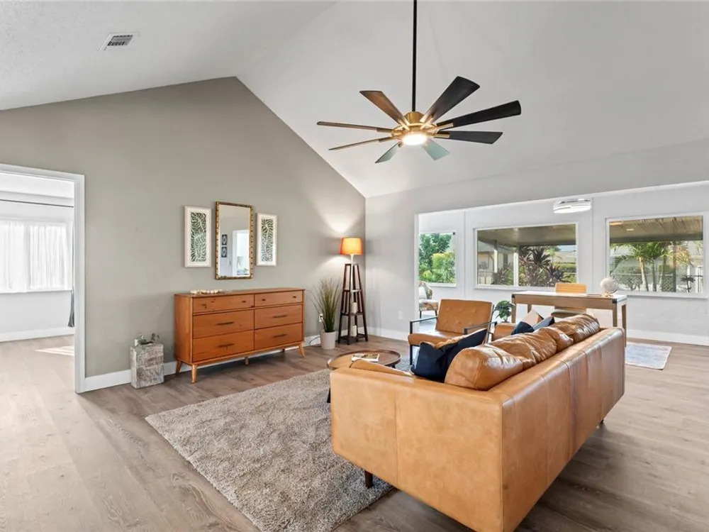 Live the Good Life in Sun City Center! Have you been dreaming of the perfect Florida lifestyle? Look no further than this beautifully remodeled 2-bedroom, 2-bath home with a 2-car garage. From the moment you arrive, the screened front entry welcomes you with charm and invites in the gentle breezes that flow throughout the home. Step inside and you’ll love the open-concept layout with soaring ceilings that make the main living area feel bright and spacious. The split floor plan provides excellent privacy, with both bedrooms generously sized—each large enough for a sitting area or reading nook. The living room flows seamlessly into a lovely Florida room, ideal for relaxing or entertaining. At the heart of the home is the stunning, recently remodeled kitchen. The chef in the family will appreciate the custom cabinetry, stainless steel appliances, sleek tile backsplash, and gorgeous quartz countertops with a waterfall-edge island that truly makes a statement. There’s plenty of storage and workspace, combining beauty and function perfectly. Both bathrooms have been tastefully updated, and the waterproof vinyl plank flooring throughout the home adds style and durability. Step outside to the screened, covered lanai—your private retreat for morning coffee or evening relaxation. The fully fenced backyard offers additional privacy and includes a convenient storage shed. Recent upgrades include a new roof (2020), whole-house replumb (2014), and a new irrigation system (2022)—giving you peace of mind and move-in-ready confidence. Sun City Center is one of the nation’s premier active adult communities, offering over 200 clubs and countless amenities including indoor and outdoor pools, a state-of-the-art fitness center, tennis and pickleball courts, lawn bowling, dog parks, and multiple golf courses. This true golf-cart community also offers close proximity to shopping, dining, medical facilities, and major highways—just a short drive to downtown Tampa, Tampa International Airport, and the world-famous Gulf beaches. Don’t miss your chance to start living the good life in this stunning Sun City Center home!