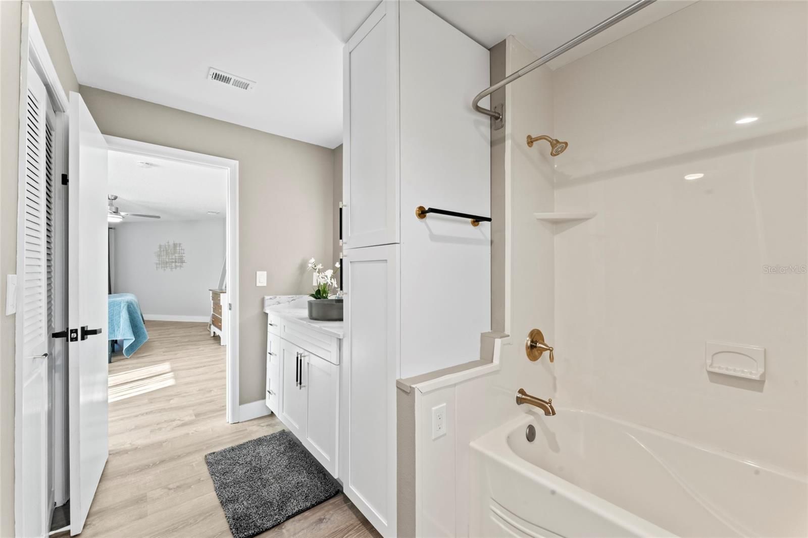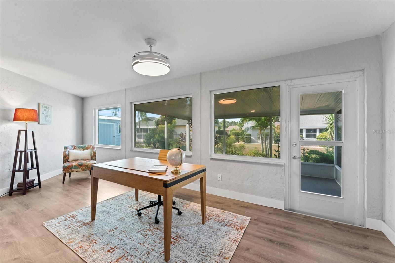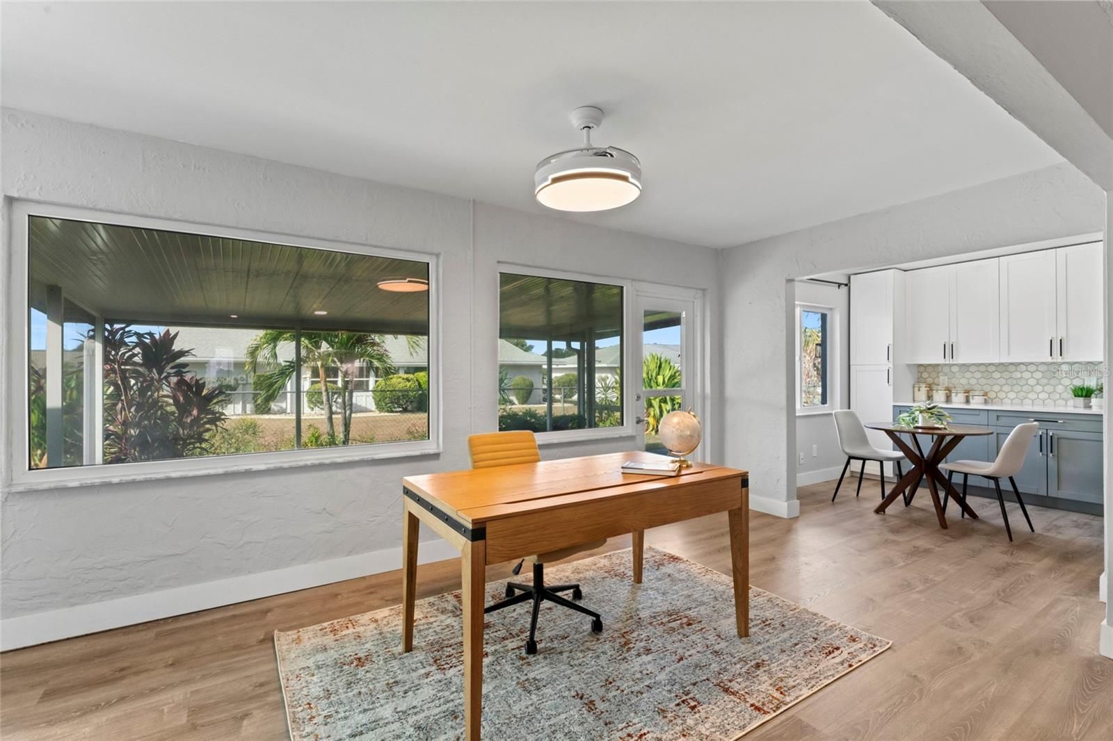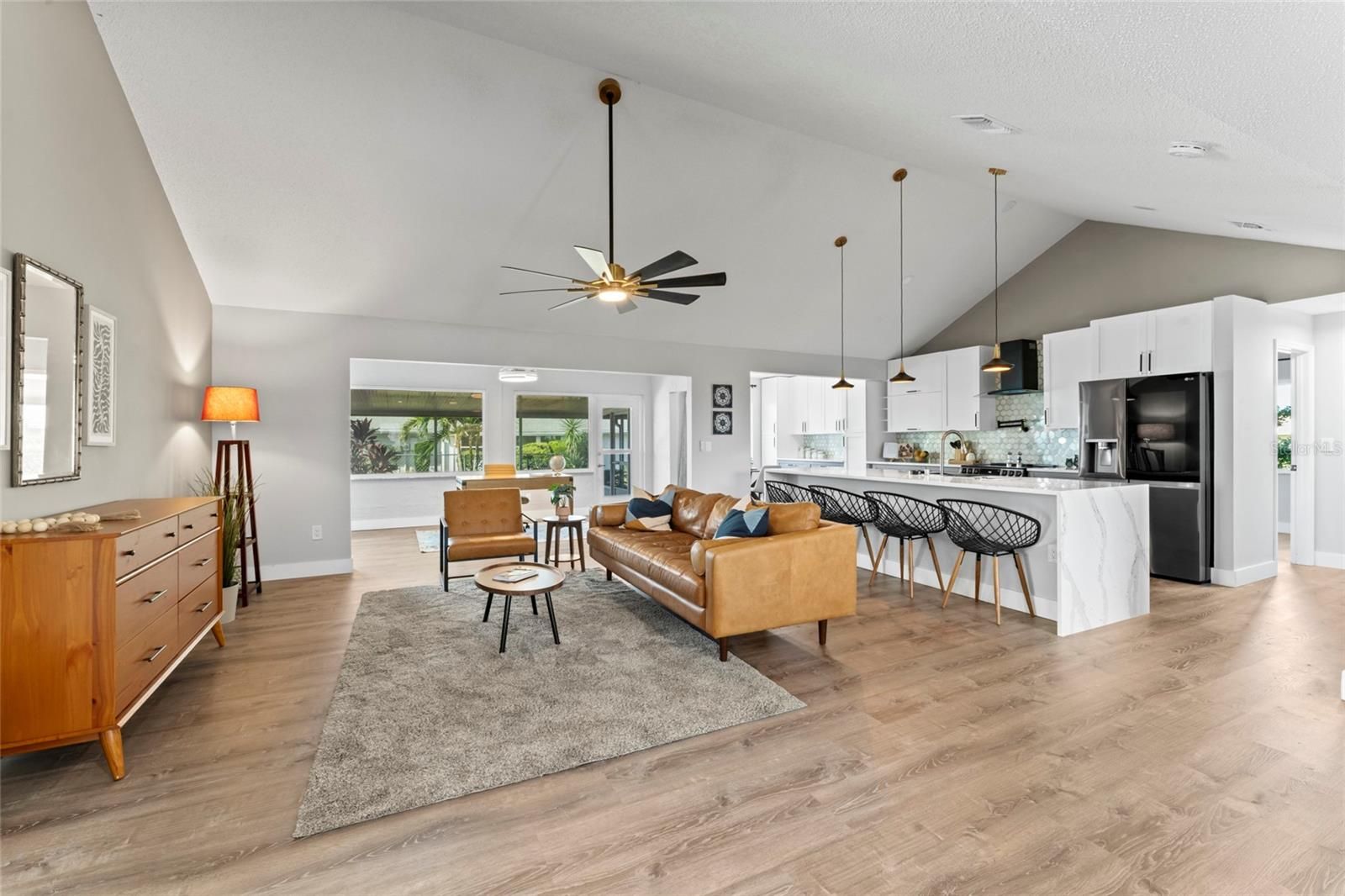 Live the Good Life in Sun City Center! Have you been dreaming of the perfect Florida lifestyle? Look no further than this beautifully remodeled 2-bedroom, 2-bath home with a 2-car garage. From the moment you arrive, the screened front entry welcomes you with charm and invites in the gentle breezes that flow throughout the home. Step inside and you’ll love the open-concept layout with soaring ceilings that make the main living area feel bright and spacious. The split floor plan provides excellent privacy, with both bedrooms generously sized—each large enough for a sitting area or reading nook. The living room flows seamlessly into a lovely Florida room, ideal for relaxing or entertaining. At the heart of the home is the stunning, recently remodeled kitchen. The chef in the family will appreciate the custom cabinetry, stainless steel appliances, sleek tile backsplash, and gorgeous quartz countertops with a waterfall-edge island that truly makes a statement. There’s plenty of storage and workspace, combining beauty and function perfectly. Both bathrooms have been tastefully updated, and the waterproof vinyl plank flooring throughout the home adds style and durability. Step outside to the screened, covered lanai—your private retreat for morning coffee or evening relaxation. The fully fenced backyard offers additional privacy and includes a convenient storage shed. Recent upgrades include a new roof (2020), whole-house replumb (2014), and a new irrigation system (2022)—giving you peace of mind and move-in-ready confidence. Sun City Center is one of the nation’s premier active adult communities, offering over 200 clubs and countless amenities including indoor and outdoor pools, a state-of-the-art fitness center, tennis and pickleball courts, lawn bowling, dog parks, and multiple golf courses. This true golf-cart community also offers close proximity to shopping, dining, medical facilities, and major highways—just a short drive to downtown Tampa, Tampa International Airport, and the world-famous Gulf beaches. Don’t miss your chance to start living the good life in this stunning Sun City Center home!