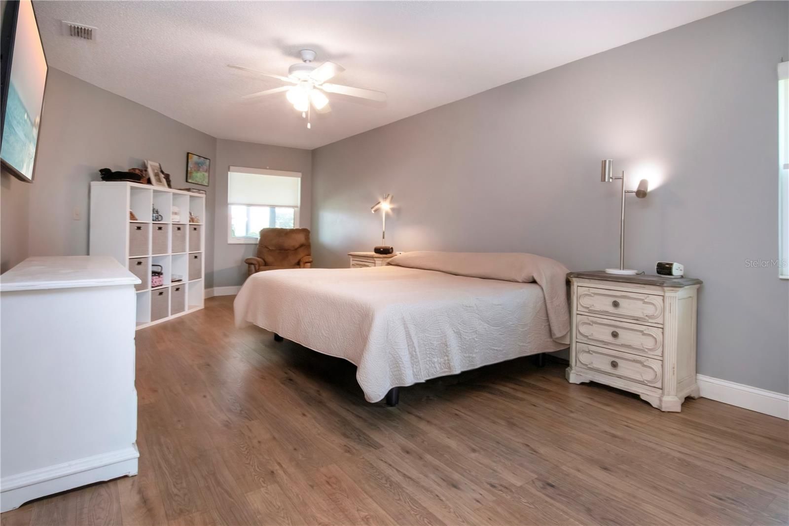 Wonderful new asking price! Welcome to your own piece of paradise! As you enter this home you are immediately drawn to the spaciousness, neutral decor and tranquil view of the lake! Your large great room area provides a wonderfully versatile space that can be used for entertaining, dining, hobby area, computer room whatever your lifestyle dictates. The view from the great room is amazing and you enter a cozy Florida room with vaulted ceilings. Here you can relax and view the lake, or go out to your screened lanai. From there you can take a stroll down to the water and relax on your own private dock! The newly modern kitchen which is open to the great room provides plenty of cabinet space, a six person breakfast bar, all stainless appliances. This is a chef's delight kitchen with an adjacent laundry room with additional storage. From the laundry you have access to a full two car garage with an outside door, hurricane reinforced garage door and storage. This home provides two master suites with a split floor plan. The first master is a large bedroom area with windows that provide a lake view and an adjacent bath complete with a shower and tub. The 2nd master suite is very unique because it presents its own a private screened two person lanai. Imagine relaxing here and viewing the lake after taking a relaxing bath/shower in your adjacent updated bath! But there is more! You have a lovely outside patio where you can use a grill, and enjoy the view of the lake and watch the Florida wildlife! This home is very private and will enable you to enjoy everything the Florida lifestyle has to offer! Add to all of this a home with tile and laminate flooring throughout, no HOA fees, a convenient location, all new windows, some with sunshades, a garage screen and a quiet, peaceful neighborhood! Call today and schedule an appointment to view this home and make it your own!