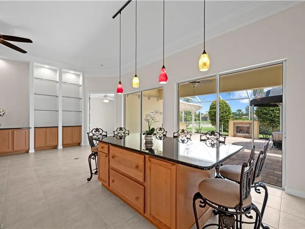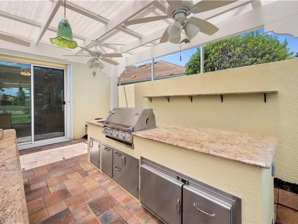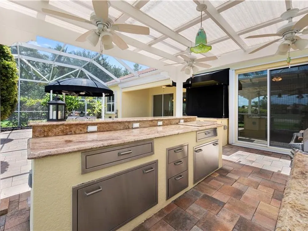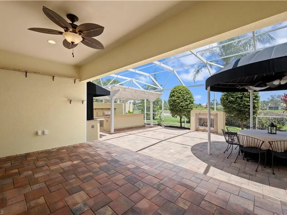 Welcome to your dream home in the sought-after community of Village Walk! Situated on an oversized lot, this home is made for entertaining—inside and out. The chef’s kitchen features premium appliances, tons of counter space, and a custom island perfect for gatherings. The open floor plan includes a stylish dining room, versatile den/office, and a spacious living area that flows seamlessly for modern living. The primary suite is your private retreat, while three additional bedrooms offer comfort for family or guests. Step outside to enjoy a welcoming front porch and an extended lanai with an outdoor kitchen, pizza oven, bar, and fireplace—perfect for unforgettable evenings under the stars. Upgrades include a newer A/C, hot water heater, high-efficiency washer/dryer, fresh paint, hurricane shutters, and a whole-house generator with a buried propane tank for peace of mind, Lanai all decked out for Family fun. All just minutes from beaches, shopping, dining, and RSW Airport—this home truly has it all!