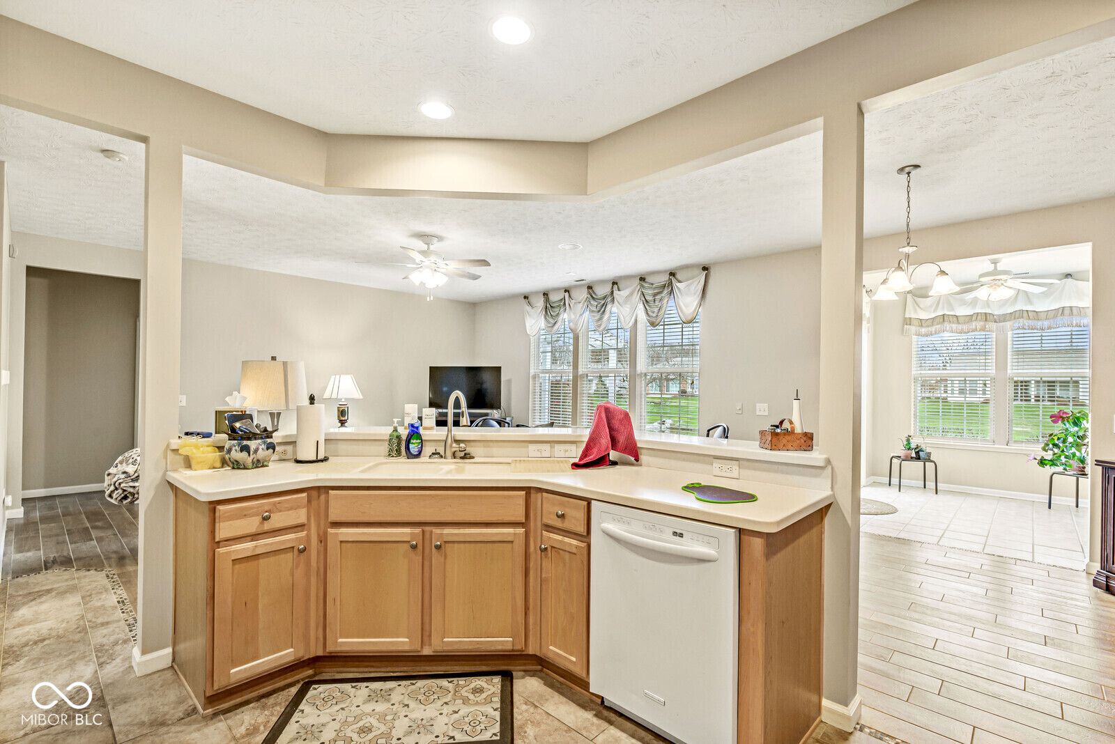 Open Floor Plan with recently updated new vinyl plank flooring & tile flooring. Surround sound system throughout. Premium lot in desirable Britton Falls! 55 older community. Kitchen offers plenty of storage, breakfast bar, pantry, solid surface counter tops & rough tile backsplash. All appliances included. Sunroom off Formal Dining Room with access to paver patio, pergola/rear yard pond view Primary bedroom has crown molding, large walk-in closet, bath with dual sink vanity, rough tile backsplash & newer custom walk-in shower. Office/den could easily be converted to a 3rd bedroom. New roof, guttering, furnace, water heater, appliances. Nicely landscaped.