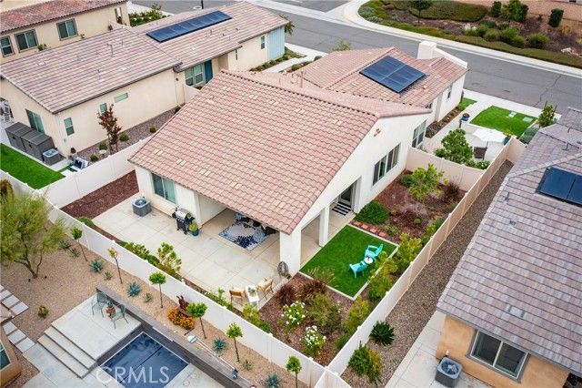 Discover 1529 Newland Dr., where resort-style living meets modern elegance in the heart of the award-winning Altis 55+ active adult community of Beaumont. Built in 2021, this sought-after AVID 2 model blends timeless Spanish architecture with a fresh, contemporary layout—offering 2 bedrooms, 2 bathrooms, plus a versatile den/flex room across 1,800 sq. ft. of thoughtfully designed, single-level living. If you’ve dreamed of a home that balances luxury, comfort, and connection—this is it. From the moment you arrive, you’ll feel the peace and privacy of your gated community and the charm of your front courtyard, where mountain views invite morning coffee, evening wine, or heartfelt conversations under starlit skies. Step inside and experience a bright, open floor plan with 9-foot ceilings and large windows that fill every space with natural light. The chef-inspired kitchen features a generous island, walk-in pantry, upgraded appliances, and abundant counter space—perfect for entertaining family or hosting your new Altis friends. The adjoining dining and living areas flow effortlessly to the covered backyard patio, ideal for year-round gatherings, barbecues, and sunset moments. Your primary suite is a true retreat—complete with spa-style bath, dual vanities, and a spacious walk-in closet. The guest suite is privately set with its own bath access and stylish barn door, creating a warm and welcoming haven for visitors. The flex room easily adapts to your needs—a home office, reading nook, art studio, or yoga space. This home was built with your comfort and future in mind—featuring leased solar panels, smart home technology, and energy-efficient systems that keep utility costs low and your lifestyle high. Outside your front door, Altis offers a lifestyle like no other: resort-style clubhouse, sparkling pools, fitness center, pickleball and bocce courts, walking trails, and a thriving calendar of social clubs and events. Whether it’s joining a wine night, morning fitness class, or just taking a stroll with neighbors who become lifelong friends—every day here feels like a vacation. 1529 Newland Dr. isn’t just a home—it’s a destination. A place where you can live freely, celebrate often, and enjoy the best years of your life surrounded by beauty, community, and comfort.