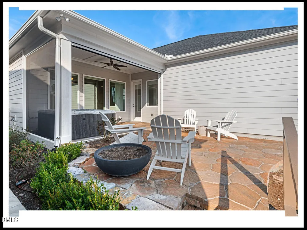 In this 55+community within the Briar Chapel neighborhood, you don't just get a home, you also get all the amenities the neighborhood has to offer, from swimming pools and a waterpark to tennis courts and numerous parks, including a BarkPark. Nestled in the Encore community, this two-bedroom, two-bathroom house is equipped with all the bells and whistles. Features include high ceilings, open floorplan, and a luxurious primary retreat—is ready to welcome you home. Built with aging in place in mind, this single-story home has accessibility features like flat entries, 36'' doorways, and a gorgeous walk-in shower in the primary en suite. As you enter the home, you'll find along the entry hall the roomy secondary bedroom and full bathroom, a coat closet, a door to the two-car garage, and an open study. The study, beautifully accented with a recovered 19th-century stained-glass window, is perfectly suited to function as a home office, craft space, home library, or simply a peaceful place to take your morning coffee. The hall opens into a spacious and airy-feeling great room. The kitchen boasts a large island, tons of beautiful granite countertop space, a gas range, stainless steel appliances, plentiful soft-close cabinetry, and a generously sized pantry. The bank of windows in the dining room floods the space with natural light, along with the high ceiling, giving the space a sense of ethereality. Below the windows stretches a row of cabinets, topped with a granite counter, offering you even more storage space while also visually grounding the airy feel of the room. The living room features a gas log fireplace, perfect for cozying up with hot cocoa and a good book in the wintertime or adding to ambiance. The rooms flood tons of natural light and provide a seamless transition from the living room to the covered back porch—complete with a hot tub and a new rosebush—making that beautifully-landscaped outdoor space feel like an extension of the great room. Transform the covered porch into a screened porch at the touch of a button. As you make your way toward the rear of the home, you'll find a sizable utility room that includes a countertop, an ideal work station for folding laundry. Beyond the utility room lies the owner's retreat, the primary bedroom, and en suite bathroom. The commodious primary bedroom is your personal oasis, its large, south-facing windows inviting natural light to fill the room all year long. The owner's retreat also boasts a capacious walk-in closet, and the luxurious en-suite bathroom is the true showstopper. This spa-like bathroom—with an expansive dual vanity that sprawls above a set of cabinets and drawers galore, as well as a separate water closet—is spacious enough to accommodate the busiest of morning routines while also being suited to long, relaxing self-care sessions. The large, tiled walk-in shower is accessible and sizable enough to accommodate a shower seat without feeling crowded. **This home is also listed for Rent @ $3500 per month. It currently does not have a lease and is available for sale, if preferred.**