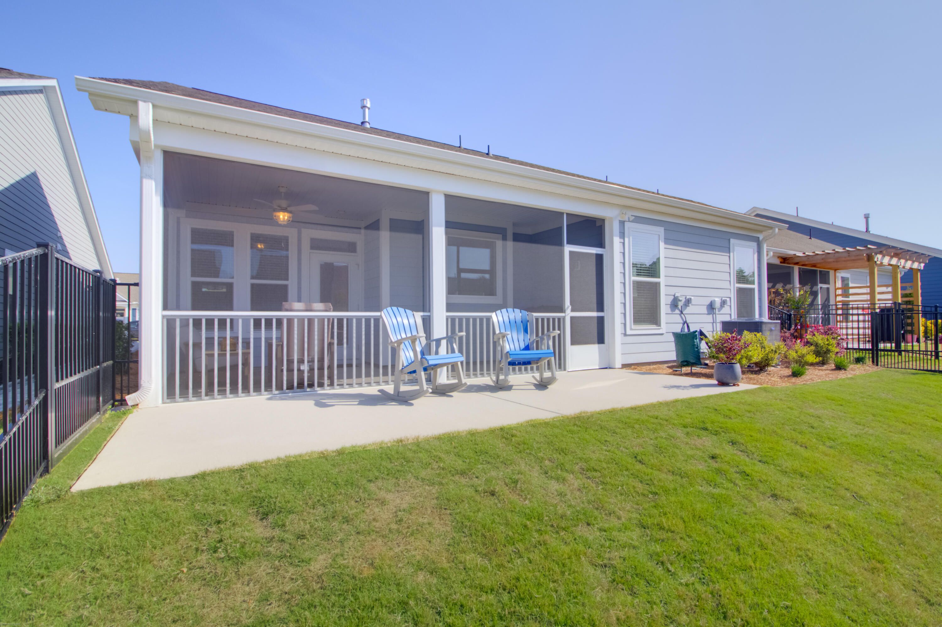 Welcome to luxury living at 153 Collared Dove Court. Nestled within the highly sought after 55+ community of Cresswind at the Ponds, this stunning 2/2 offers more comfort and community than you will find anywhere else in Summerville. Curb appeal abounds outside starting with the perfectly manicured lawn which is maintained by the neighborhood. You heard right! No mowing!Entering through the front door, you are met by the office / flex space equipped with French doors for privacy. Continuing on, the huge open plan provides visibility and flow into the living, dining, and kitchen areas. The kitchen is a cook's dream with stainless appliances, upgraded backsplash, custom walk-in pantry, large island, and an amazing view courtesy of the extra large window over the sink.To the left of the gas fireplace in the living area, you will find a storage closet, and first spacious bedroom with it's own hallway and a full bath. To the right, you will find the laundry and the beautifully appointed primary suite with tray ceiling and en suite which offers a jumbo walk-in shower that is to die for! Dual sinks with long vanity, separate toilet closet, and a roomy custom built out closet round out this space. One more item to take note of inside is the upgraded trim package throughout that adds visual height and eye catching detail to every room! Enjoy relaxing outdoors? The screened porch offers bug-free enjoyment of the beautiful South Carolina weather and is already wired and ready for a TV too! The back yard is fenced so you don't have to worry about having a space for your pets to play. As if this one of a kind home isn't enough, Cresswind offers world-class amenities that range from an immaculate clubhouse to tennis courts, pickle ball courts, a pool, and amphitheater! The good life is waiting for you. Make an appointment to see this Summerville gem today!