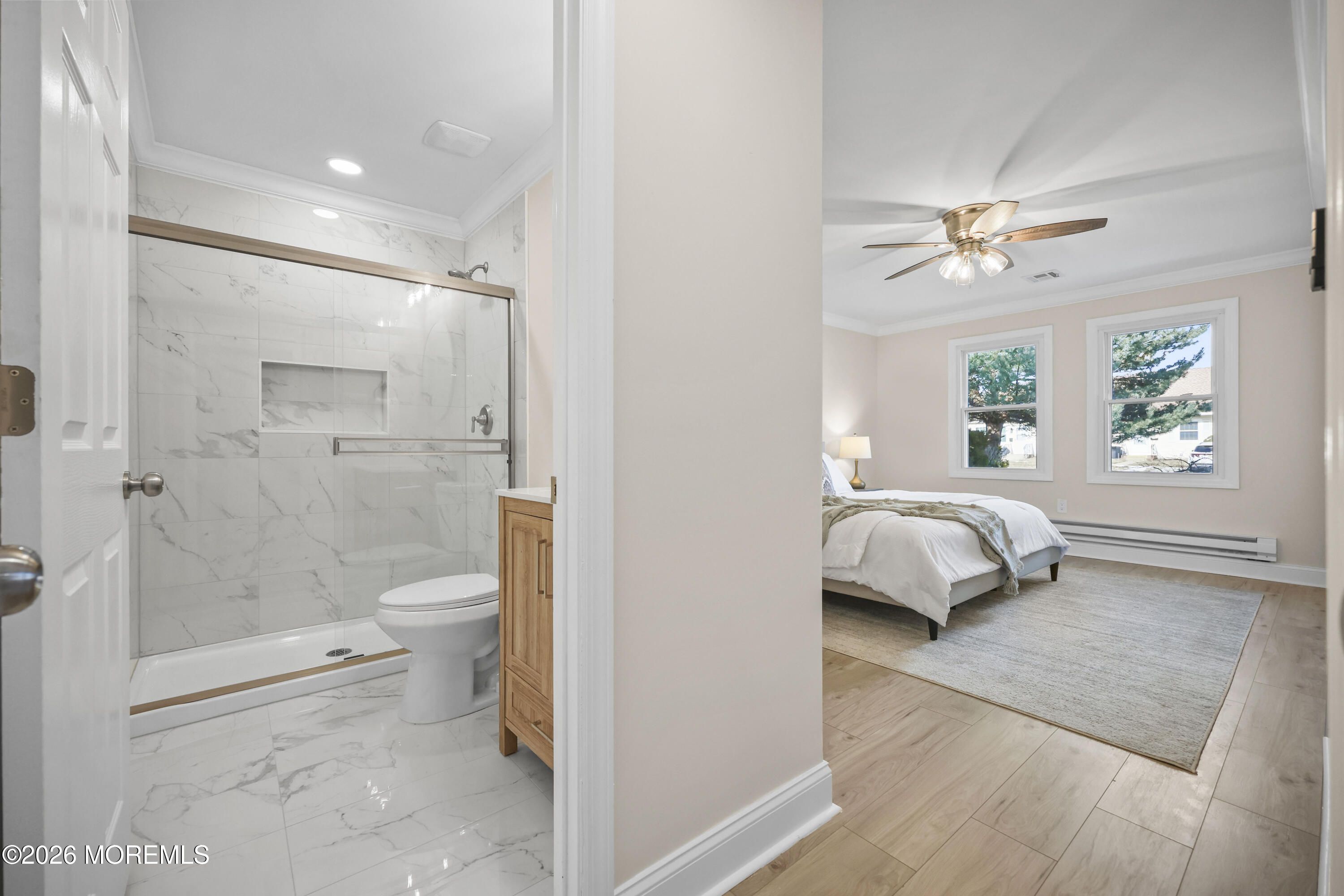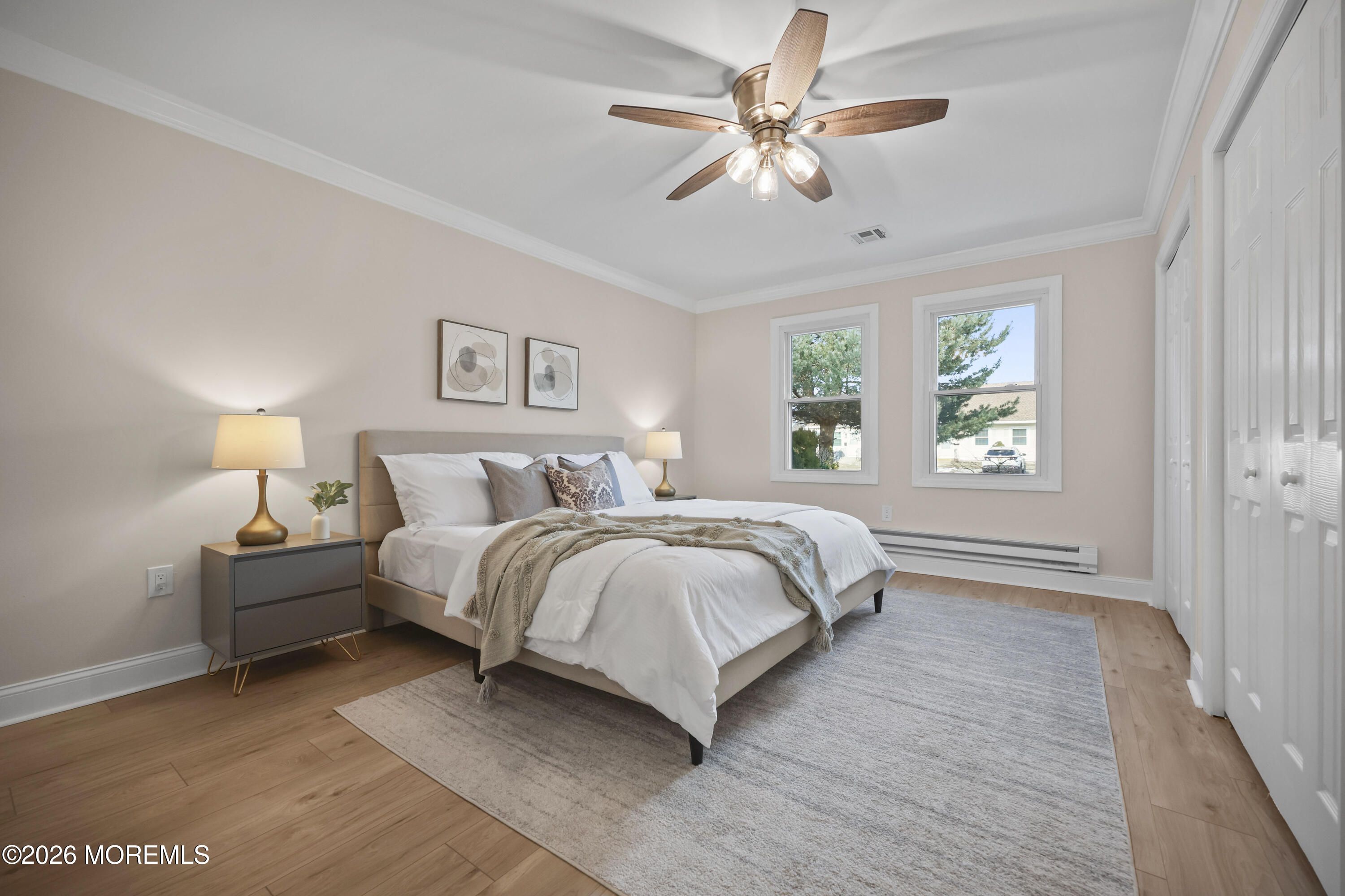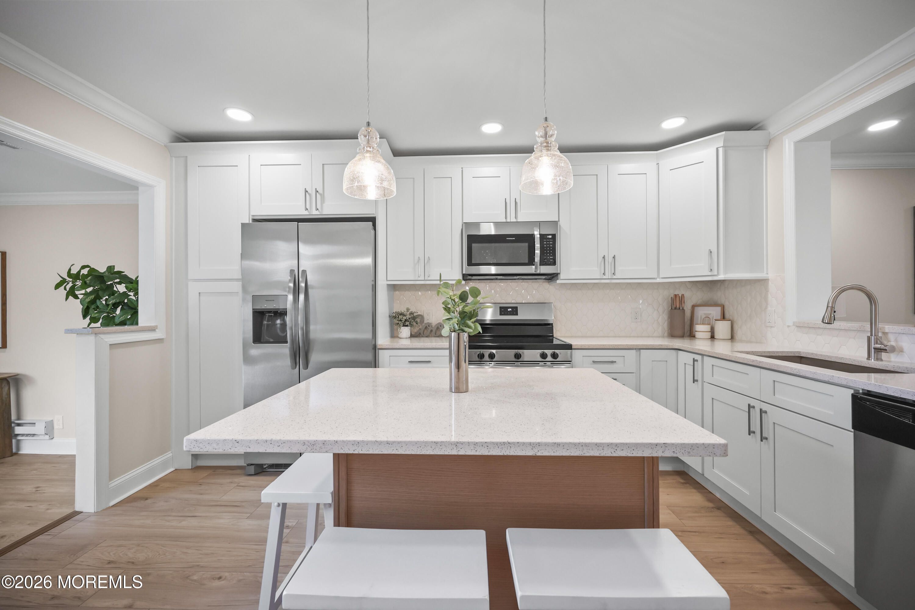 Stunning, Stylish & Smartly Priced! Welcome to the Most Beautifully Updated Homes in the Highly Sought-After Villages of Freehold - an Active Adult Community known for its friendly atmosphere, convenience, and vibrant lifestyle. From the Moment you Step Inside, you'll feel the perfect balance of modern sophistication and everyday comfort. With an open-concept layout ideal for entertaining or relaxing at home, this residence feels like something out of a magazine - yet it's priced with value in mind. The Designer Kitchen is a True Showpiece, featuring white shaker cabinetry, sparkling white quartz countertops, custom-lined backsplash, and SS Appliances - all complemented by recessed lighting and a light oak flooring which enhances any style of decor. The Spacious Primary Suite offers a peaceful retreat, complete with a sleek vanity, Porcelain Tile, and a walk-in shower with built-in niche. The guest bathroom echoes the same high end finishes and attention to detail. Crown Moulding throughout adds a refined touch of elegance. For added comfort and peace of mind, the home also features a Brand New HVAC system and HWH. At the Villages of Freehold, you'll enjoy easy -style living in a welcoming community. Ideally located near Routes 9, 18, and 79, you'll have quick access to shopping, dining, healthcare, and recreation; everything you need to love comfortably, actively, and connected.