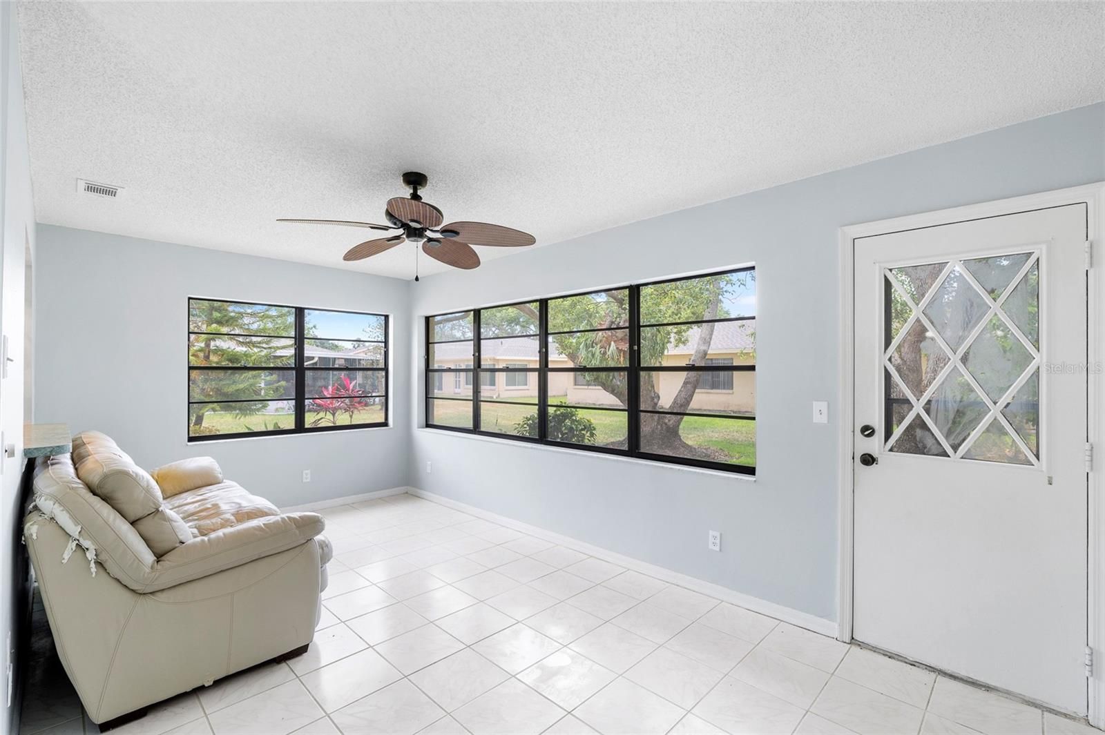 UPGRADED HOME for a GREAT PRICE on a CORNER LOT in a GOLF-CART COMMUNITY! Recent Renovations include roof, new flooring, new exterior and interior paint, LOW-E windows in the front, curbing and driveway redone. NEW STAINLESS-STEEL APPLIANCE PACKAGE INCLUDED WITH PURCHASE!! 2 bed, 2 bath, 2-car garage "condo", although it's basically a villa - only 1 shared wall. You will immediately notice the new floors, fresh paint, and open living room along with a large primary bedroom and double vanity bathroom. STAGEHORN FERN hanging in the back of the home stays. Enjoy the UNMATCHED LIFESTYLE of Kings Point—an active 55+ GUARD GATED community in Sun City Center offering GROUNDS MAINTENANCE and resort-style amenities including multiple clubhouses, indoor and outdoor pools, fitness centers, golf courses, tennis, pickleball, and over 200 CLUBS AND ACTIVITIES. From arts and crafts to travel groups, LIVE SHOWS, and lifelong learning programs, there’s something for every interest. Golf cart friendly and beautifully maintained, Kings Point delivers vibrant, maintenance-free living just minutes from Tampa Bay. ASK FOR INFO about everything Kings Point has to offer.
