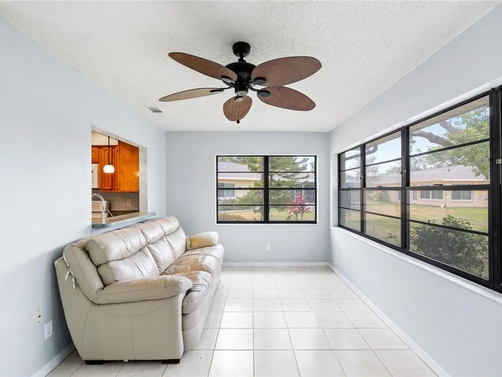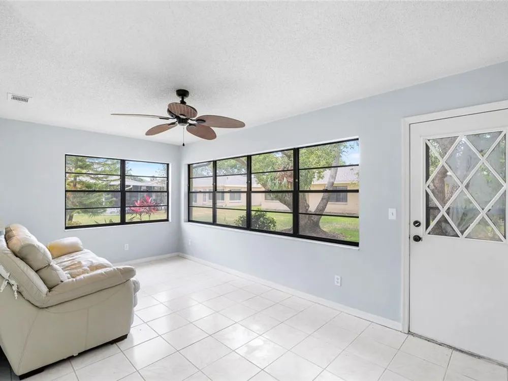 UPGRADED HOME for a GREAT PRICE on a CORNER LOT in a GOLF-CART COMMUNITY! Recent Renovations include roof, new flooring, new exterior and interior paint, LOW-E windows in the front, curbing and driveway redone. 2 bed, 2 bath, 2-car garage "condo", although it's basically a villa - only 1 shared wall. You will immediately notice the new floors, fresh paint, and open living room along with a large primary bedroom and double vanity bathroom. STAGEHORN FERN hanging in the back of the home stays. Enjoy the UNMATCHED LIFESTYLE of Kings Point—an active 55+ GUARD GATED community in Sun City Center offering GROUNDS MAINTENANCE and resort-style amenities including multiple clubhouses, indoor and outdoor pools, fitness centers, golf courses, tennis, pickleball, and over 200 CLUBS AND ACTIVITIES. From arts and crafts to travel groups, LIVE SHOWS, and lifelong learning programs, there’s something for every interest. Golf cart friendly and beautifully maintained, Kings Point delivers vibrant, maintenance-free living just minutes from Tampa Bay. ASK FOR INFO about everything Kings Point has to offer.