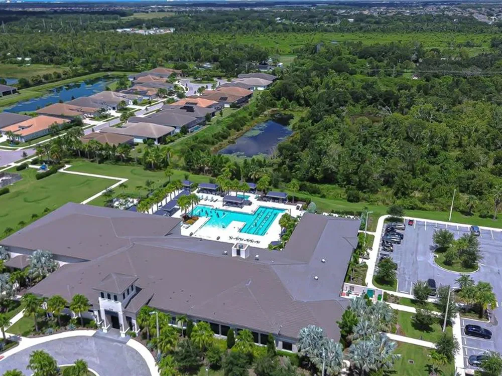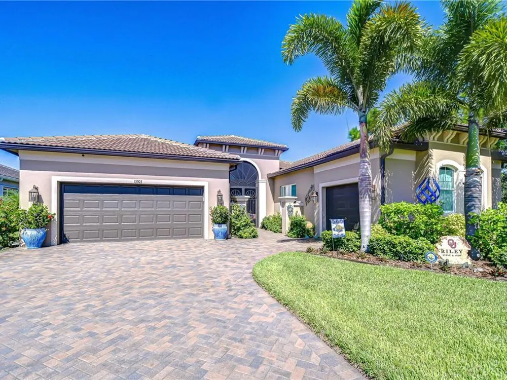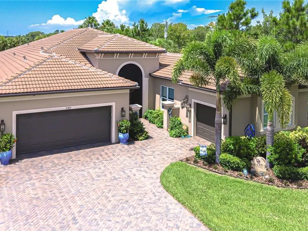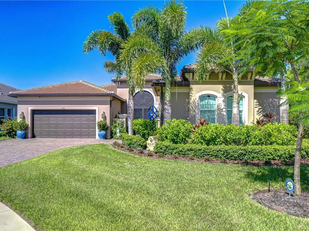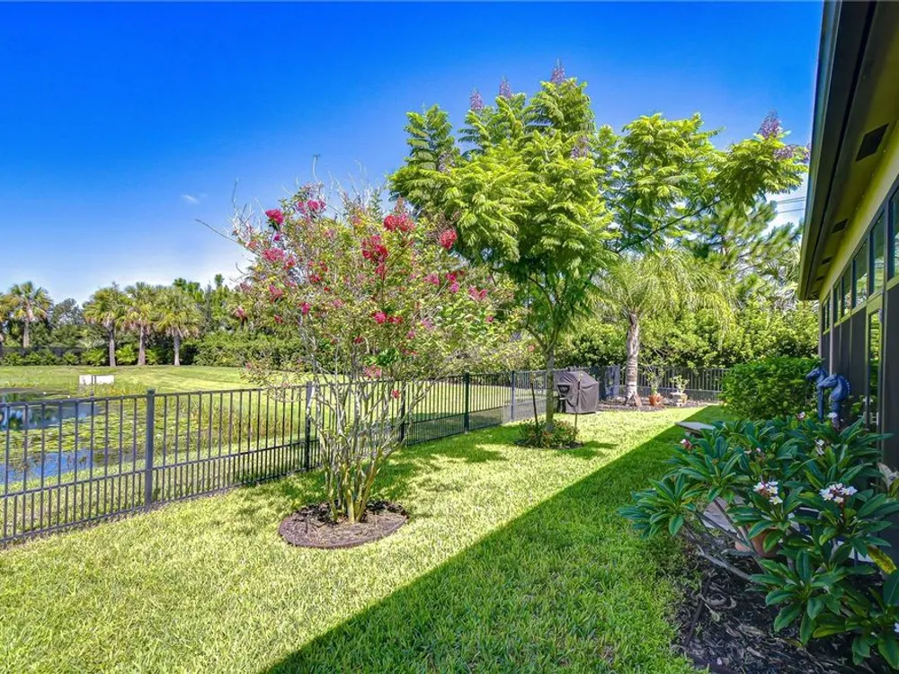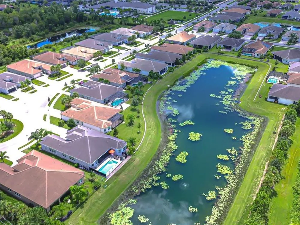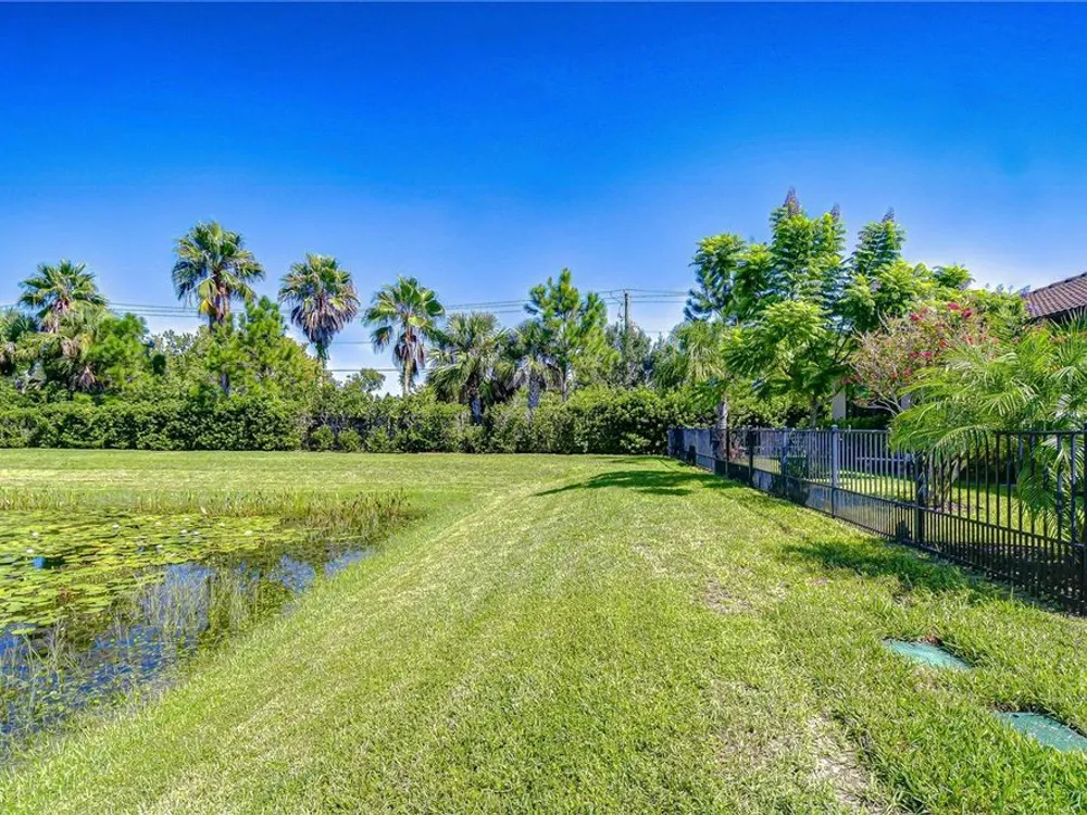 Welcome to the resort-style, 55+ gated community of Valencia Del Sol—where active, hands-free living is truly redefined! With an on-site activity director, your calendar will be filled with exciting events, and the Valencia Del Sol Club offers residents a full fitness center, meeting rooms, art and card rooms, a party room, PICKLEBALL courts, a resort-style pool, bocce ball, fire pits, and an on-site restaurant & bar. This stunning home, featuring over $200K in upgrades, offers 3 bedrooms, 3.5 baths, a bonus room, an oversized 772 SqFt Florida room, and a 3-car split garage, spanning over 3,855 sq. ft. Every detail exudes quality and elegance—from the Herringbone wood-look porcelain tile floors that flow throughout, double tray coffered ceiling and stone accent wall in the great room, crown moulding, and designer fixtures, to the custom window treatments and high-end finishes throughout. Step into the expansive, climate-controlled Florida room with automatic window shades, where peaceful water views and unforgettable Florida sunsets set the scene for seamless indoor-outdoor living. Entertain with ease in the custom-built outdoor kitchen featuring a commercial-grade extractor, and enjoy privacy in the fenced backyard surrounded by beautiful tropical landscaping. The gourmet kitchen is a chef’s dream, complete with quartz waterfall countertops, high-end cabinetry with custom pull-outs and soft-close drawers, stainless appliances, including a Cafe gas range with dual ovens, pantry pullouts, and a bright breakfast area with breakfast bar. The primary suite is truly remarkable, featuring stunning pond views, two walk-in California closets, and a private en-suite with dual vanities, a walk-in shower, and a soaking tub. One secondary bedroom offers a walk-in closet and private en-suite, while the third bedroom also features a walk-in closet with a nearby full bath highlighted by elegant fish scale tilework. Additional upgrades for peace of mind include whole-home high-impact windows and sliding glass doors, a transfer switch and portable generator setup so you’ll never be left in the dark, rain gutters, and a Culligan water softener/filter. The bonus room with built-in shelves and a desk is perfect for working from home, and the laundry room includes additional cabinetry for extra storage. Valencia Del Sol takes care of the details so you don’t have to, with community-provided pest control, lawn maintenance, mulching, and fertilizing, allowing you to focus on the lifestyle you deserve. Ideally located less than 40 minutes from both Sarasota and Tampa International Airports, this meticulously maintained and thoughtfully upgraded waterfront property combines luxurious comfort with convenience. Schedule your private tour today—you won’t be disappointed! Copy and paste this link to tour the home virtually: my.matterport.com/show/?m=ibV73eDfGmw&mls=1