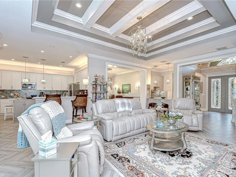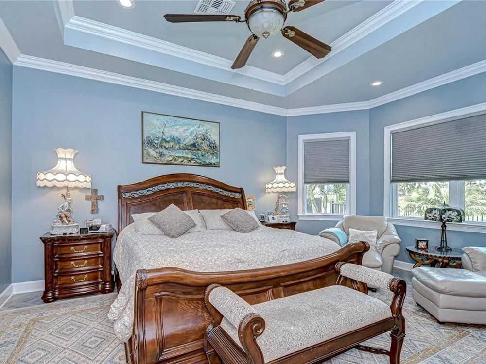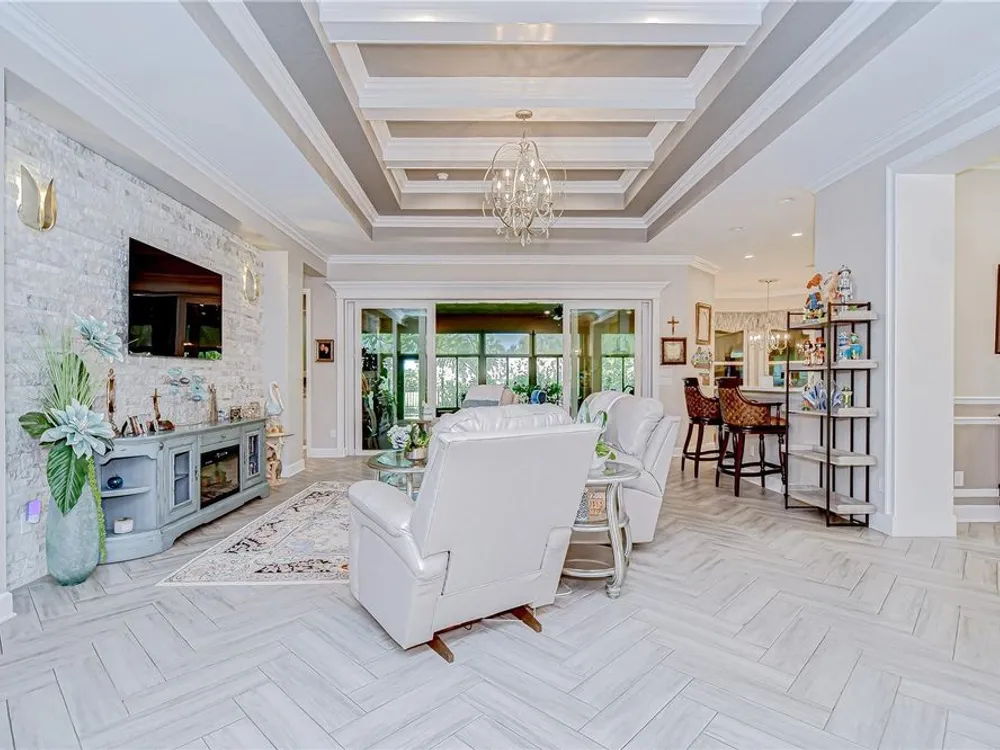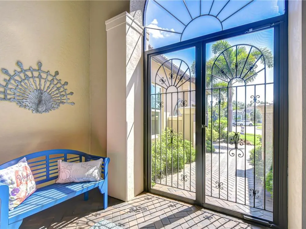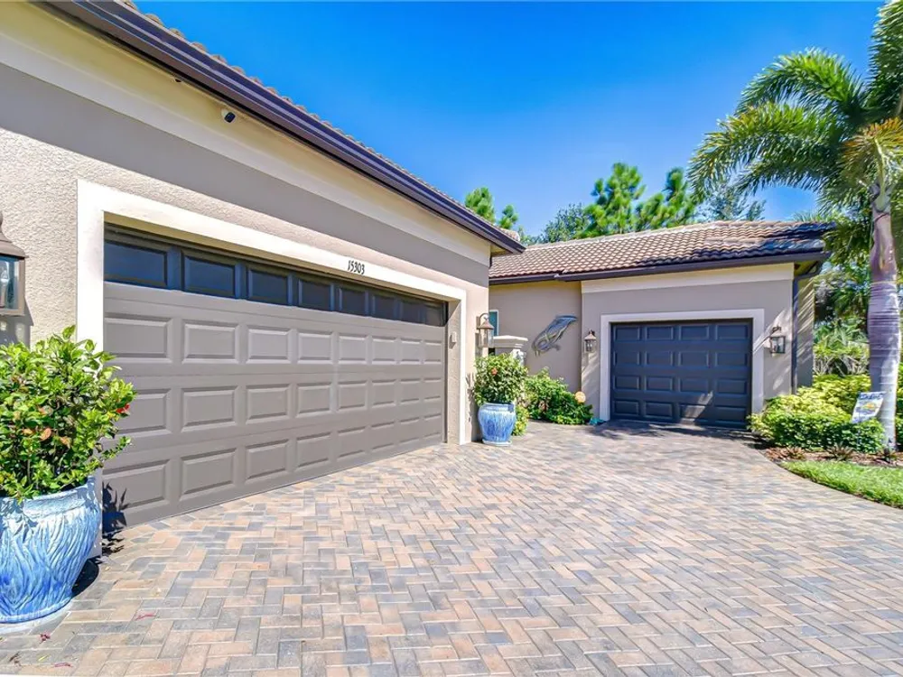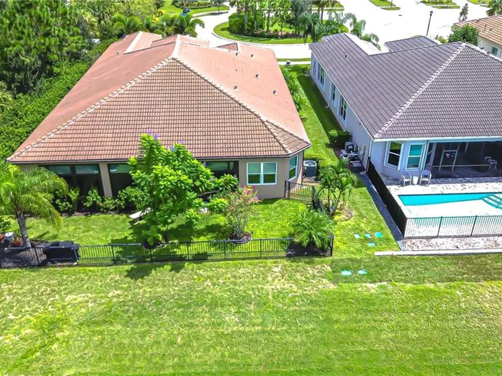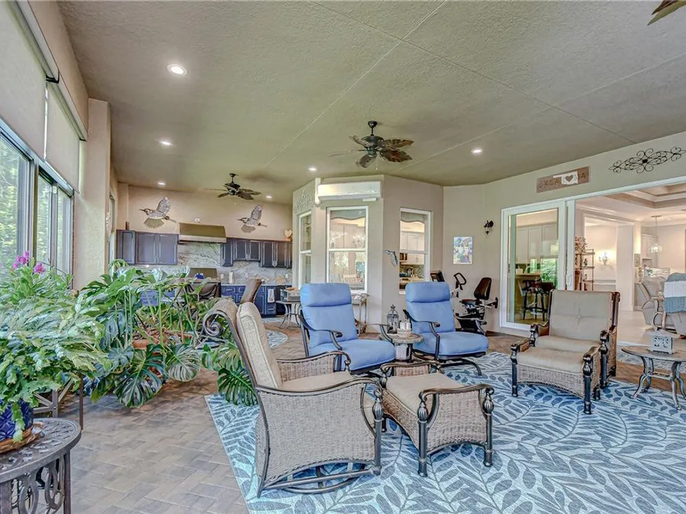 Welcome to the resort-style, 55+ gated community of Valencia Del Sol—where active, hands-free living is truly redefined! With an on-site activity director, your calendar will be filled with exciting events, and the Valencia Del Sol Club offers residents a full fitness center, meeting rooms, art and card rooms, a party room, PICKLEBALL courts, a resort-style pool, bocce ball, fire pits, and an on-site restaurant & bar. This stunning home, featuring over $200K in upgrades, offers 3 bedrooms, 3.5 baths, a bonus room, an oversized 772 SqFt Florida room, and a 3-car split garage, spanning over 3,855 sq. ft. Every detail exudes quality and elegance—from the Herringbone wood-look porcelain tile floors that flow throughout, double tray coffered ceiling and stone accent wall in the great room, crown moulding, and designer fixtures, to the custom window treatments and high-end finishes throughout. Step into the expansive, climate-controlled Florida room with automatic window shades, where peaceful water views and unforgettable Florida sunsets set the scene for seamless indoor-outdoor living. Entertain with ease in the custom-built outdoor kitchen featuring a commercial-grade extractor, and enjoy privacy in the fenced backyard surrounded by beautiful tropical landscaping. The gourmet kitchen is a chef’s dream, complete with quartz waterfall countertops, high-end cabinetry with custom pull-outs and soft-close drawers, stainless appliances, including a Cafe gas range with dual ovens, pantry pullouts, and a bright breakfast area with breakfast bar. The primary suite is truly remarkable, featuring stunning pond views, two walk-in California closets, and a private en-suite with dual vanities, a walk-in shower, and a soaking tub. One secondary bedroom offers a walk-in closet and private en-suite, while the third bedroom also features a walk-in closet with a nearby full bath highlighted by elegant fish scale tilework. Additional upgrades for peace of mind include whole-home high-impact windows and sliding glass doors, a transfer switch and portable generator setup so you’ll never be left in the dark, rain gutters, and a Culligan water softener/filter. The bonus room with built-in shelves and a desk is perfect for working from home, and the laundry room includes additional cabinetry for extra storage. Valencia Del Sol takes care of the details so you don’t have to, with community-provided pest control, lawn maintenance, mulching, and fertilizing, allowing you to focus on the lifestyle you deserve. Ideally located less than 40 minutes from both Sarasota and Tampa International Airports, this meticulously maintained and thoughtfully upgraded waterfront property combines luxurious comfort with convenience. Schedule your private tour today—you won’t be disappointed! Copy and paste this link to tour the home virtually: my.matterport.com/show/?m=ibV73eDfGmw&mls=1