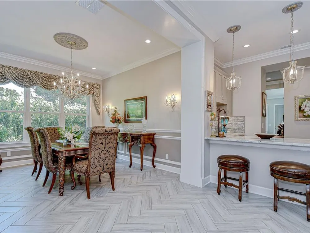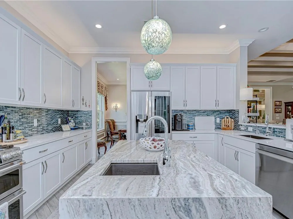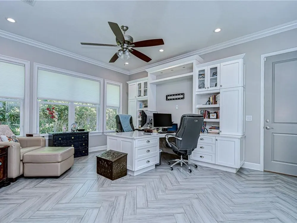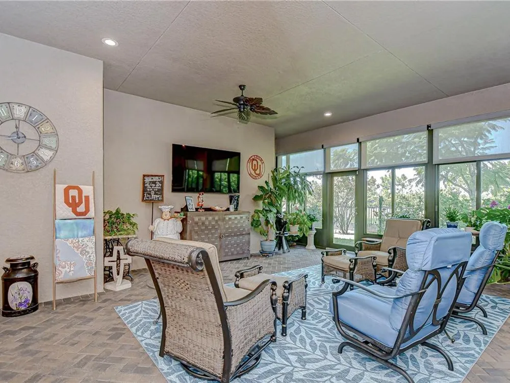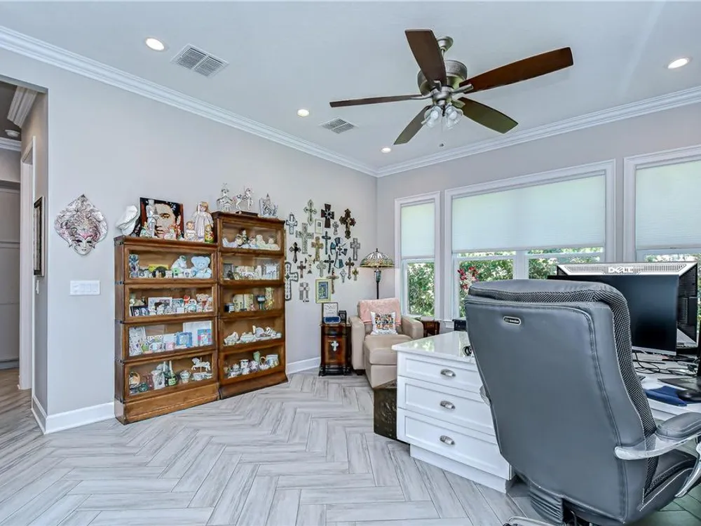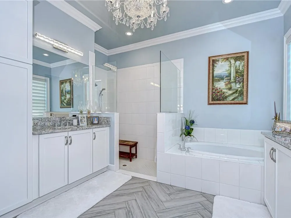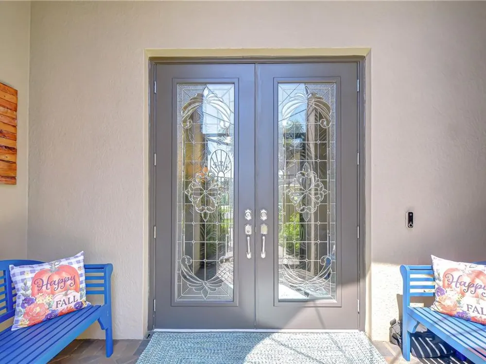 Welcome to the resort-style, 55+ gated community of Valencia Del Sol—where active, hands-free living is truly redefined! With an on-site activity director, your calendar will be filled with exciting events, and the Valencia Del Sol Club offers residents a full fitness center, meeting rooms, art and card rooms, a party room, PICKLEBALL courts, a resort-style pool, bocce ball, fire pits, and an on-site restaurant & bar. This stunning home, featuring over $200K in upgrades, offers 3 bedrooms, 3.5 baths, a bonus room, an oversized 772 SqFt Florida room, and a 3-car split garage, spanning over 3,855 sq. ft. Every detail exudes quality and elegance—from the Herringbone wood-look porcelain tile floors that flow throughout, double tray coffered ceiling and stone accent wall in the great room, crown moulding, and designer fixtures, to the custom window treatments and high-end finishes throughout. Step into the expansive, climate-controlled Florida room with automatic window shades, where peaceful water views and unforgettable Florida sunsets set the scene for seamless indoor-outdoor living. Entertain with ease in the custom-built outdoor kitchen featuring a commercial-grade extractor, and enjoy privacy in the fenced backyard surrounded by beautiful tropical landscaping. The gourmet kitchen is a chef’s dream, complete with quartz waterfall countertops, high-end cabinetry with custom pull-outs and soft-close drawers, stainless appliances, including a Cafe gas range with dual ovens, pantry pullouts, and a bright breakfast area with breakfast bar. The primary suite is truly remarkable, featuring stunning pond views, two walk-in California closets, and a private en-suite with dual vanities, a walk-in shower, and a soaking tub. One secondary bedroom offers a walk-in closet and private en-suite, while the third bedroom also features a walk-in closet with a nearby full bath highlighted by elegant fish scale tilework. Additional upgrades for peace of mind include whole-home high-impact windows and sliding glass doors, a transfer switch and portable generator setup so you’ll never be left in the dark, rain gutters, and a Culligan water softener/filter. The bonus room with built-in shelves and a desk is perfect for working from home, and the laundry room includes additional cabinetry for extra storage. Valencia Del Sol takes care of the details so you don’t have to, with community-provided pest control, lawn maintenance, mulching, and fertilizing, allowing you to focus on the lifestyle you deserve. Ideally located less than 40 minutes from both Sarasota and Tampa International Airports, this meticulously maintained and thoughtfully upgraded waterfront property combines luxurious comfort with convenience. Schedule your private tour today—you won’t be disappointed! Copy and paste this link to tour the home virtually: my.matterport.com/show/?m=ibV73eDfGmw&mls=1