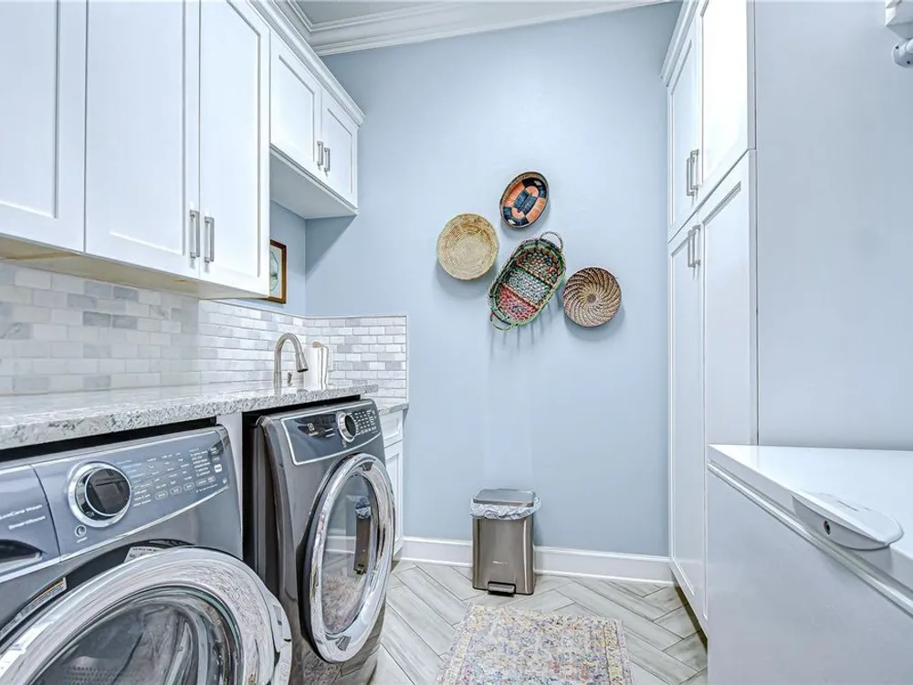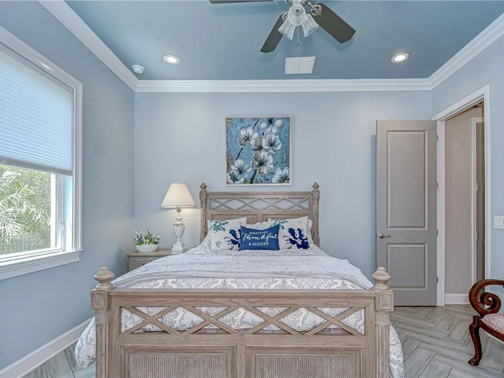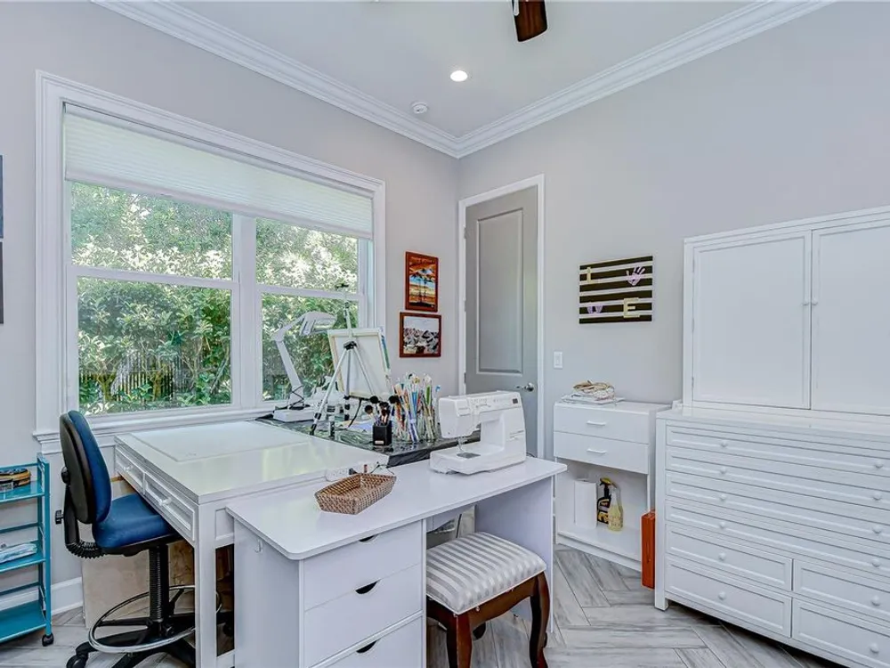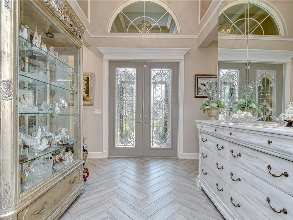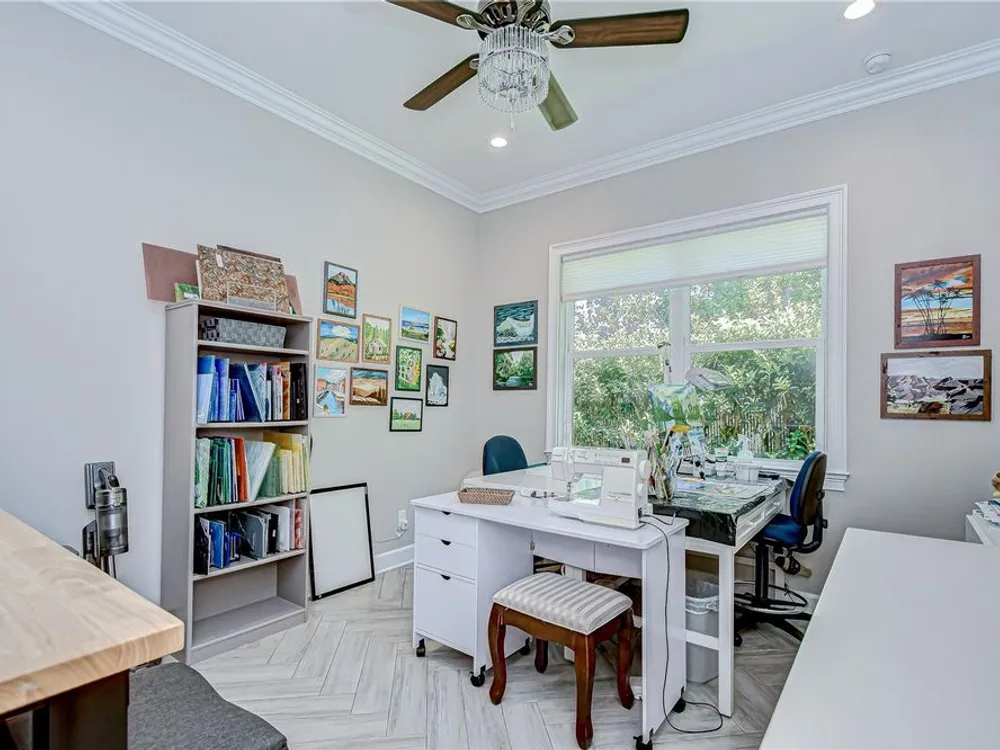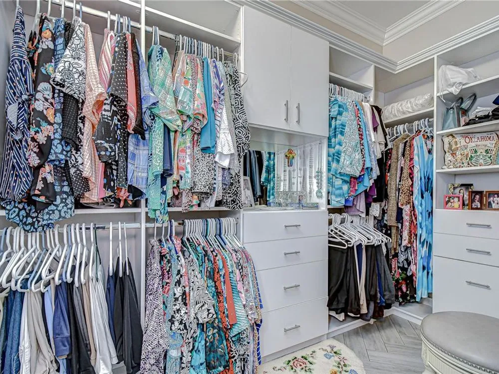 - Built-in Features, Cathedral Ceiling(s), Ceiling Fan(s), Coffered Ceiling(s), Crown Molding, Eat-in Kitchen, High Ceilings, Open Floorplan, Main Level Primary, Solid-Wood Cabinets, Split Bedrooms, Stone Counters, Thermostat, Tray Ceiling(s), Walk-In Closet(s), Window Treatments