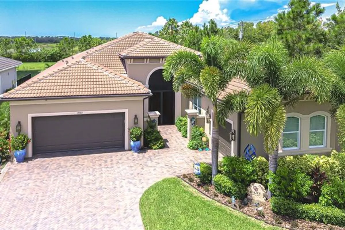 Welcome to the resort-style, 55+ gated community of Valencia Del Sol—where active, hands-free living is truly redefined! With an on-site activity director, your calendar will be filled with exciting events, and the Valencia Del Sol Club offers residents a full fitness center, meeting rooms, art and card rooms, a party room, PICKLEBALL courts, a resort-style pool, bocce ball, fire pits, and an on-site restaurant & bar. This stunning home, featuring over $200K in upgrades, offers 3 bedrooms, 3.5 baths, a bonus room, an oversized 772 SqFt Florida room, and a 3-car split garage, spanning over 3,855 sq. ft. Every detail exudes quality and elegance—from the Herringbone wood-look porcelain tile floors that flow throughout, double tray coffered ceiling and stone accent wall in the great room, crown moulding, and designer fixtures, to the custom window treatments and high-end finishes throughout. Step into the expansive, climate-controlled Florida room with automatic window shades, where peaceful water views and unforgettable Florida sunsets set the scene for seamless indoor-outdoor living. Entertain with ease in the custom-built outdoor kitchen featuring a commercial-grade extractor, and enjoy privacy in the fenced backyard surrounded by beautiful tropical landscaping. The gourmet kitchen is a chef’s dream, complete with quartz waterfall countertops, high-end cabinetry with custom pull-outs and soft-close drawers, stainless appliances, including a Cafe gas range with dual ovens, pantry pullouts, and a bright breakfast area with breakfast bar. The primary suite is truly remarkable, featuring stunning pond views, two walk-in California closets, and a private en-suite with dual vanities, a walk-in shower, and a soaking tub. One secondary bedroom offers a walk-in closet and private en-suite, while the third bedroom also features a walk-in closet with a nearby full bath highlighted by elegant fish scale tilework. Additional upgrades for peace of mind include whole-home high-impact windows and sliding glass doors, a transfer switch and portable generator setup so you’ll never be left in the dark, rain gutters, and a Culligan water softener/filter. The bonus room with built-in shelves and a desk is perfect for working from home, and the laundry room includes additional cabinetry for extra storage. Valencia Del Sol takes care of the details so you don’t have to, with community-provided pest control, lawn maintenance, mulching, and fertilizing, allowing you to focus on the lifestyle you deserve. Ideally located less than 40 minutes from both Sarasota and Tampa International Airports, this meticulously maintained and thoughtfully upgraded waterfront property combines luxurious comfort with convenience. Schedule your private tour today—you won’t be disappointed!