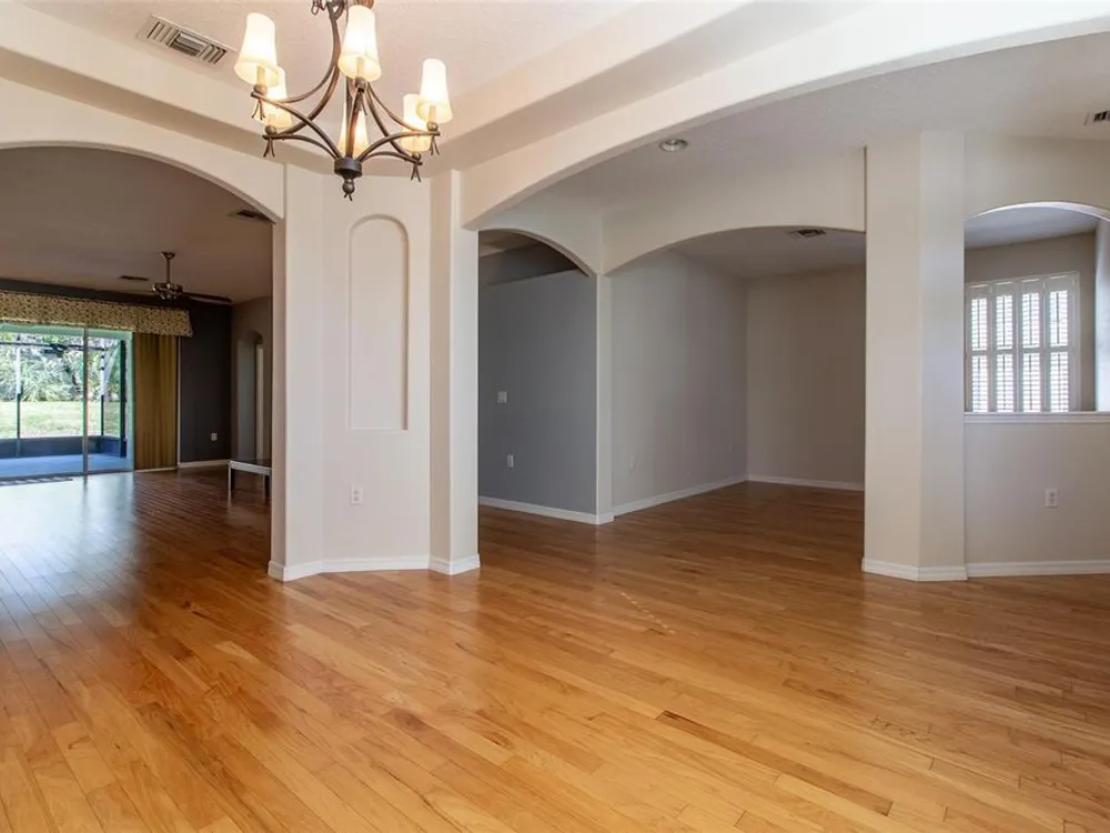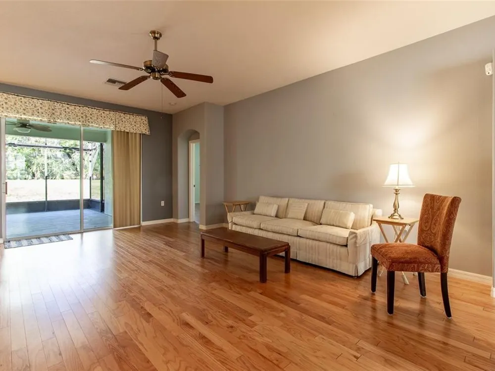 BRAND NEW PRICE AND BRAND NEW SS APPLIANCES!! SUMMERGLEN GOLF COURSE COMMUNITY Lot 118. This absolutely gorgeous 2005 Jacaranda model is a 4 bedroom 3 complete baths with formal living room, den, and dining room. The 4th bedroom and 3rd bath can be considered a GUEST SUITE to give your guests the privacy they need. Walk into a bright open floor plan with plenty of room for entertaining. The home features hardwood floors in the main rooms of the home, 10' ceilings, and plantation shutters on all the front rooms. Kitchen features quartz counters, plenty of taller cabinet space, recessed lighting, pullout drawers in lower cabinets, pullout drawers in spacious pantry, and solar tube for natural lighting. This home also has a breakfast nook and Formal Dining area for entertaining diner guests. The master bath has a walk-in roman shower, private water closet, quartz counters, dual sinks with makeup counter, and huge walk-in closet. Lots of privacy from your guests with this split floor plan. Both guest baths are full baths with quartz counters and tub/shower combination. Head out to the huge open lanai area with extended (20'7" x 14'3") area under a large screened bird cage. The GARAGE is EXTENDED (24'4 x 20') to allow parking of larger vehicles. Easy to maintain yard with rock bed and minimal water usage for LOW water bill. This floor plan has a lot of nuances that you won't see in any other home. New Windows installed in 2015, roof replaced 2022, new exterior paint in 2025, Pelican water softener, added front screen porch, and new gutters. HOA fee includes mowing/edging of yard, garbage pickup including recycling, Spectrum Bronze Tier 1 TV and 100 Mbps internet, as well as access to all amenities. Did I mention ALL of the community amenities? All this and more located in an active, gated community featuring club house with lounge area, space for future restaurant and meeting rooms, tons of activities & 70 clubs plus bocce ball, pickleball, tennis courts, softball, heated pool & spa, RV parking, dog parks, and tons more! All of that along with a $30 food and beverage Credit to be used at the new Community Restaurant, "Tavern at the Glen".